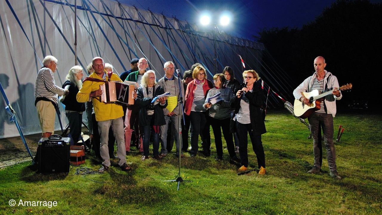 La chorale quant à elle est allée accueillir en chansons, sur l'île de Tatihou les festivaliers du vendredi. Elle a également animé l'espace restauration entre le concert et la nuit du bal.