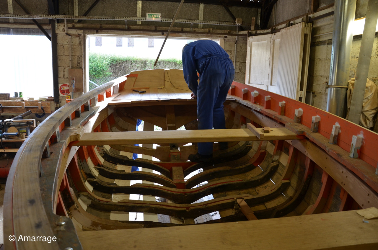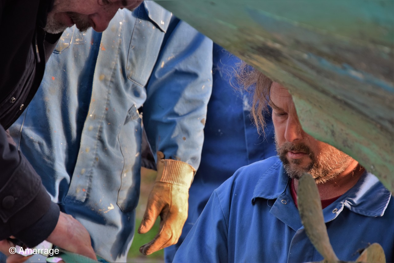 Le bateau à été ramené à l'atelier pour être entièrement gratté et repeint. Un bon chantier qui ne nécessite pas de compétences techniques poussées et qui permet au plus grand nombre de participer....