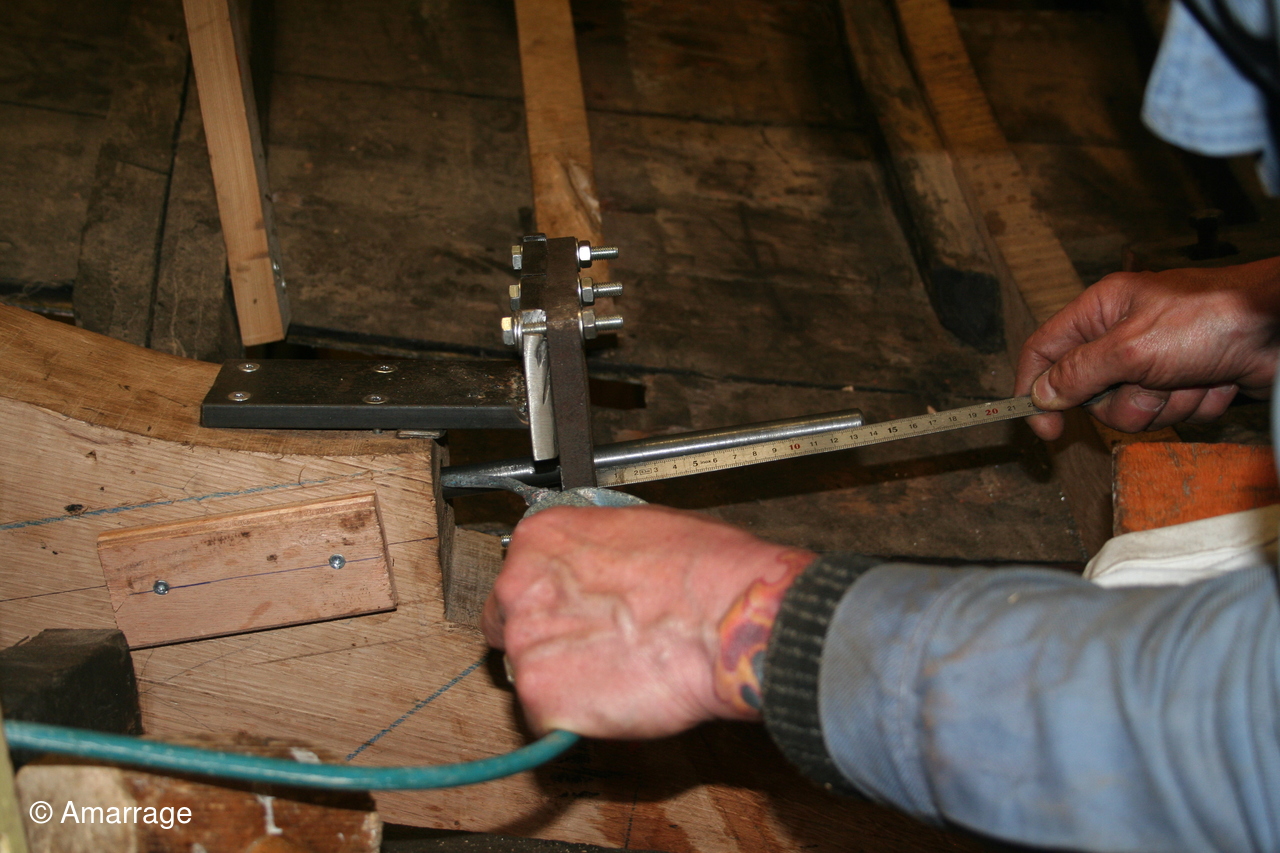 Sur le "CHRISTIANE" alésage de l'étambot.