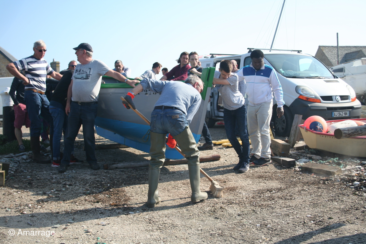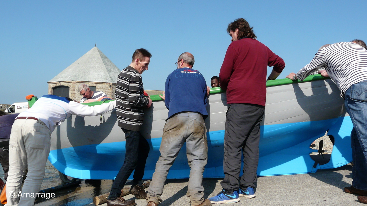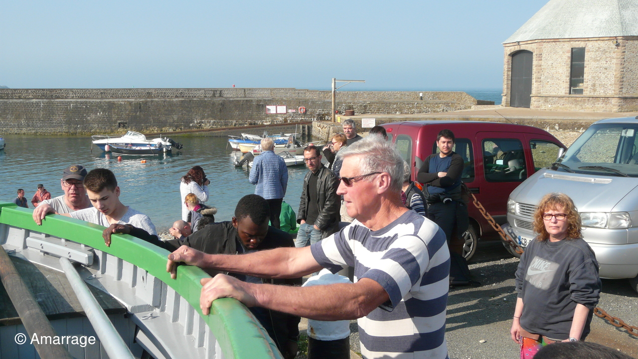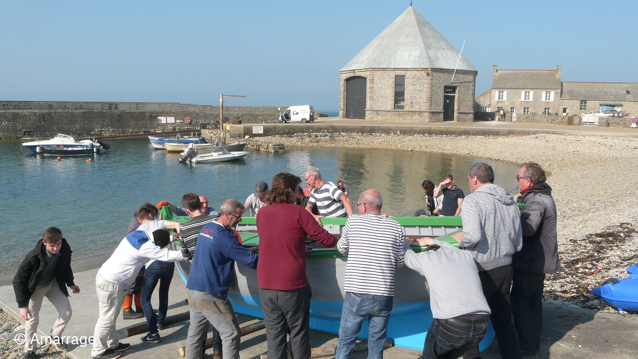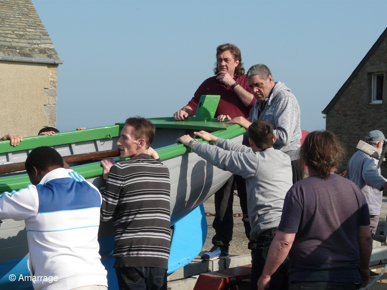 Au port de Goury, rendez-vous avait été pris à 10 h pour la mise à l'eau du "STEPHAN" arrivant de l'Atelier d'Amarrage.