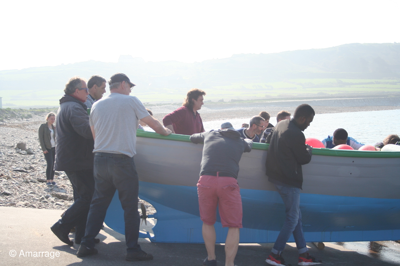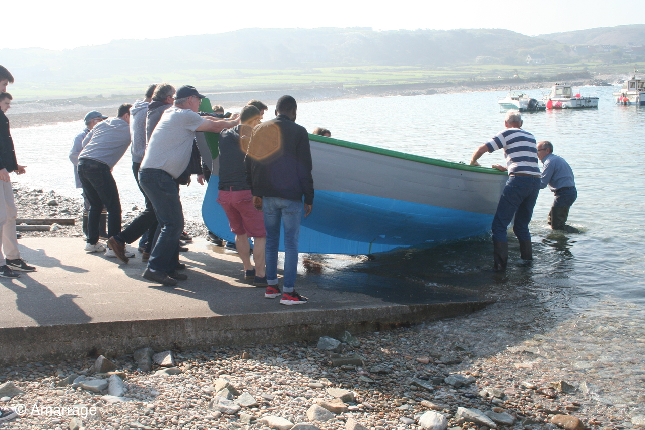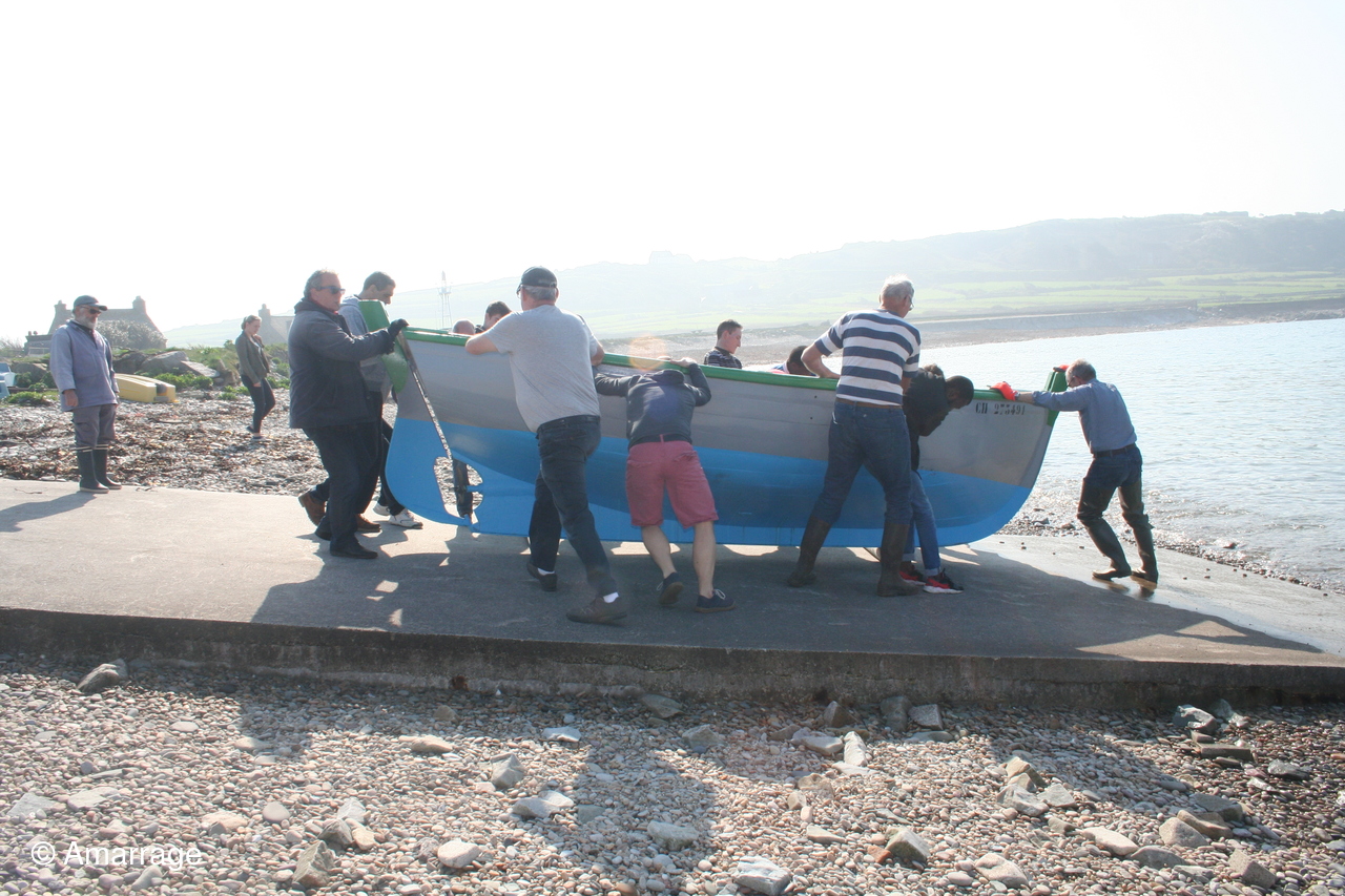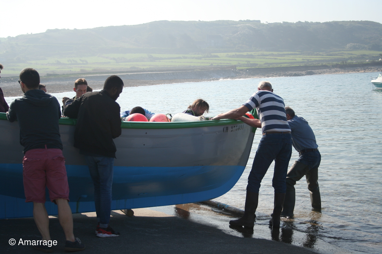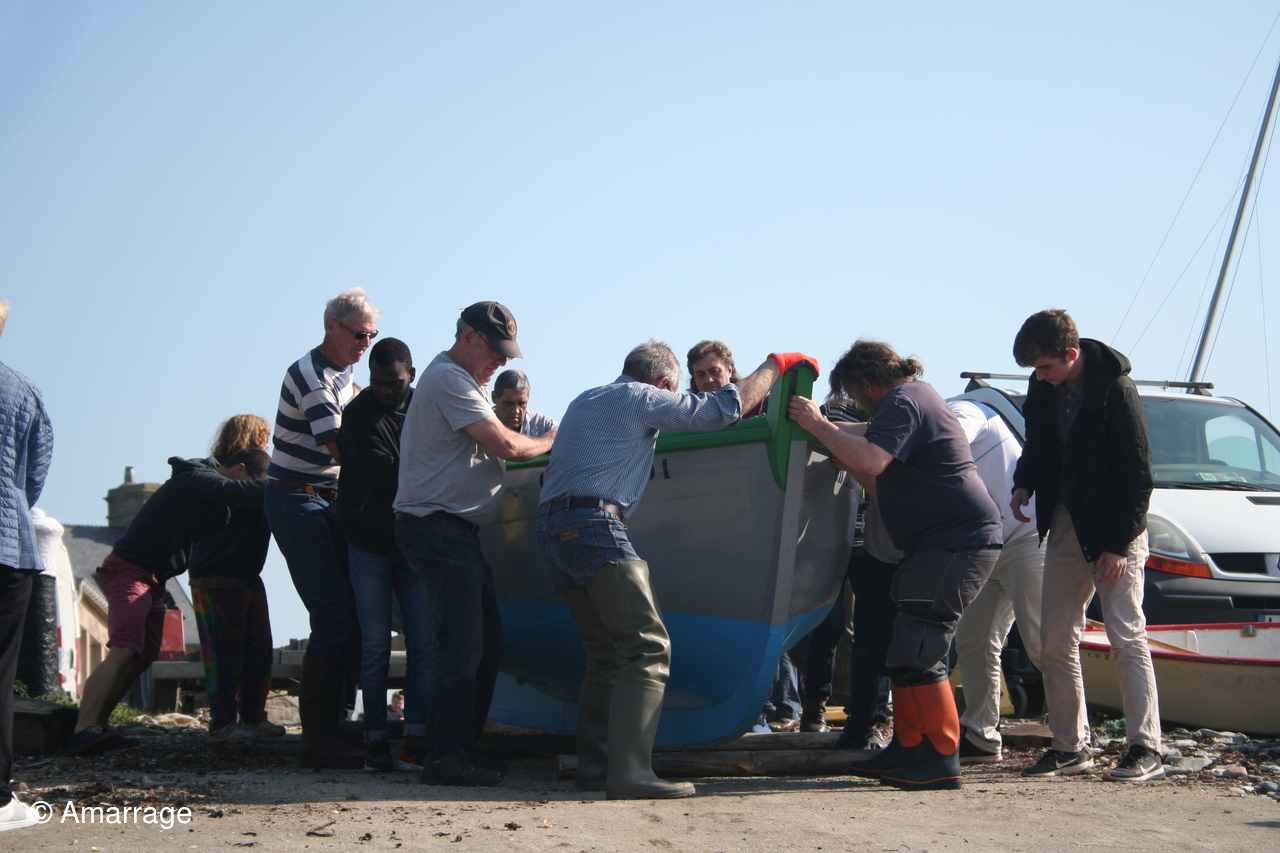 Au port de Goury, rendez-vous avait été pris à 10 h pour la mise à l'eau du "STEPHAN" arrivant de l'Atelier d'Amarrage.