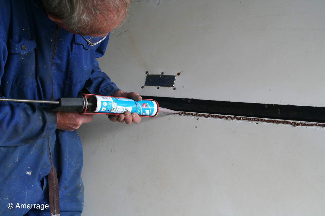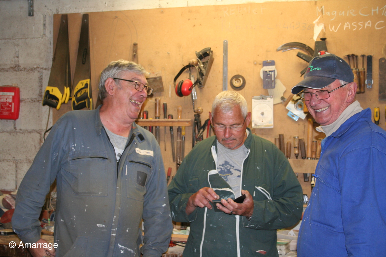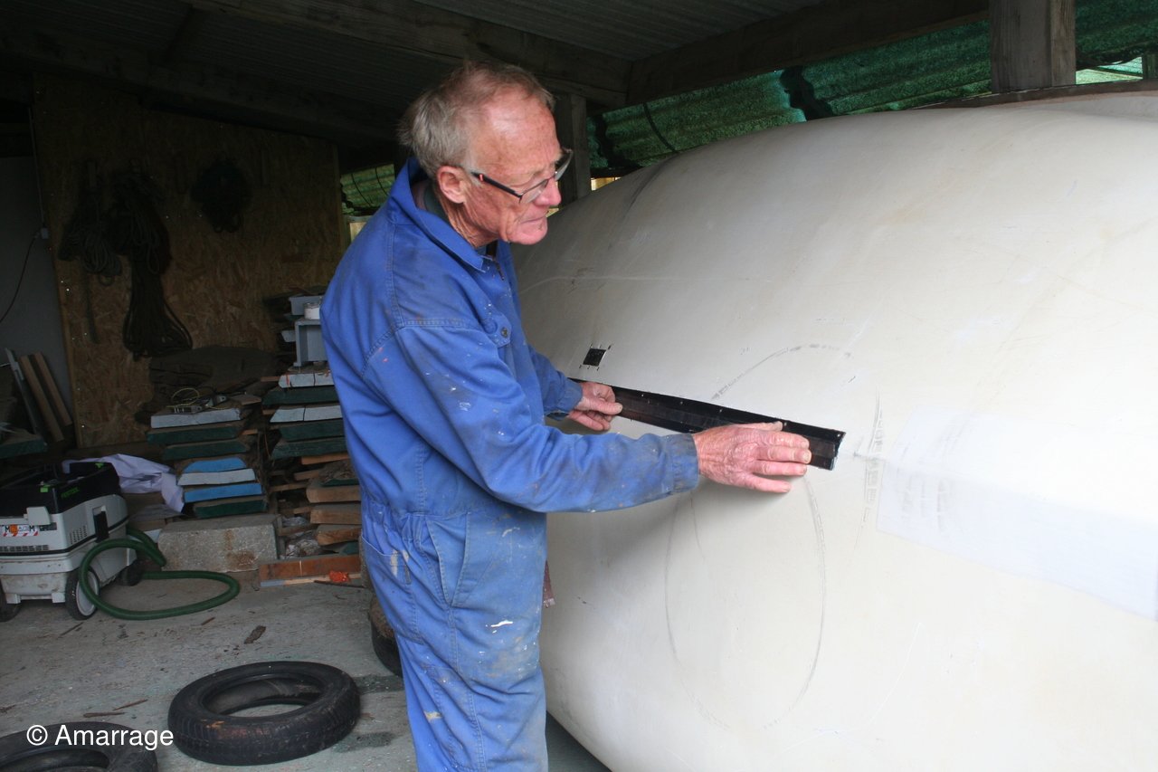 - On s'active sur le "Christiane". Le perçage de l'étambot pour l'arbre d'hélice est terminé. Travail sur les bordés.