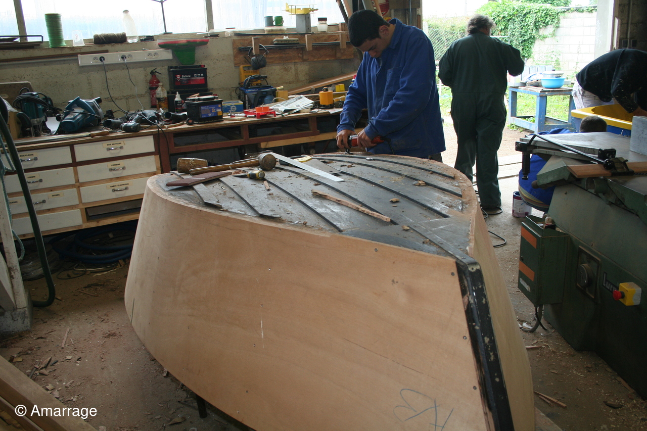 - La "Caravelle" quitte l'atelier pour laisser sa place au "Christiane" qui va être un très beau chantier.