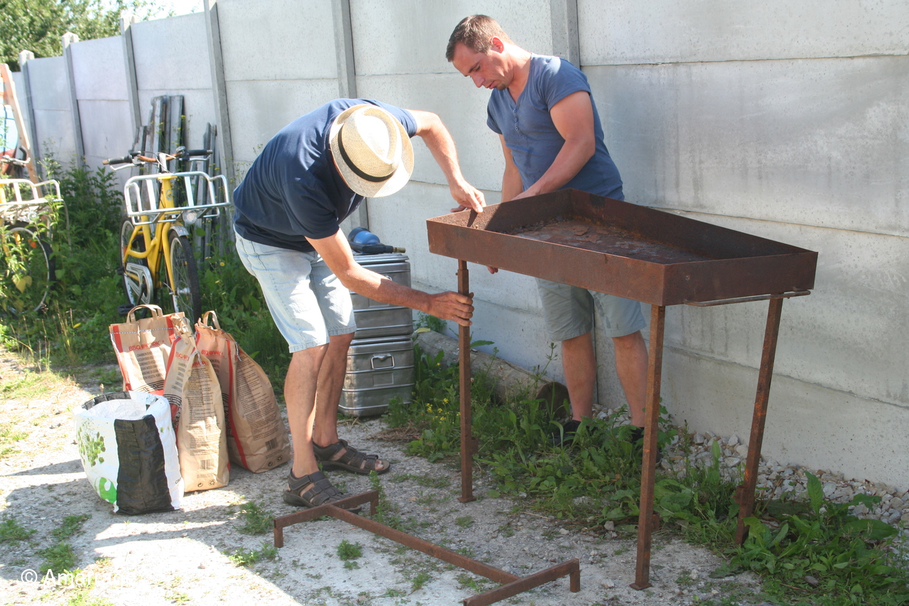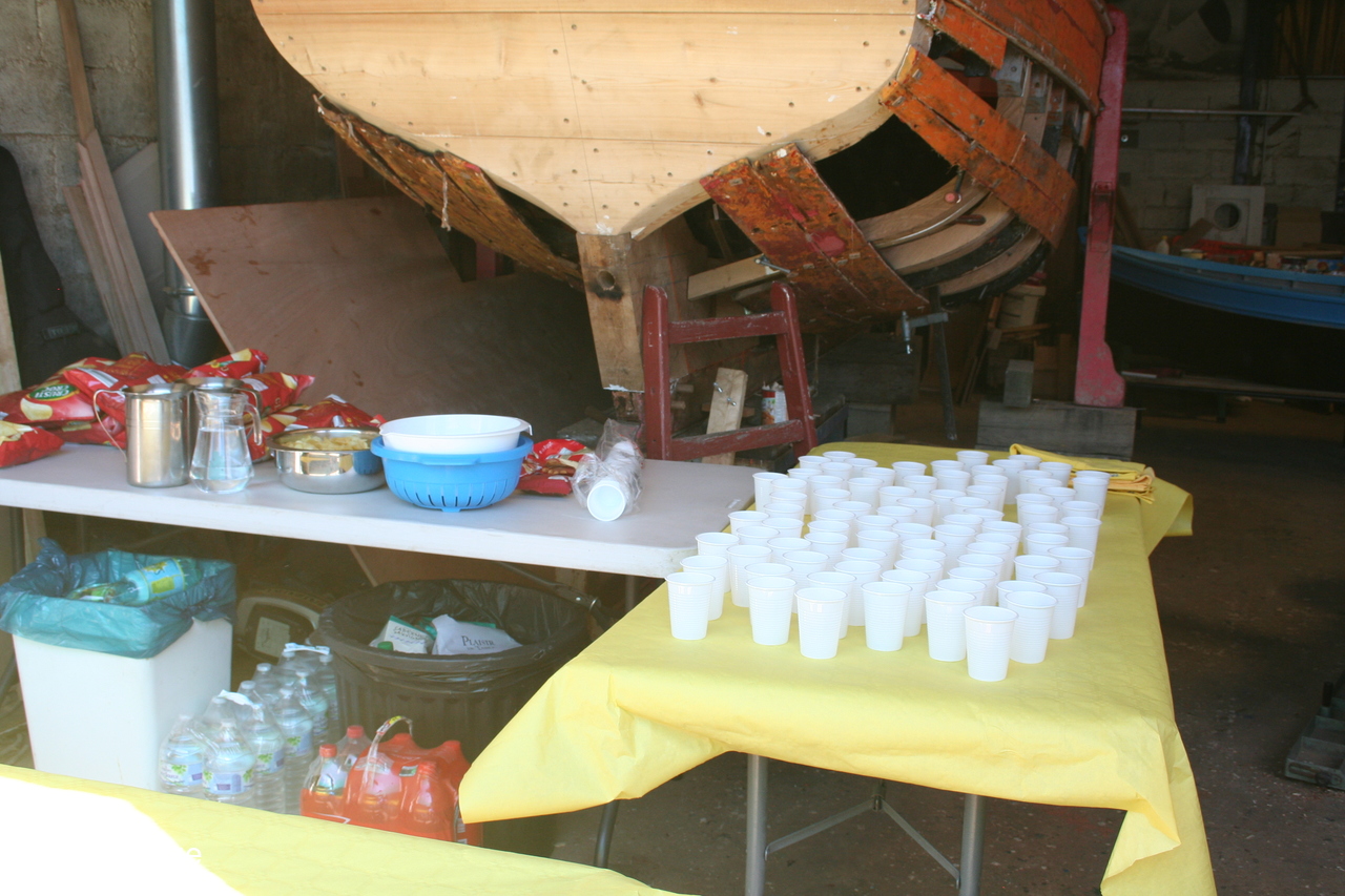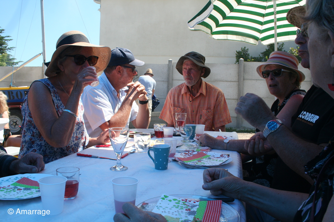 Une équipe à commencé tôt ce matin, la mise en place des tables. Le repas à débuté sur le coup de midi pour se terminer vers 15h30. Certains ont dû rester un peu plus tard, car il a fallu tout ranger. Demain est un autre jour et la restauration.........des bateaux ne peut attendre.