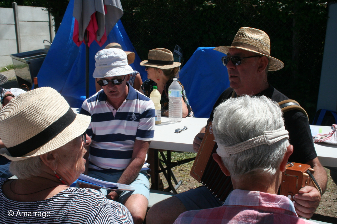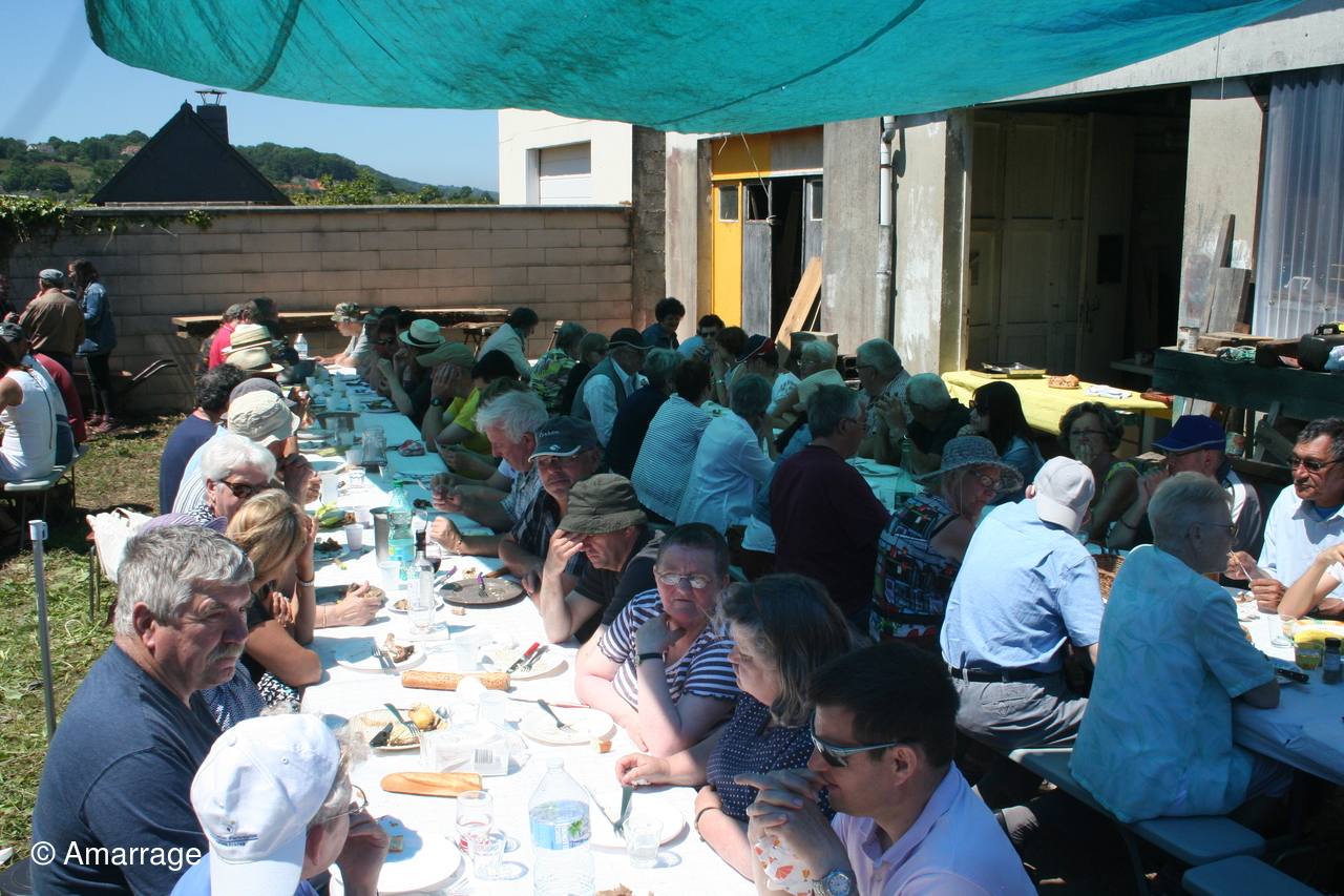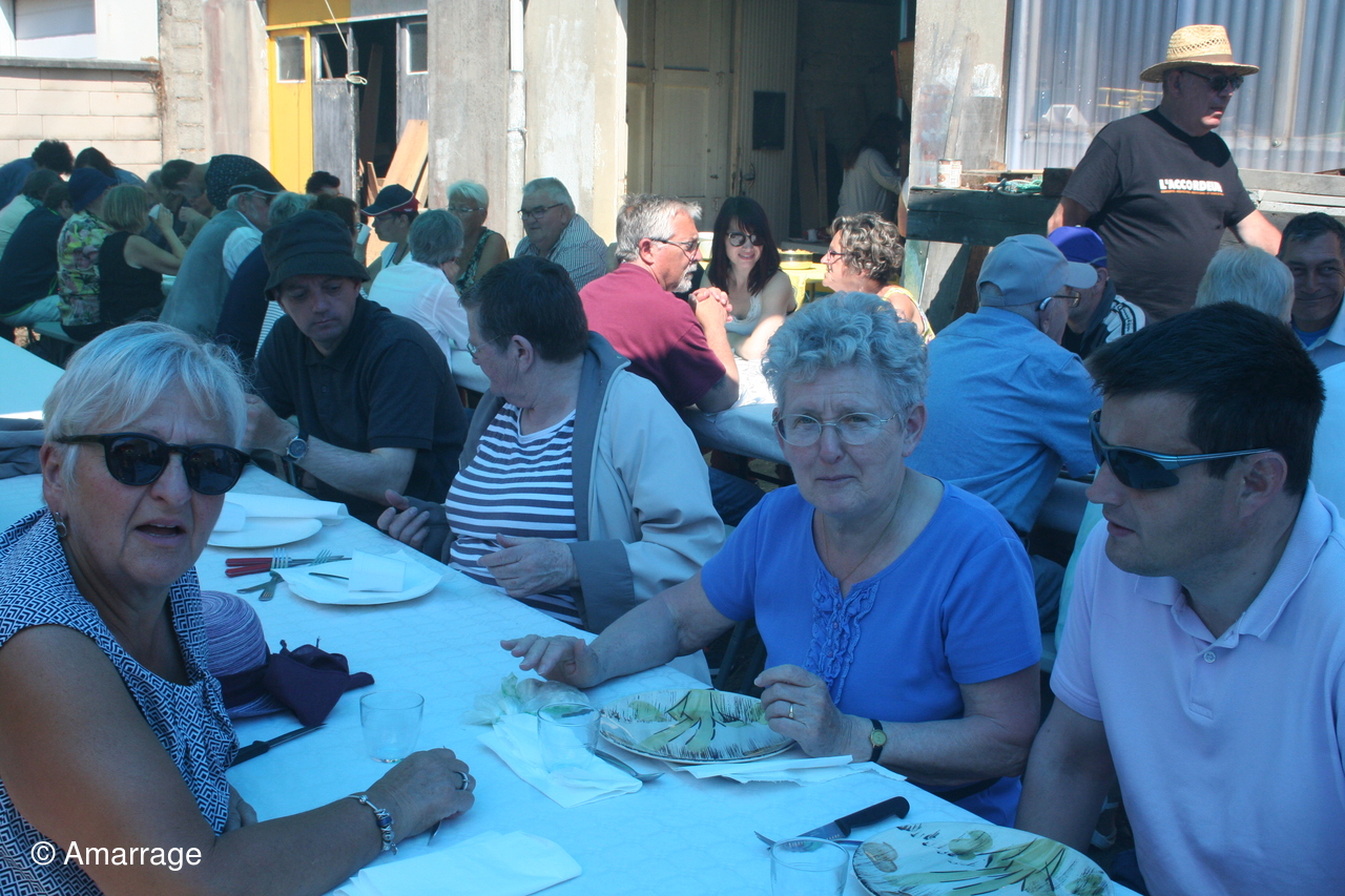 C'est par une journée magnifiquement ensoleillée (voir installation de bâches) que s'est déroulé le repas annuel des adhérents. Près de 130 convives y ont participé.