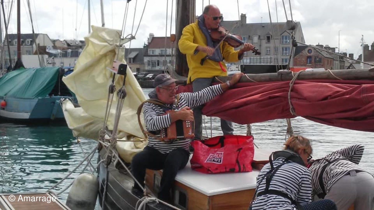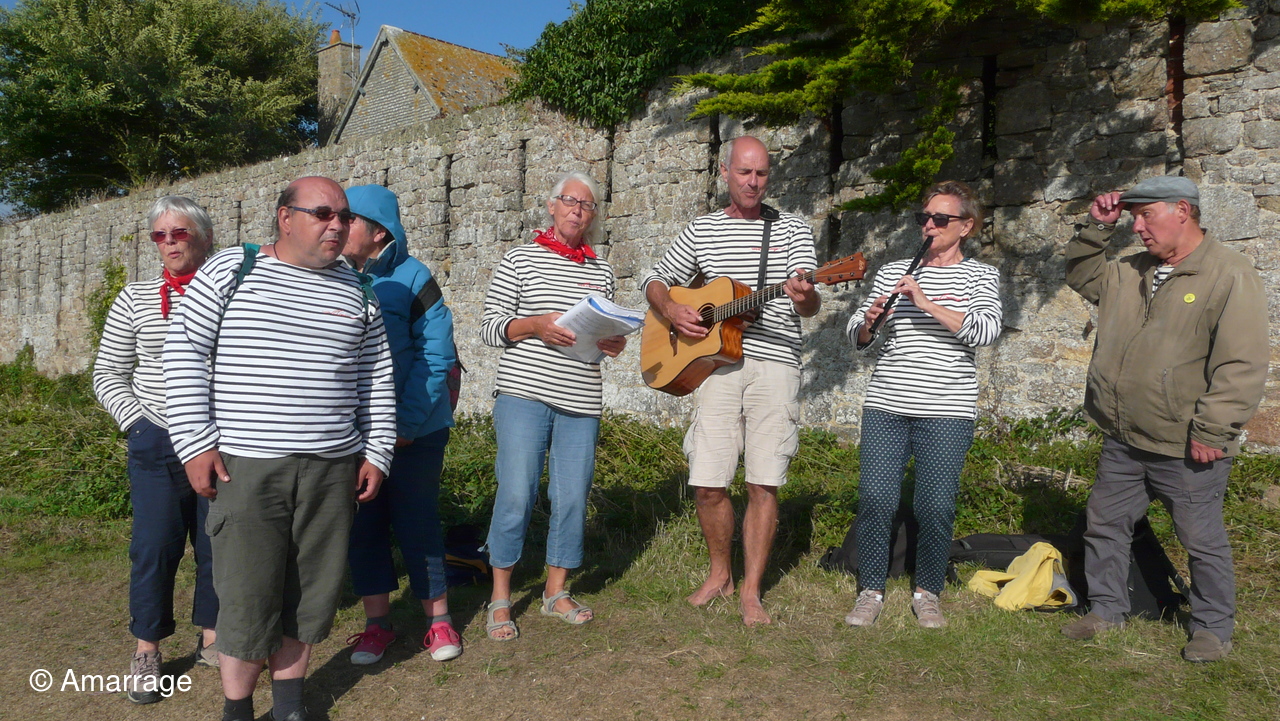 Mardi 14 Août: La NEREÏDES échoue dans le port de l'île Tatihou avec les choristes à bord et la chorale accueille les traversiers.