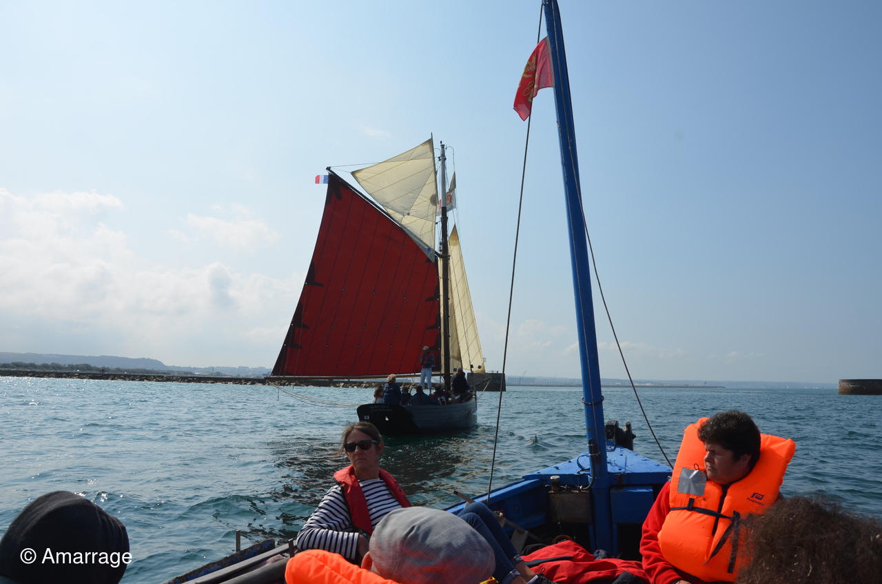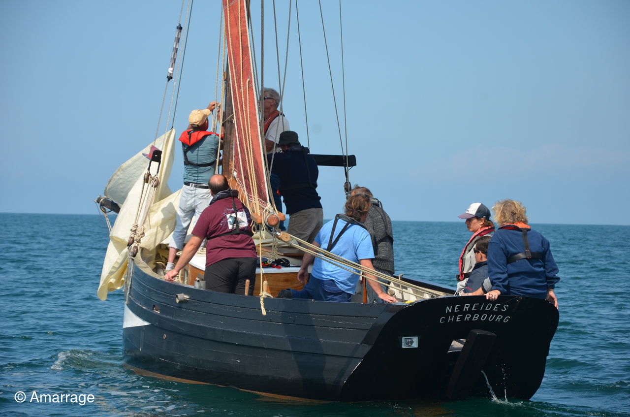 Aujourd'hui 31 août, la Néreides, le Lad et Jolie Brise ont navigué bord à bord vers le port du Becquet. Pique nique avec maquereaux grillés et retour à la voile. L'occasion d'admirer la Néreides avec son flèche....