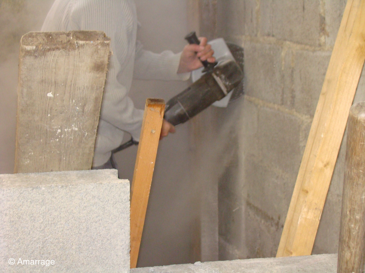 - Nouvelles toilettes: trouée de la cloison pour la pose de la porte d'accès.
