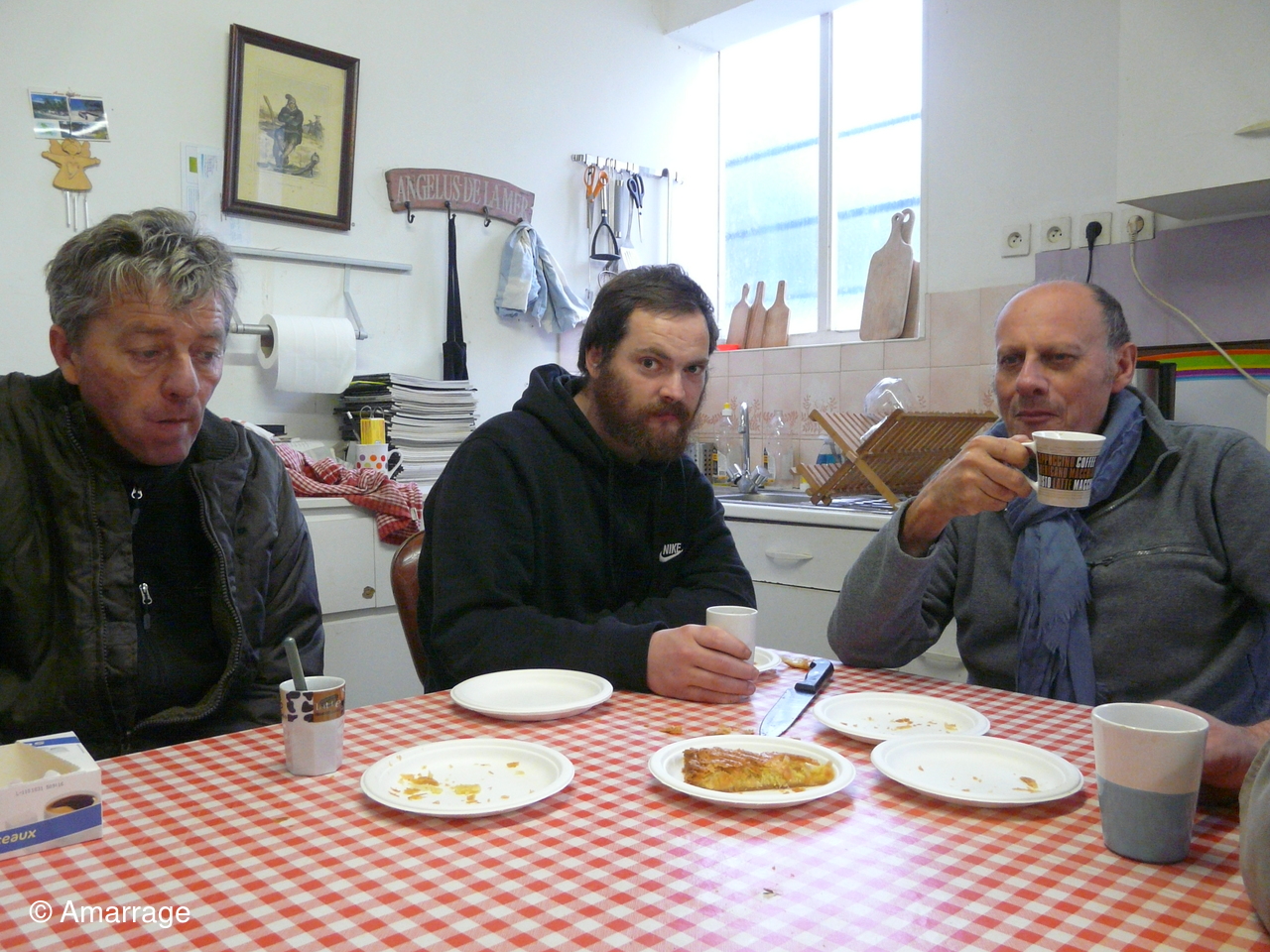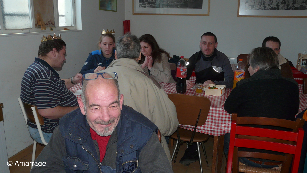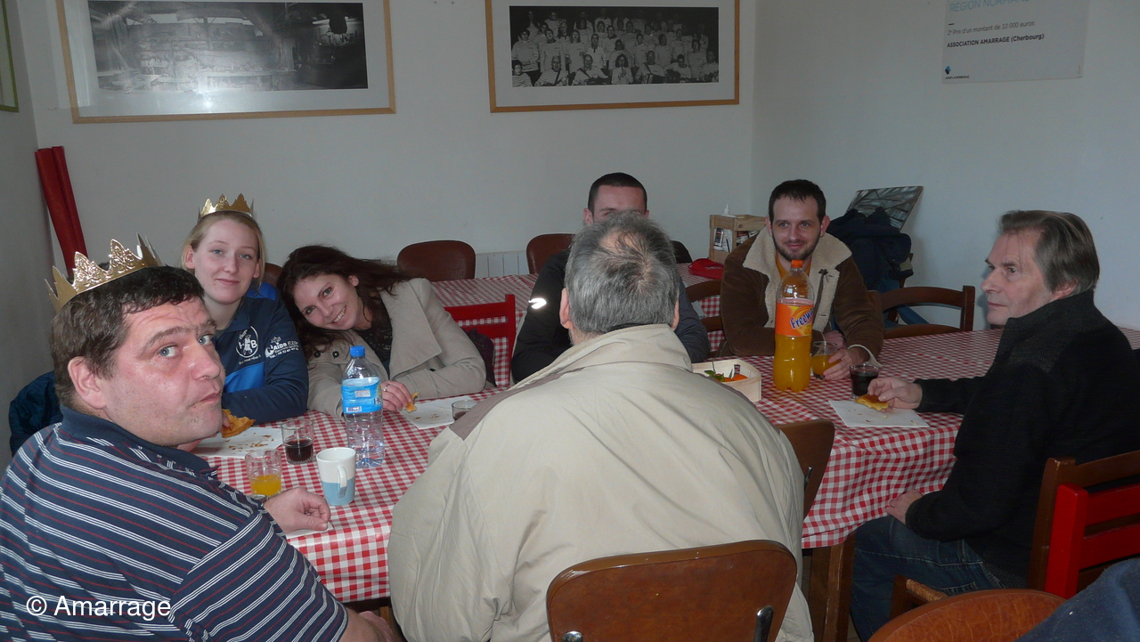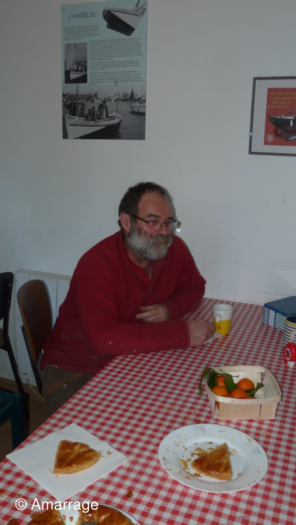 On oublie pas de fêter le nouvel an avec la galette. Françoise tire la fève. ça tombe bien...elle était la seule femme présente
