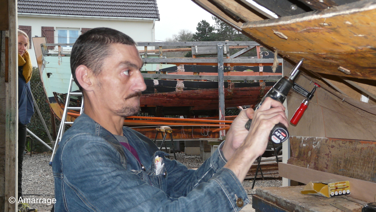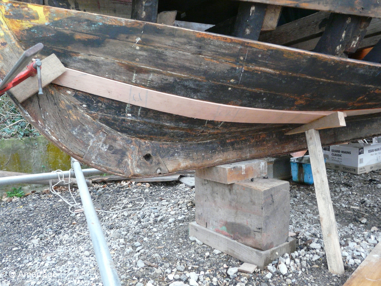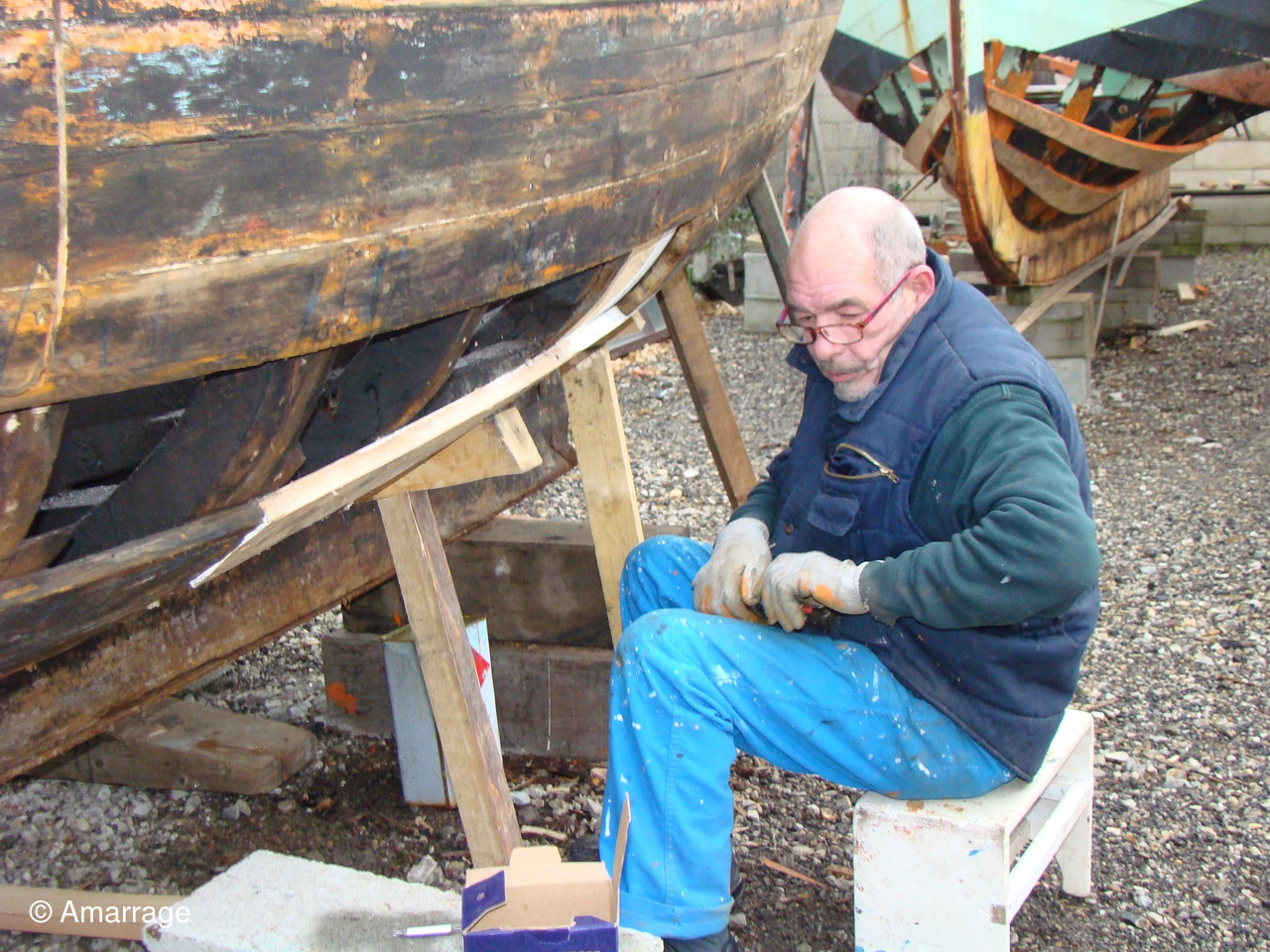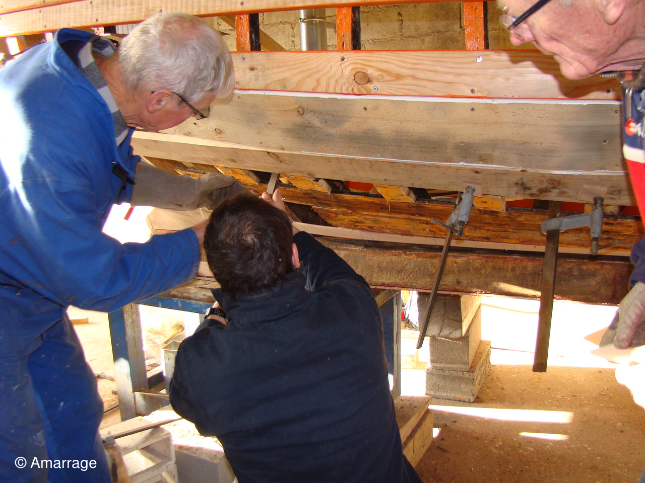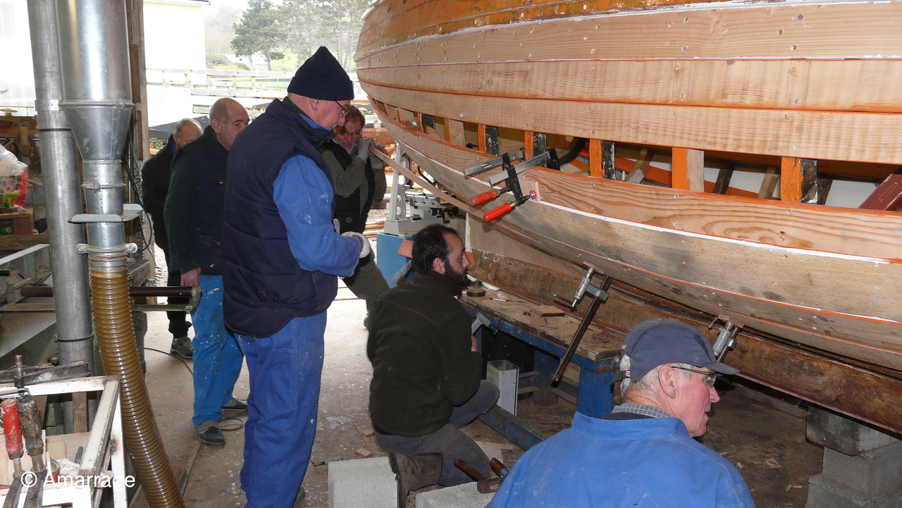 Pose d'un bordé sur les Vaquelottes "CHRISTIANE" & "MAGUIE SANSON" ,fabrication de bateaux jouets, déballage de la mortaiseuse flambant neuf, pose d'un banc et restauration du puits de dérive sur la "CARAGOGNE".