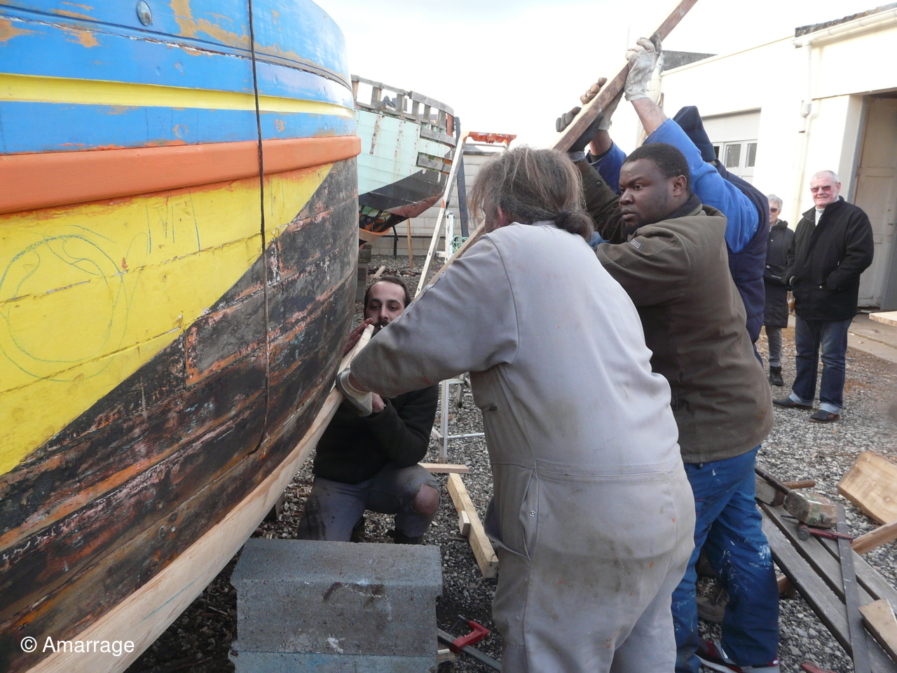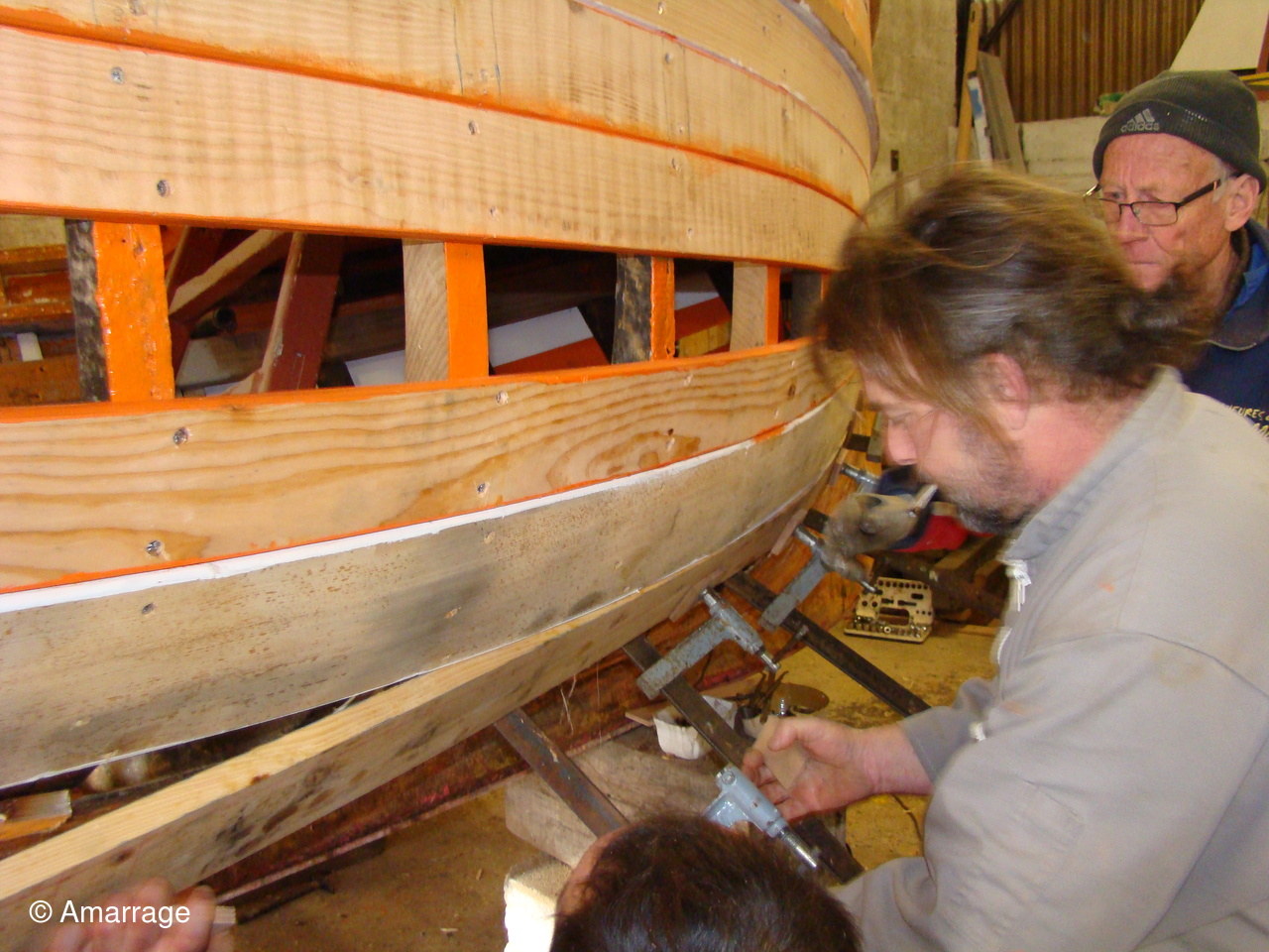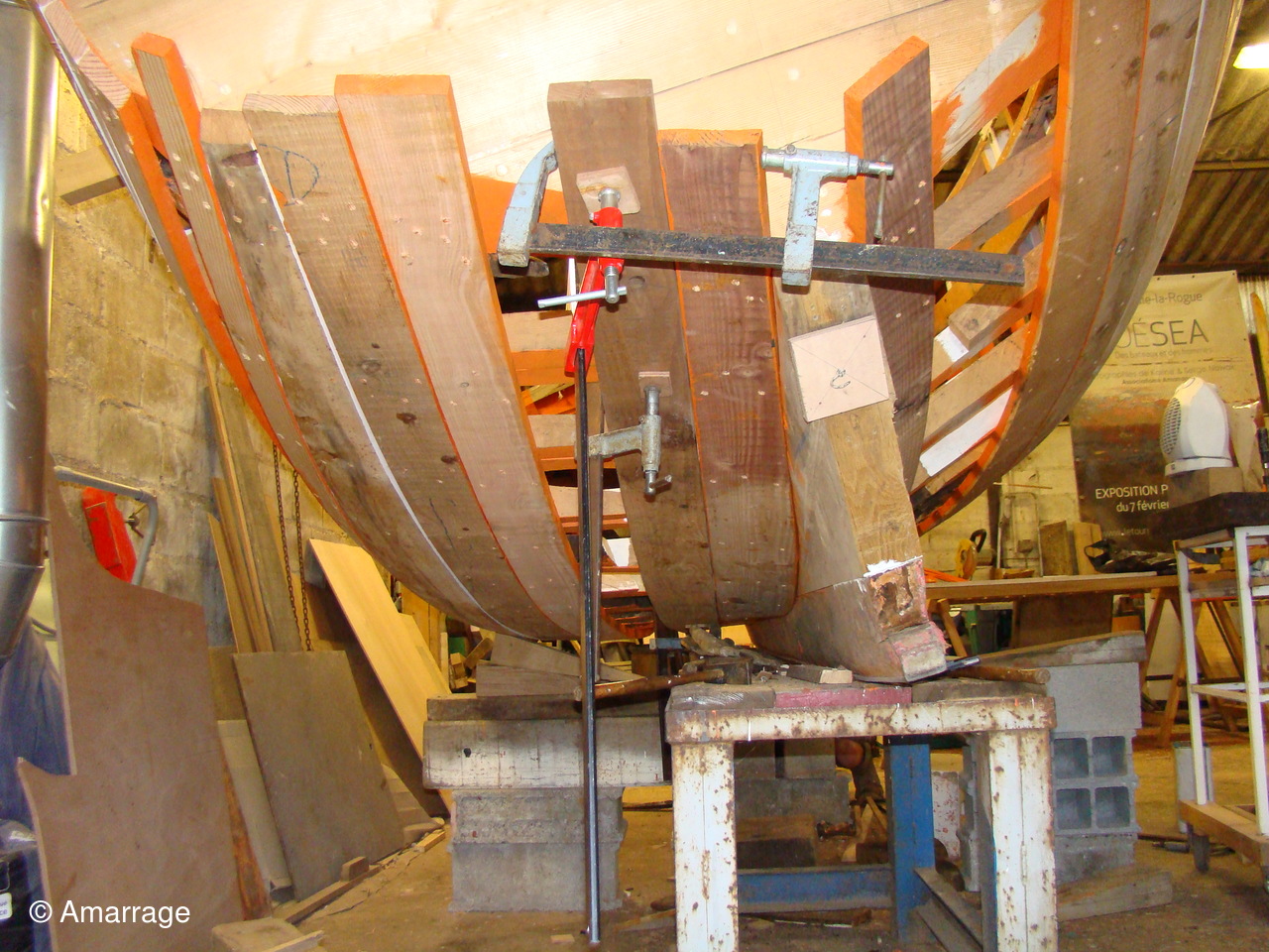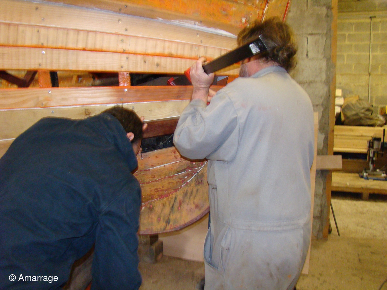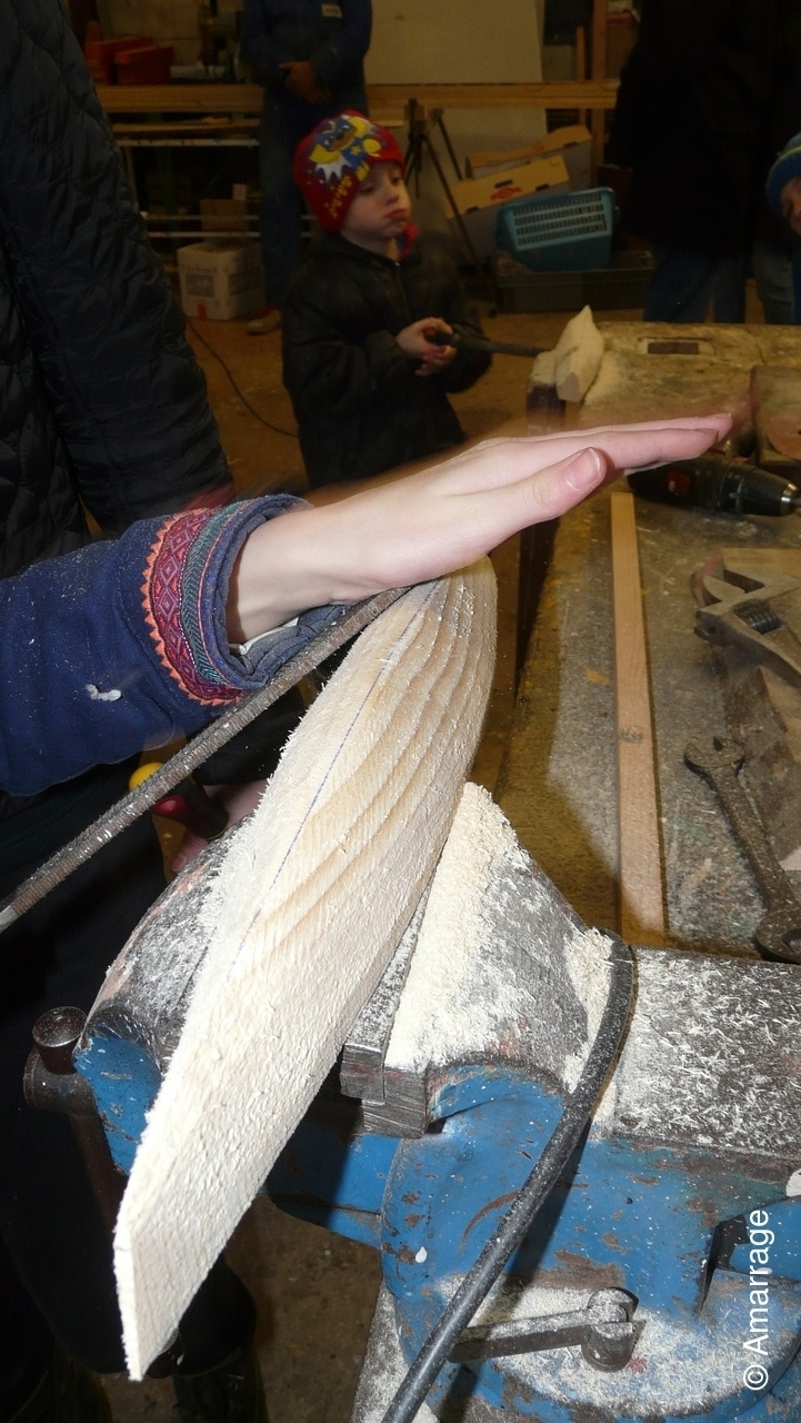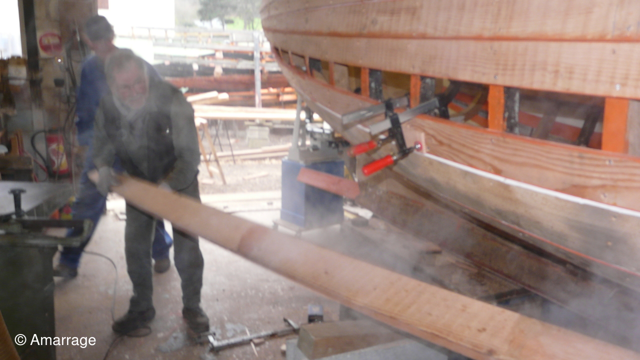 Pose d'un bordé sur les Vaquelottes "CHRISTIANE" & "MAGUIE SANSON" ,fabrication de bateaux jouets, déballage de la mortaiseuse flambant neuf, pose d'un banc et restauration du puits de dérive sur la "CARAGOGNE".