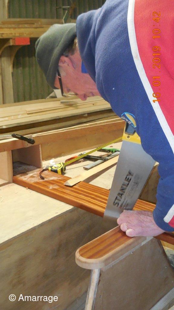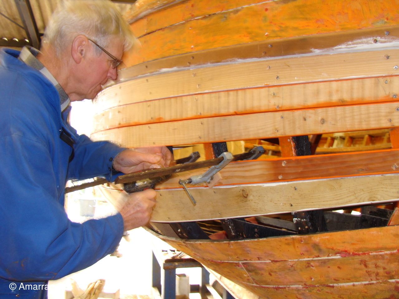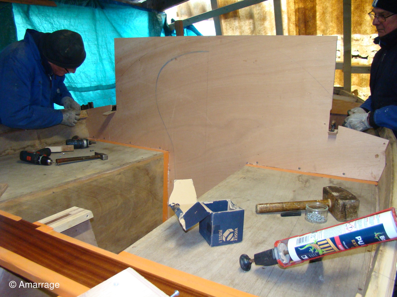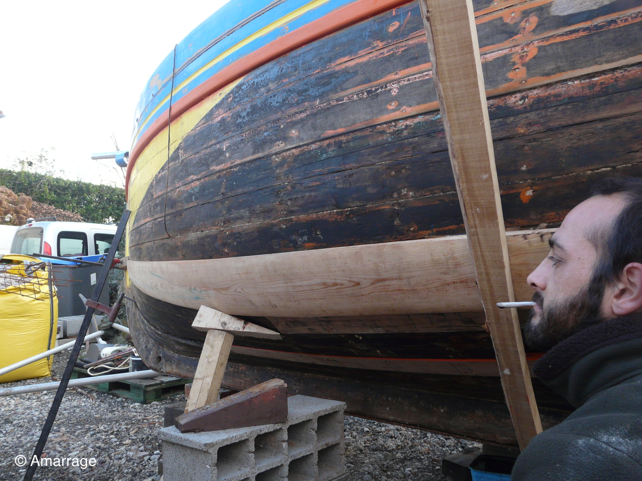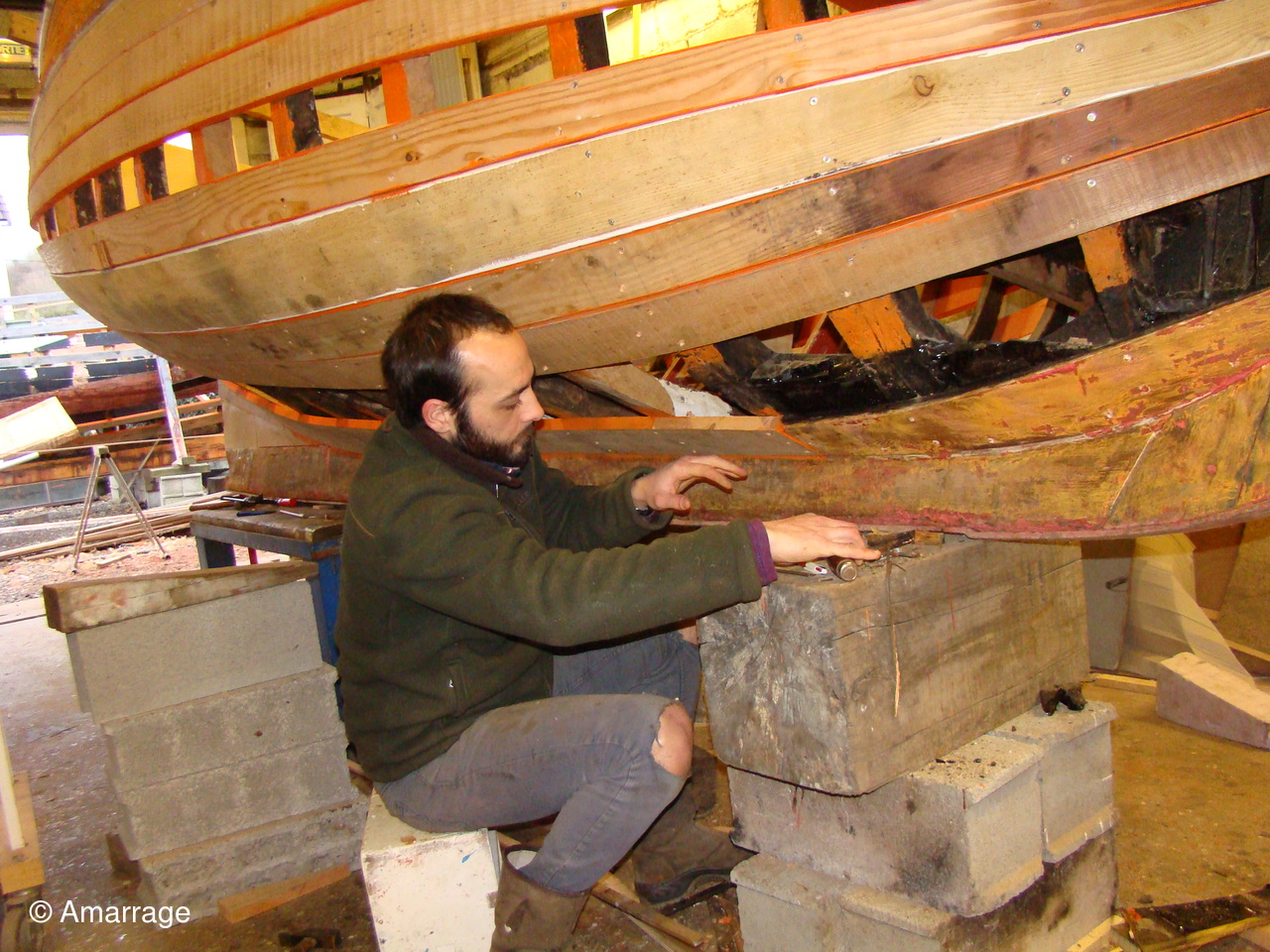 Pose d'un bordé sur les Vaquelottes "CHRISTIANE" & "MAGUIE SANSON" ,fabrication de bateaux jouets, déballage de la mortaiseuse flambant neuf, pose d'un banc et restauration du puits de dérive sur la "CARAGOGNE".