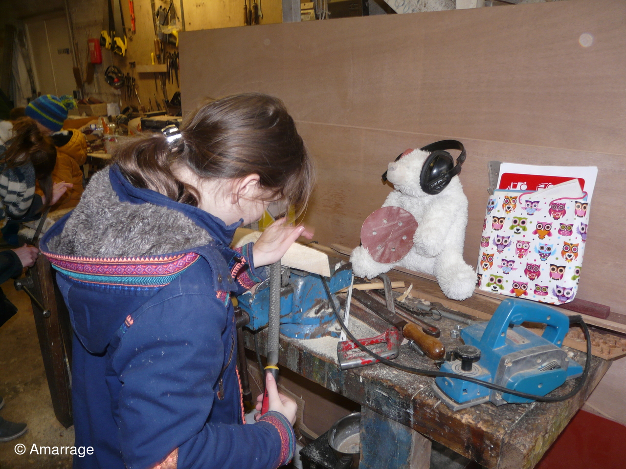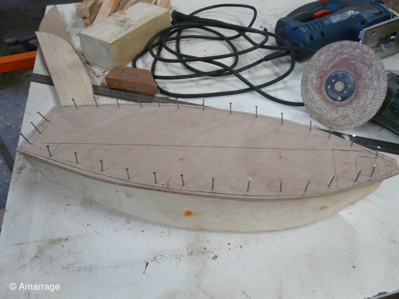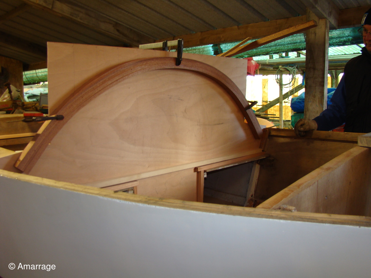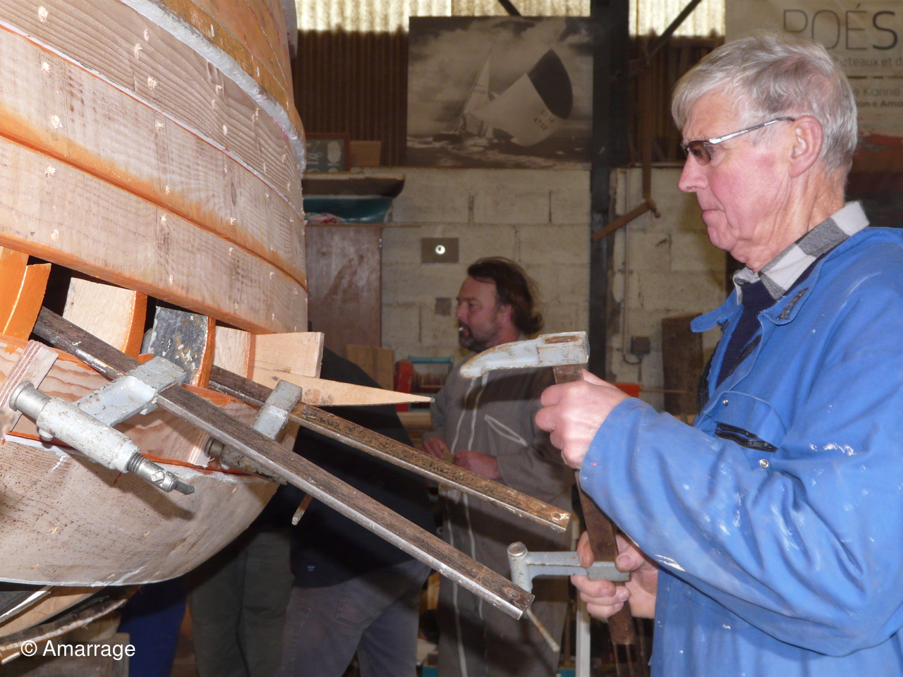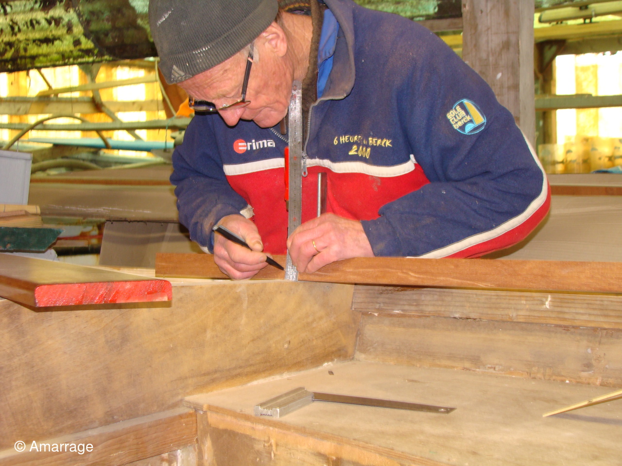 Pose d'un bordé sur les Vaquelottes "CHRISTIANE" & "MAGUIE SANSON" ,fabrication de bateaux jouets, déballage de la mortaiseuse flambant neuf, pose d'un banc et restauration du puits de dérive sur la "CARAGOGNE".