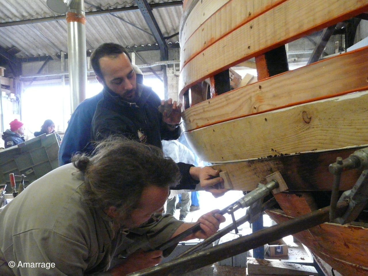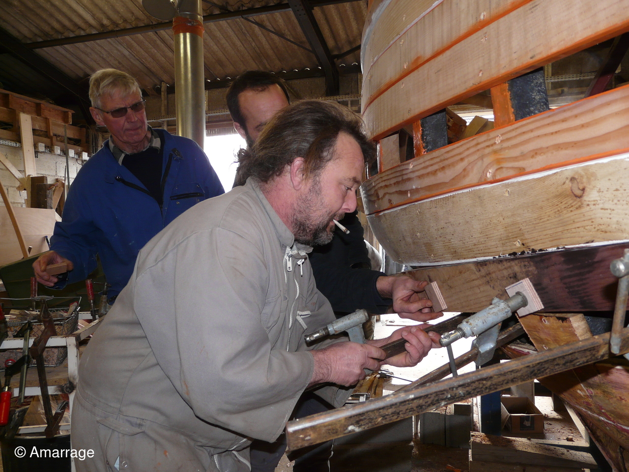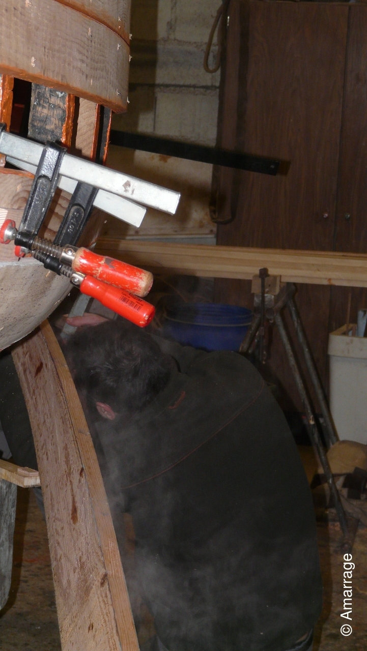 L'atelier est de nouveau en pleine effervescence... aux bateaux...et aux fourneaux. Pose d'un bordé sur le "CHRISTIANE", démontage de la vielle vergue de la "NEREÏDES"... et prépration d'un repas gourmand. La restauration de la "Caragogne avance bien.