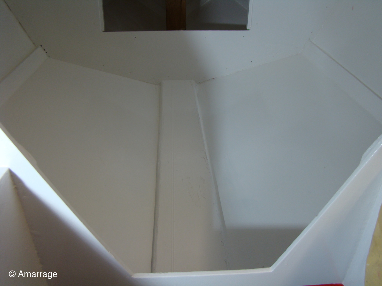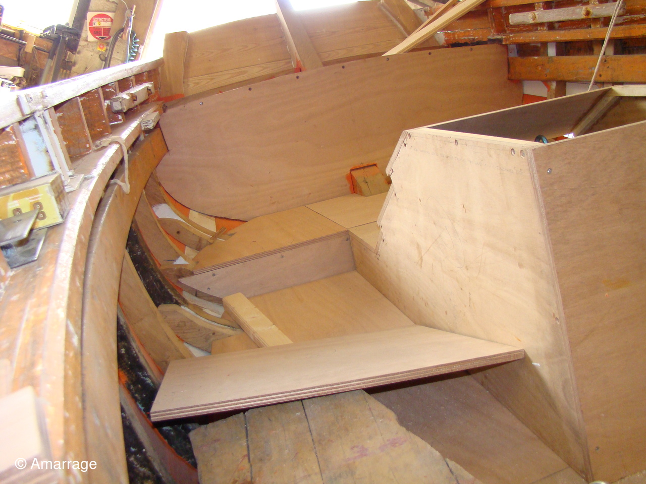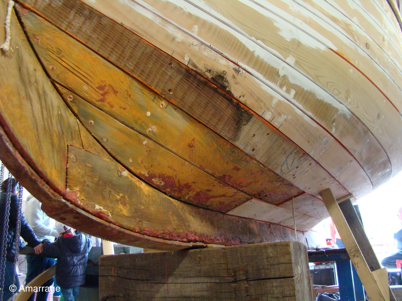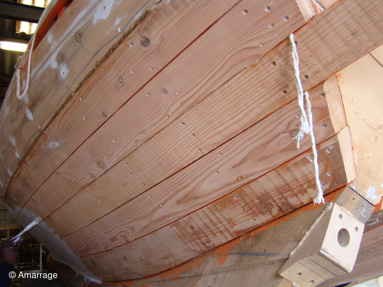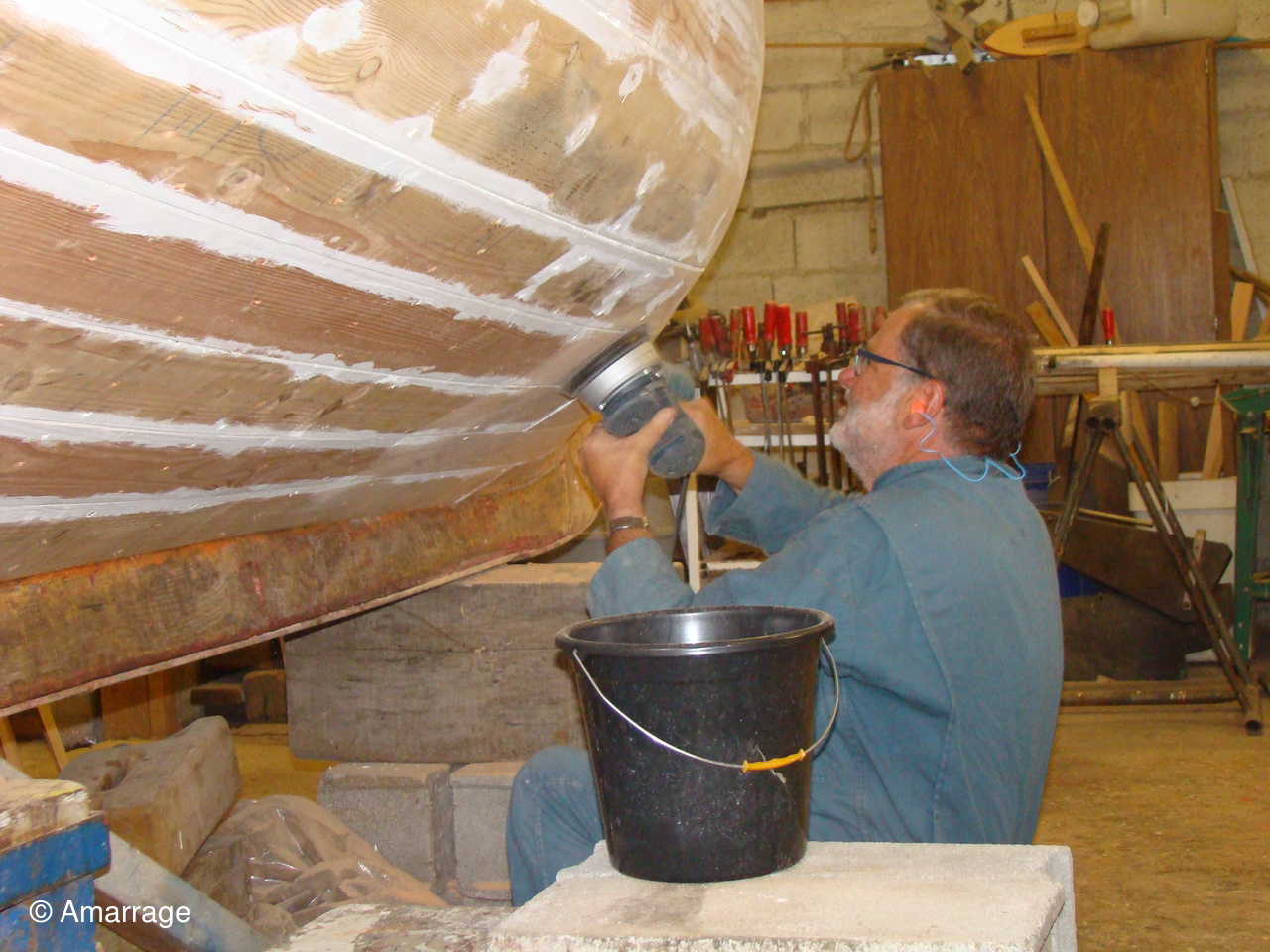- CHRISTIANE: peinture intérieure de la coque; calfatage des derniers bordés.