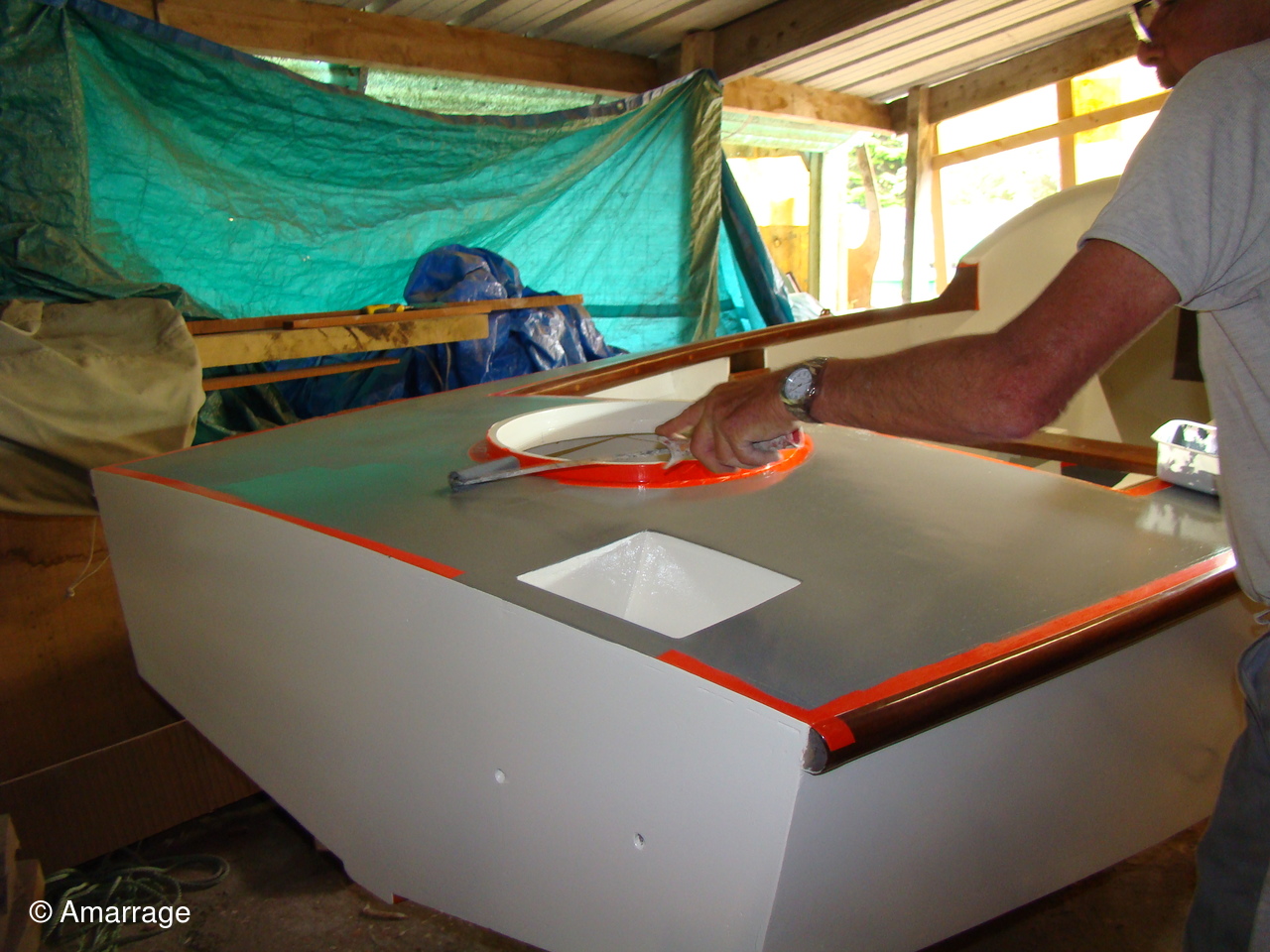 - CARAGOGNE: fixation bite d'amarrage. Peinture cale; rouf intérieur et extérieur; dernière couche pour le pont; première couche d'antifouling pour la coque....çà sent..la fin de chantier!