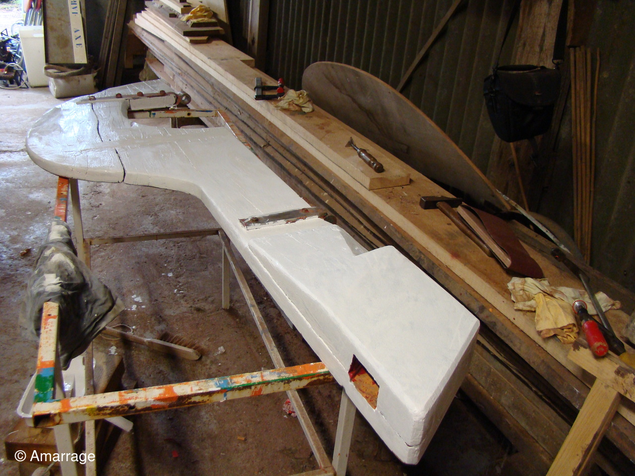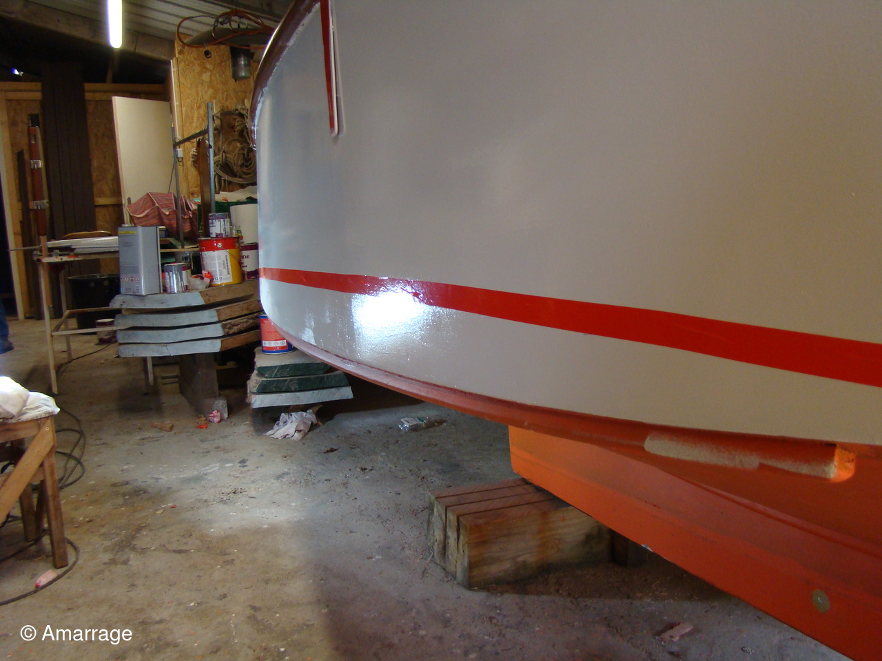 - MAGUIE-SANSON: peinture d'aprêt pour la coque coté bâbord.