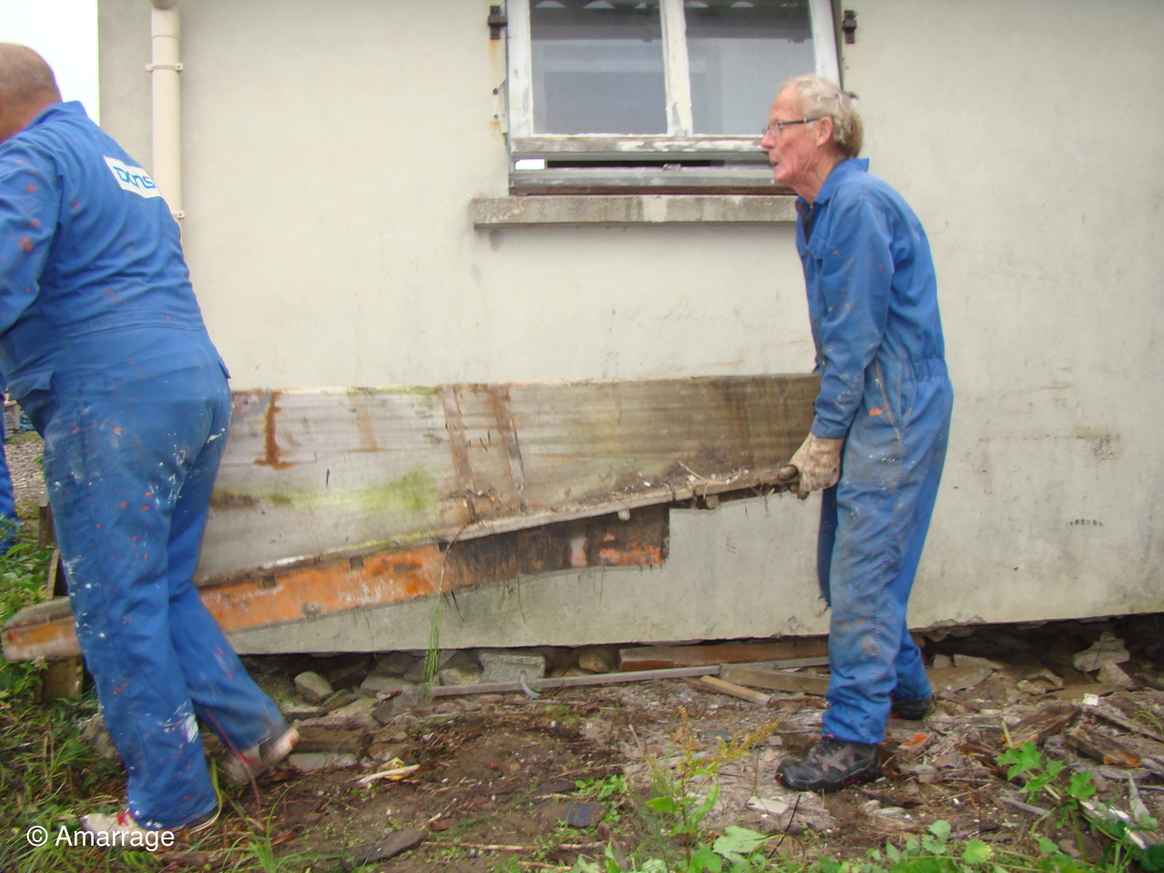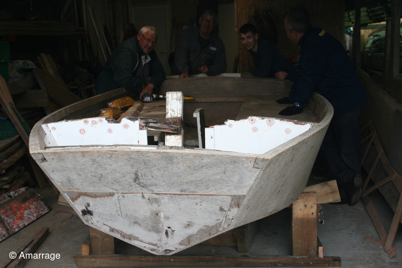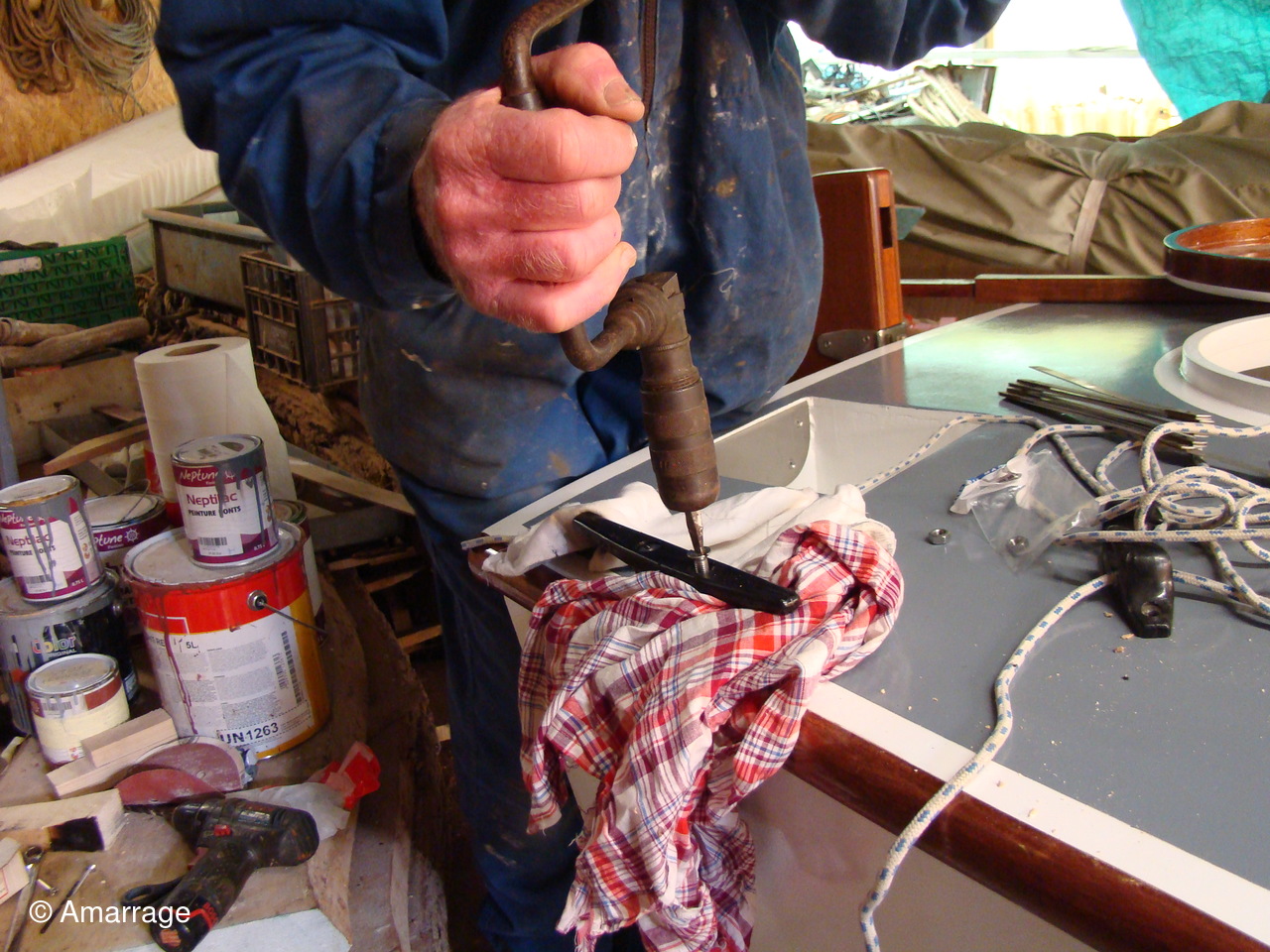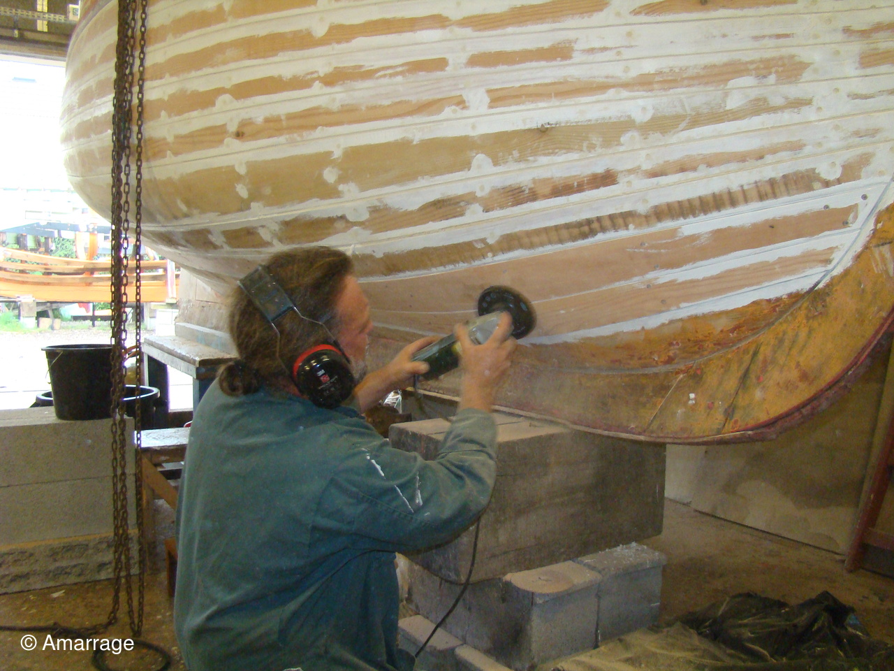 - CHRISTIANE: sa restauration se poursuit. Ponçage ,calfatage. Travail sur le coffre moteur,; sur la partie avant; fixation moteur; safran (ponçage et aprêt peinture).