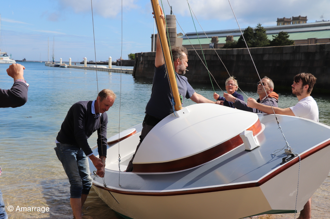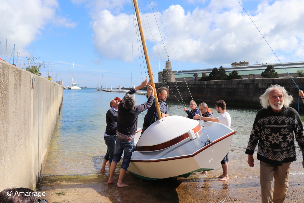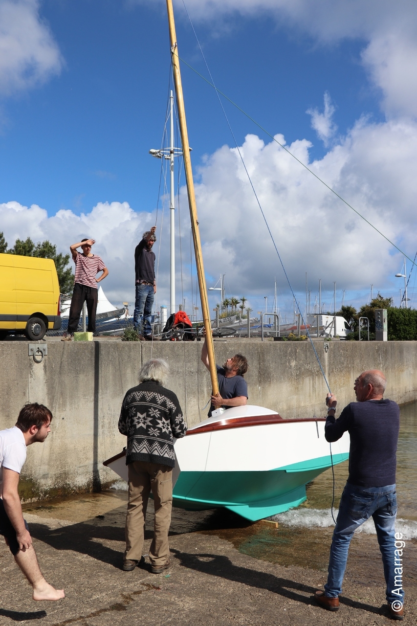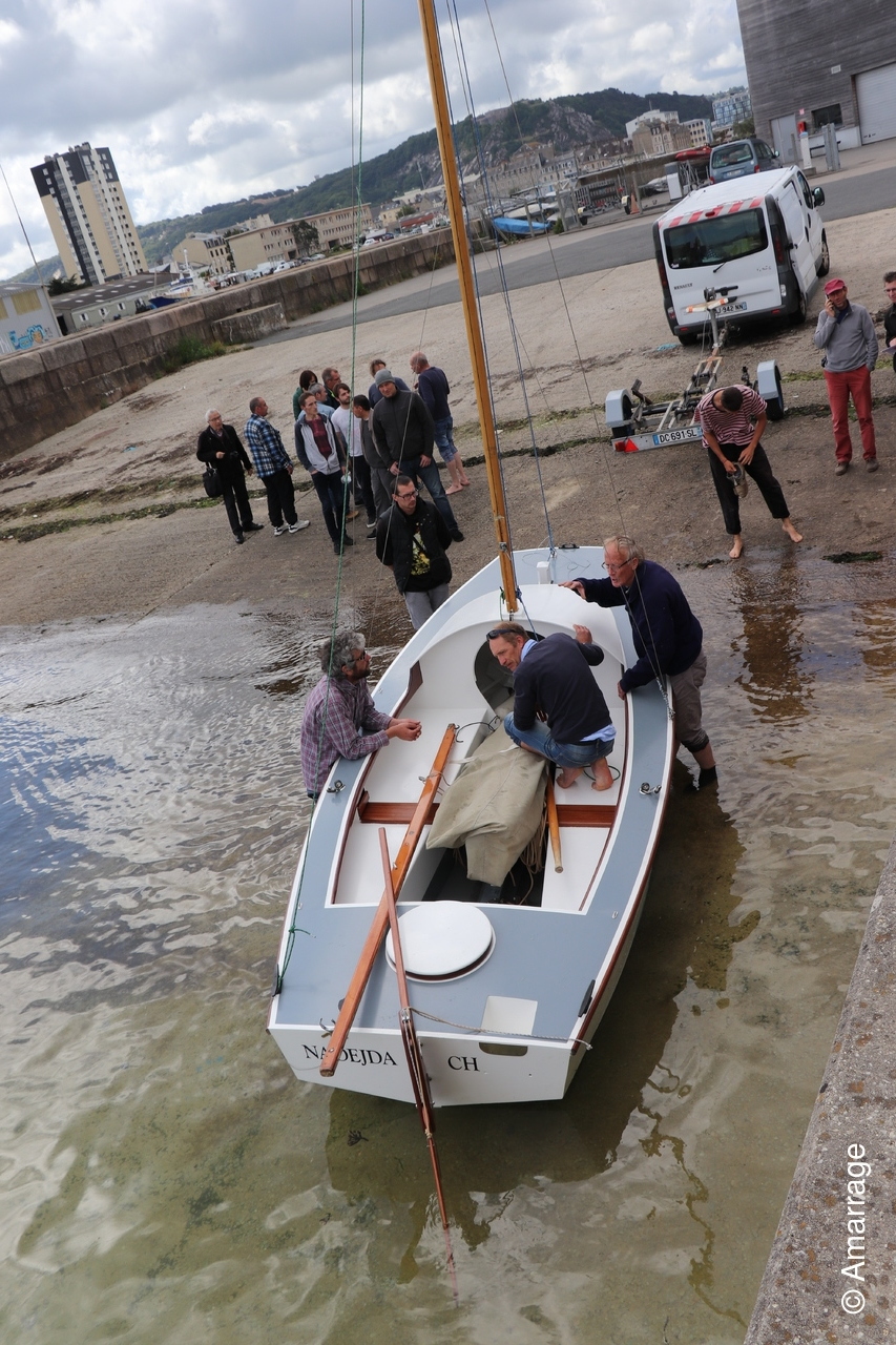 Par une magnifique journée ensoleillée la Caragogne "NADEJDA" à quitté l'atelier d'Amarrage où elle a été restaurée, pour rejoindre son élément liquide à l' Ecole de voile Chantereyne. Beaucoup de monde pour cet évènement.