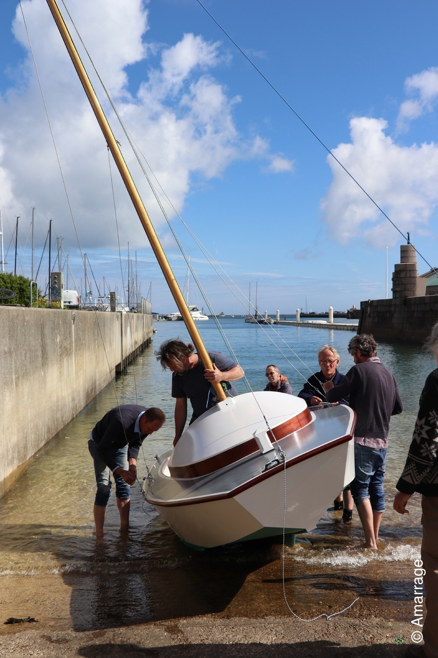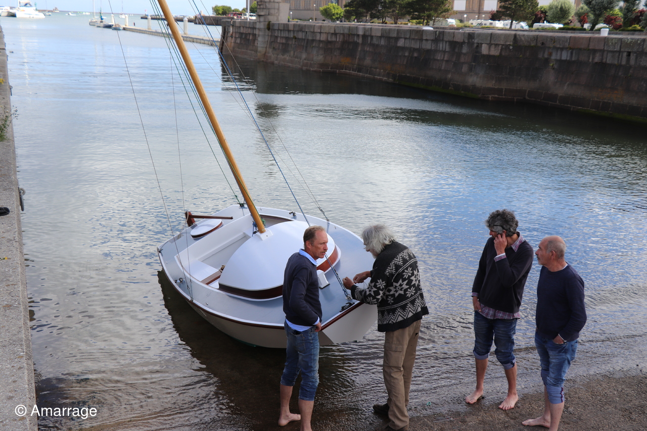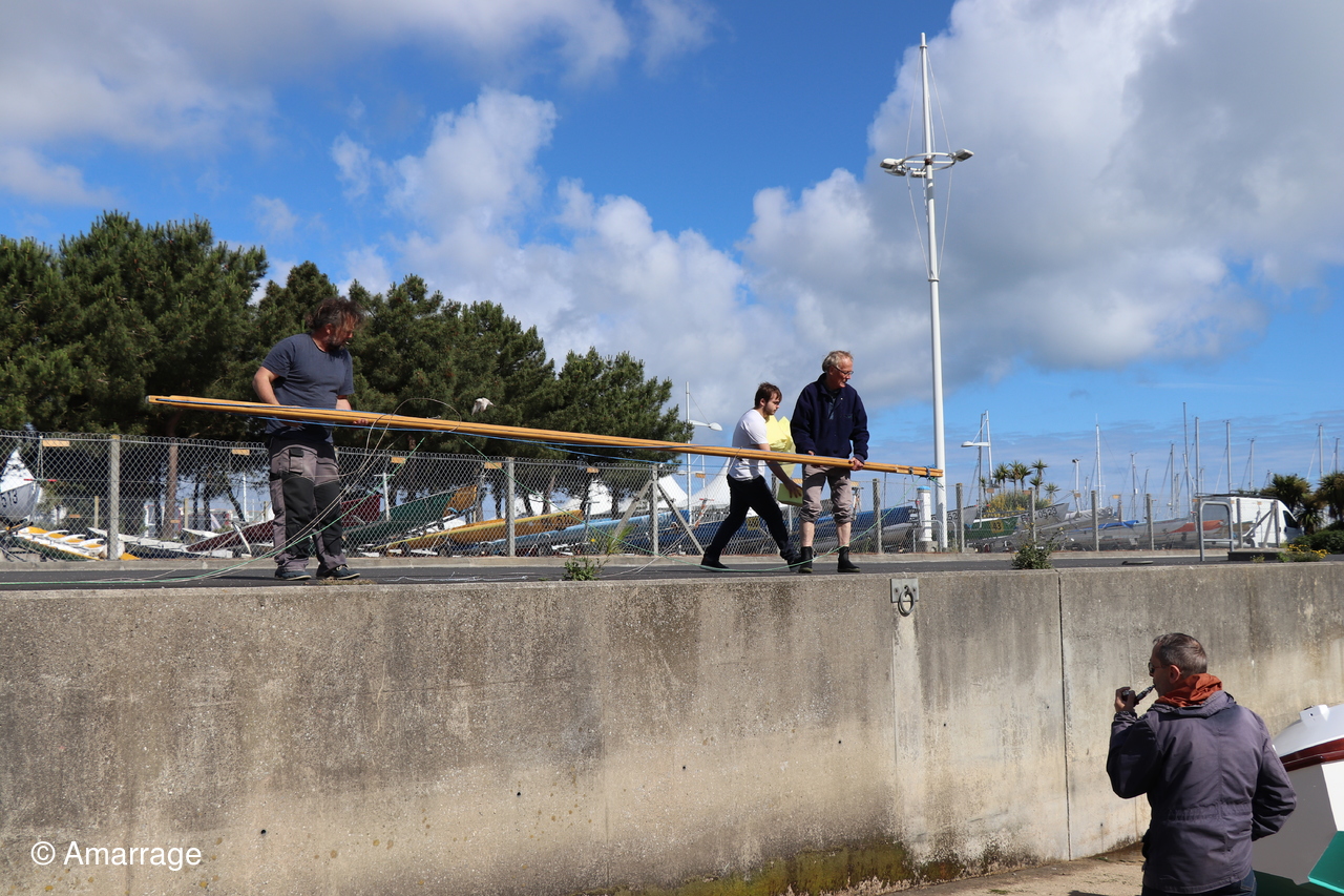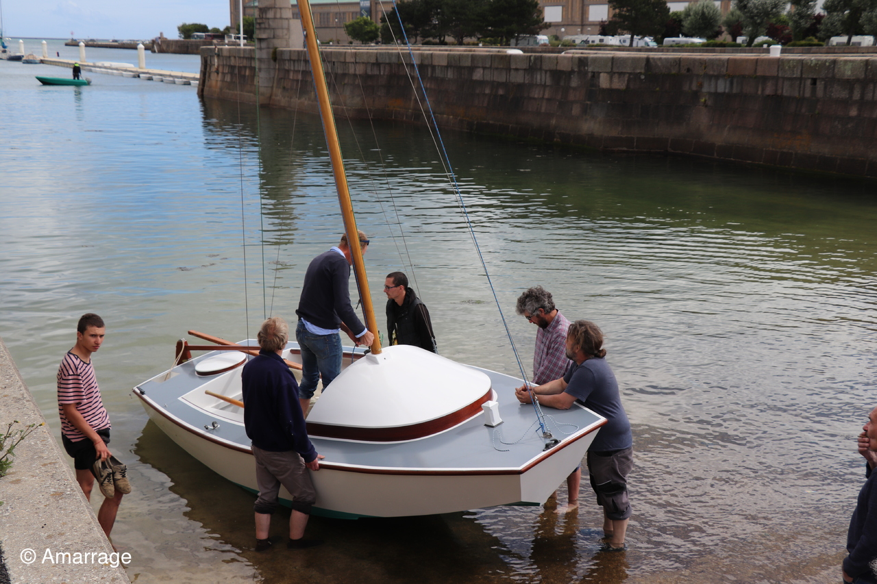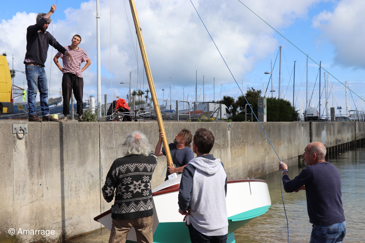 Par une magnifique journée ensoleillée la Caragogne "NADEJDA" à quitté l'atelier d'Amarrage où elle a été restaurée, pour rejoindre son élément liquide à l' Ecole de voile Chantereyne. Beaucoup de monde pour cet évènement.