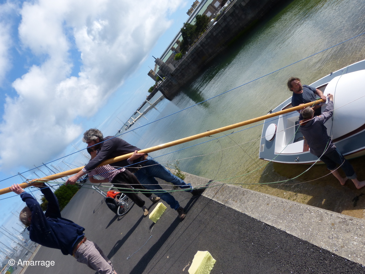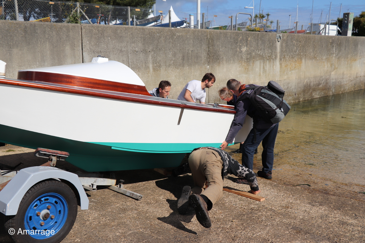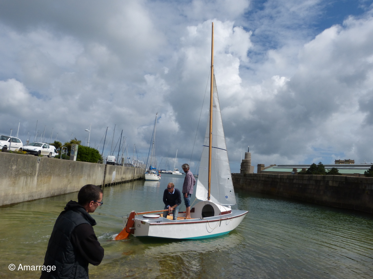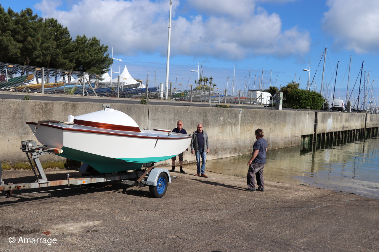 Par une magnifique journée ensoleillée la Caragogne "NADEJDA" à quitté l'atelier d'Amarrage où elle a été restaurée, pour rejoindre son élément liquide à l' Ecole de voile Chantereyne. Beaucoup de monde pour cet évènement.