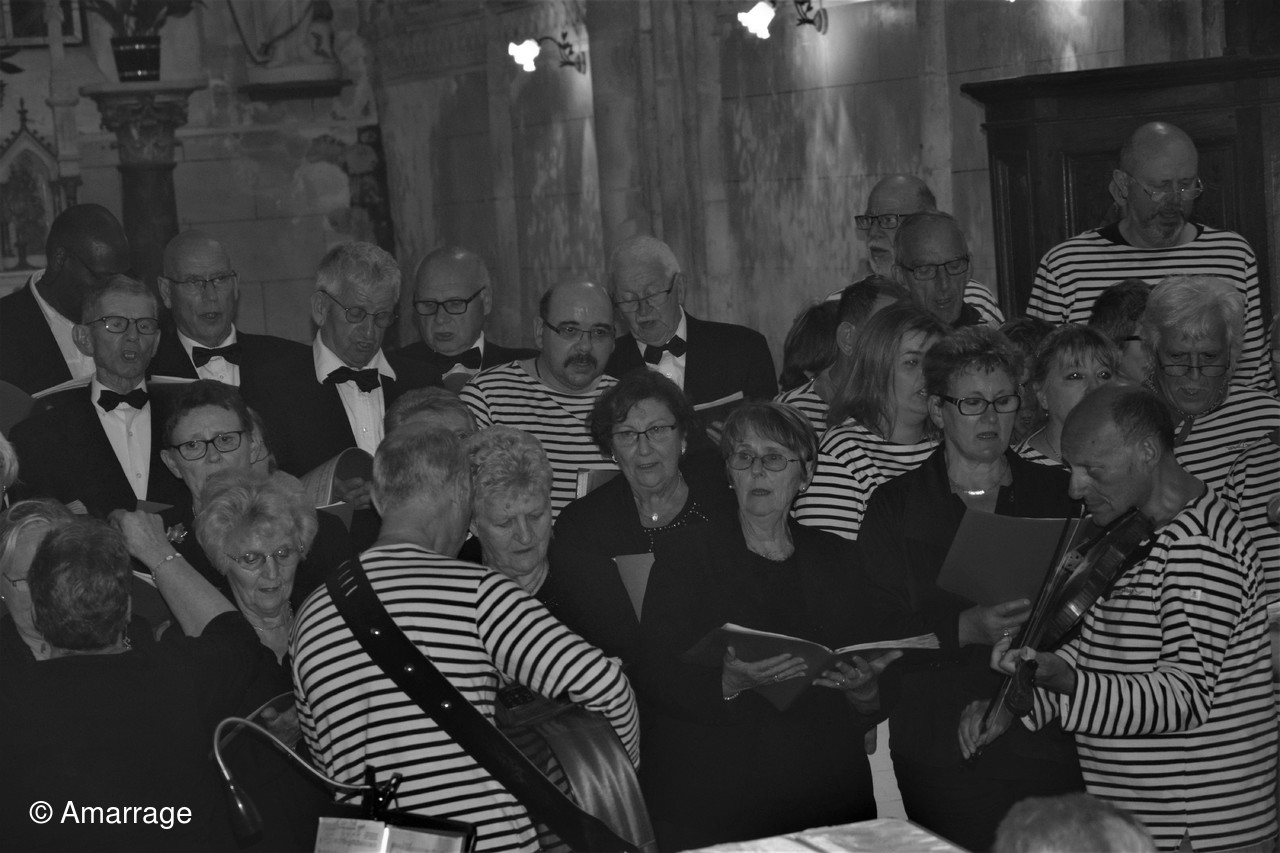 Chaque groupe a effectué un tour de son répertoire avant de terminer par les chants communs de "La Ballade Nord Irlandaise" et de "Marie-Jeanne-Gabrielle". Devant l'enthousiasme du public, les deux chorales ont improvisé un rappel sur "Santiano".