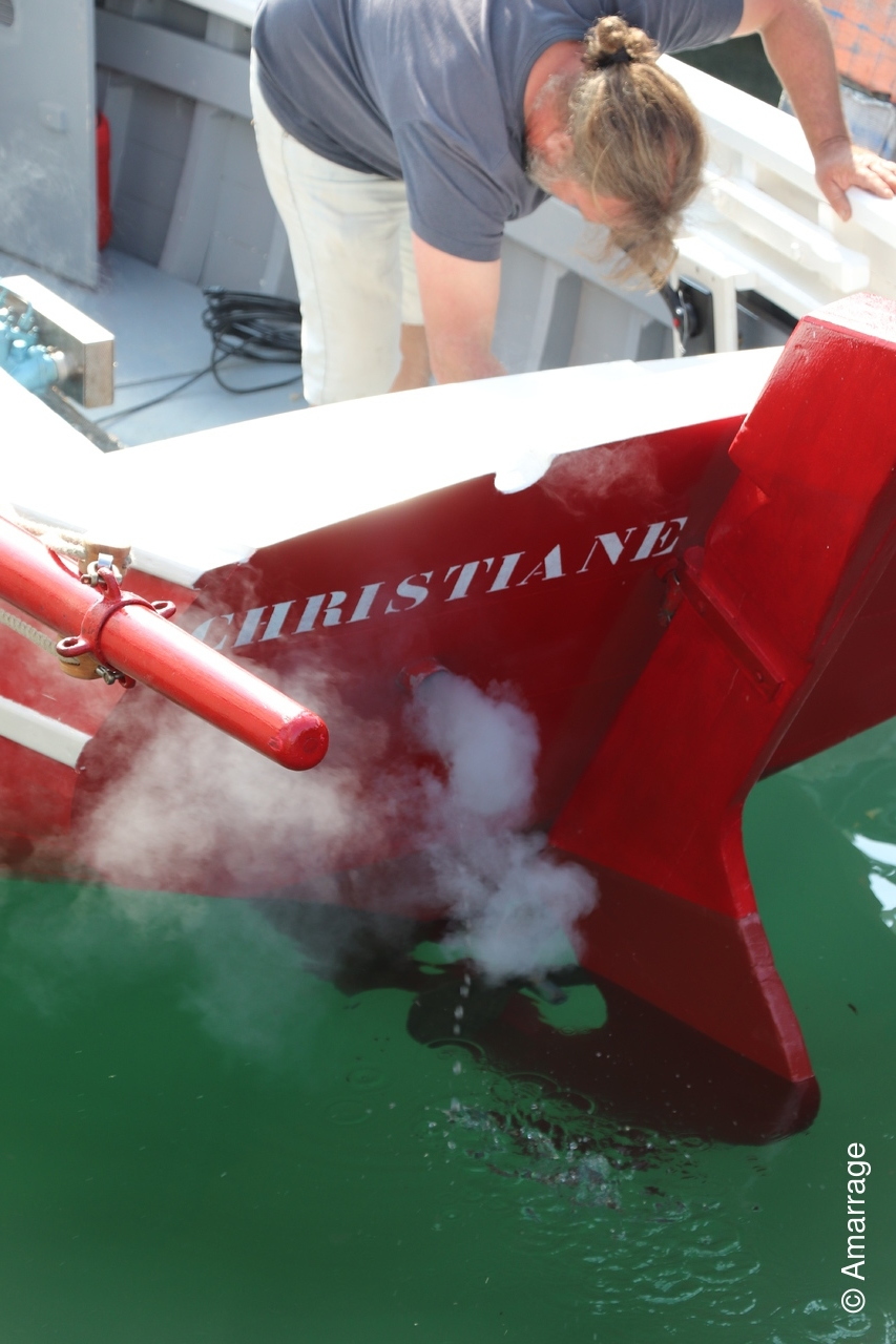 Par une très belle journée ensoleillée, le CHRISTIANE- GOURY à rejoint son élément liquide ce vendredi 2 août 2019, un peu avant 11h. Il s'est amarré au quai de l'epi où il y séjournera quelque temps, avant de rejoindre GOURY son port d'attache.