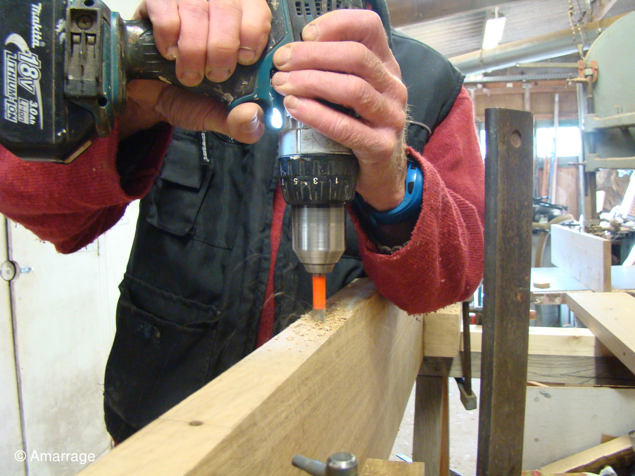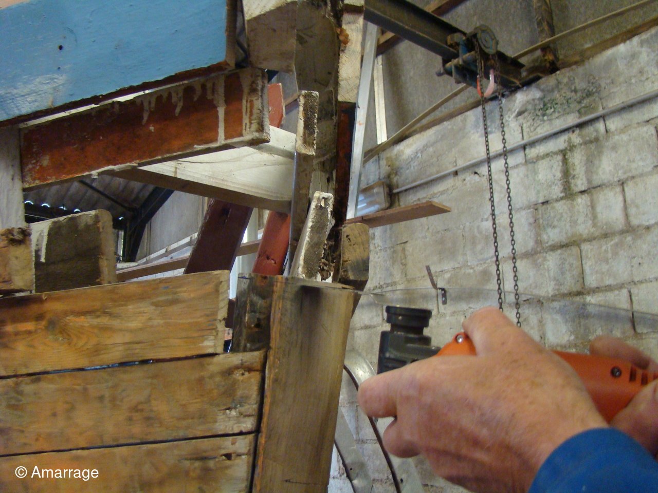 porte d'accès au hangar, grattage des ferrures de la dérive, fixation d'un