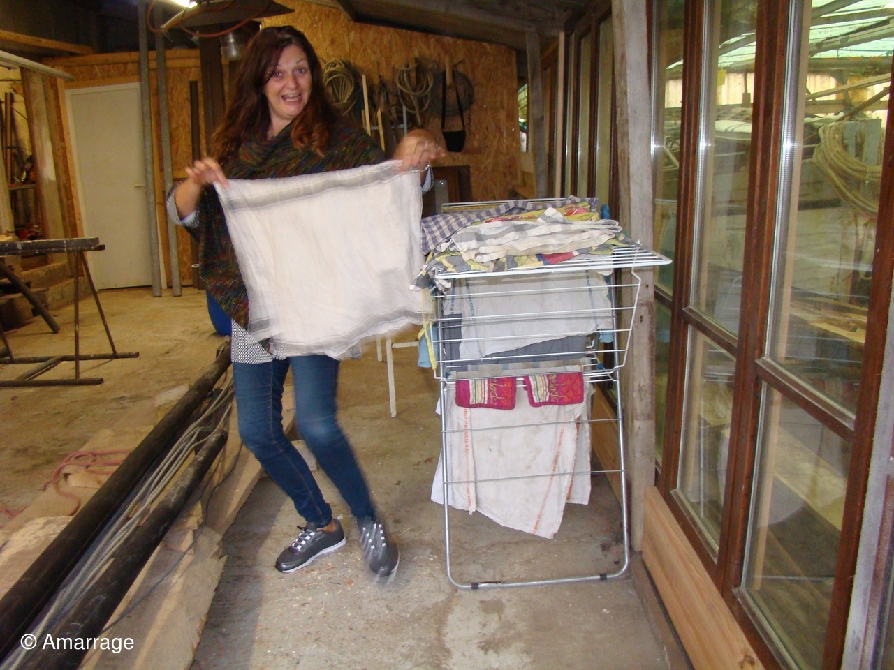 "AWASSA" : arrivée à l'atelier; travail sur la cloison avant. démontage des gréements et séchage voile.