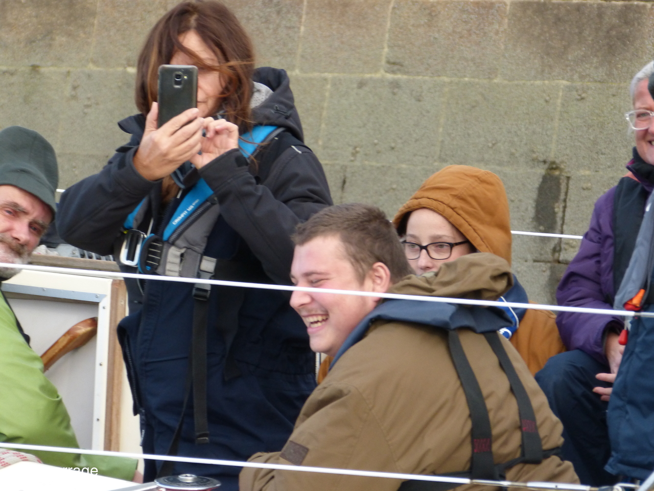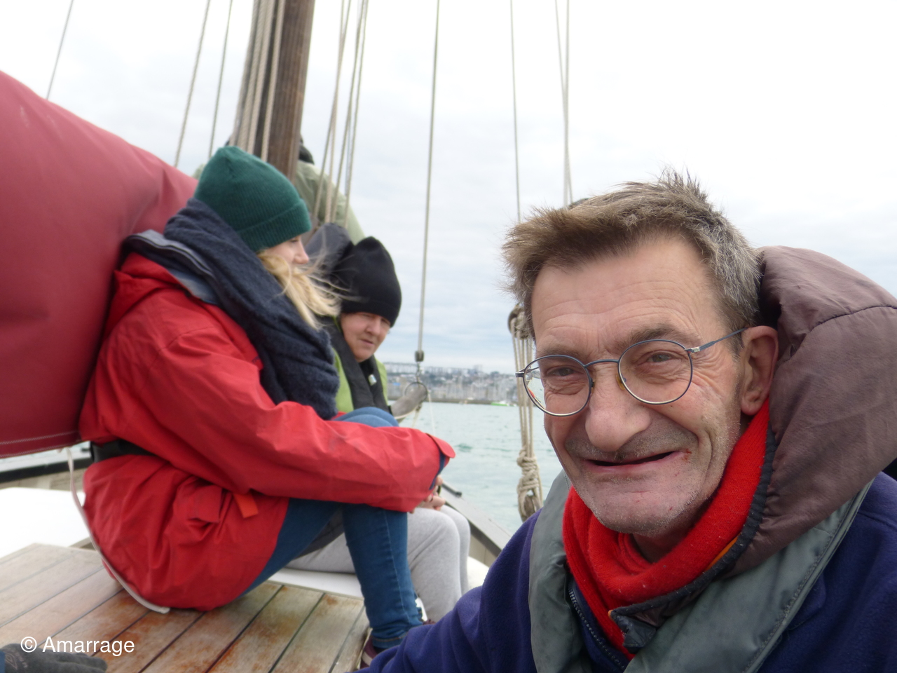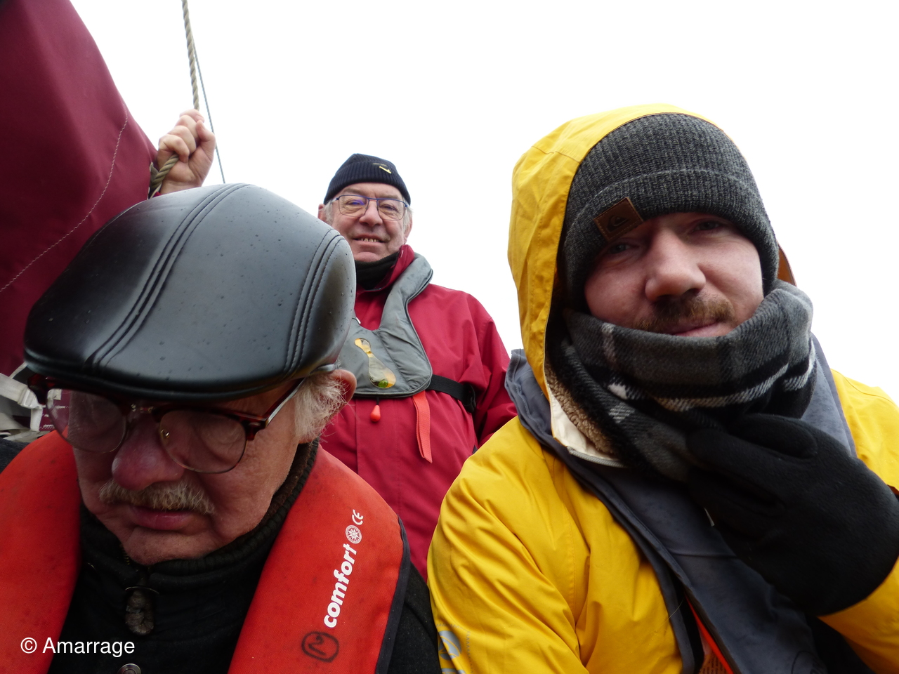 Profitant d'une rare acalmie en ces temps maussades, les gabiers d'Amarrage embarquent à bord d'HIVAOA et de la NEREÏDES pour une sortie, soit à la voile, soit au moteur.