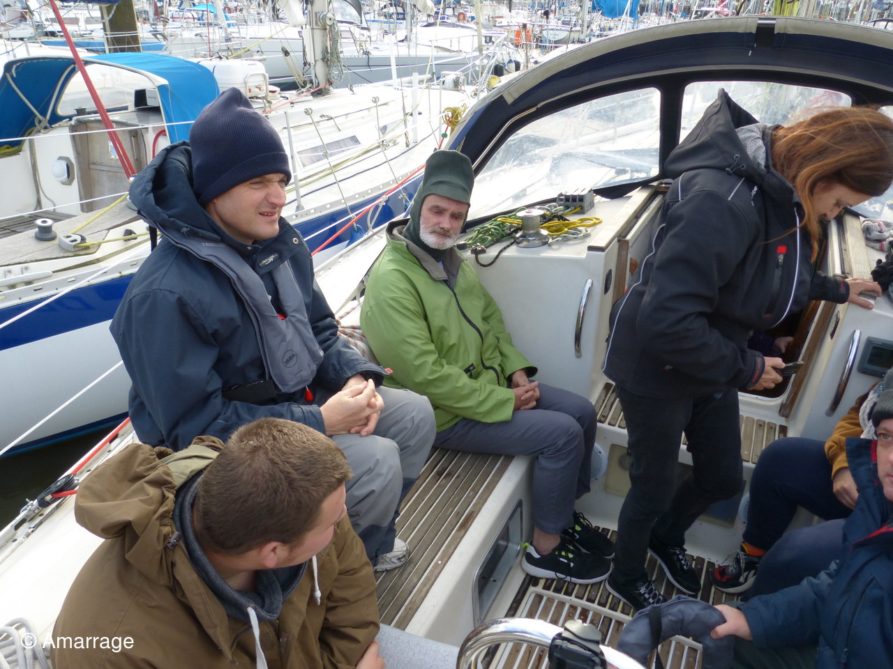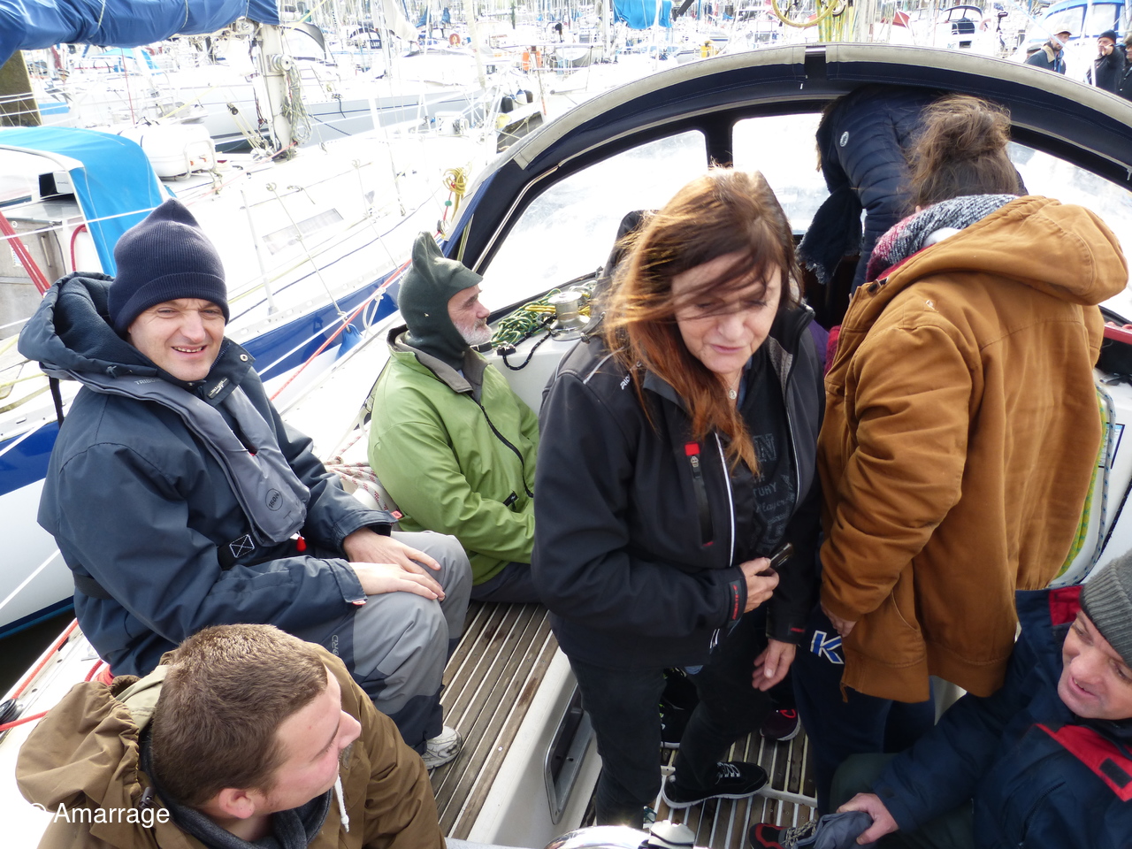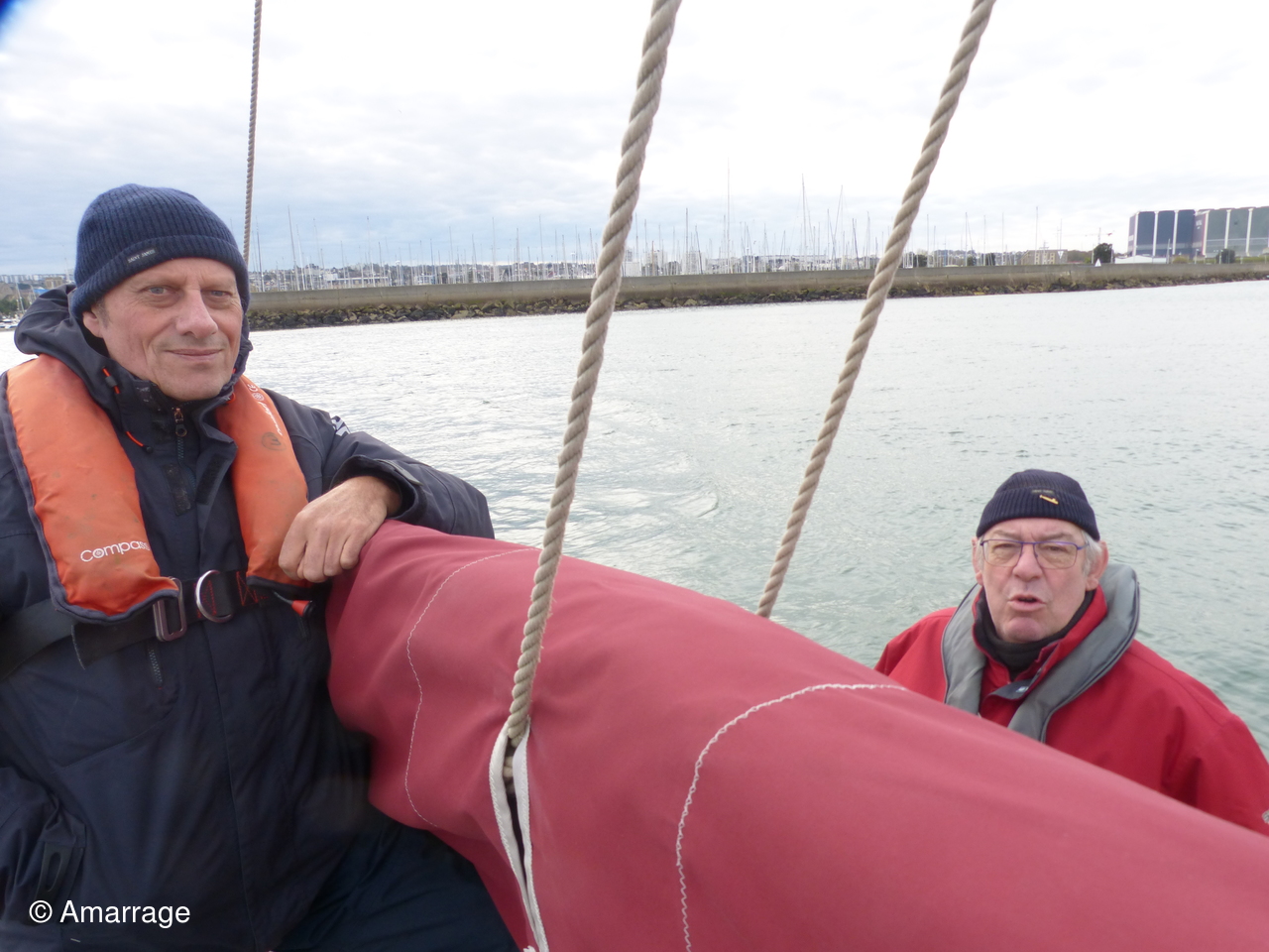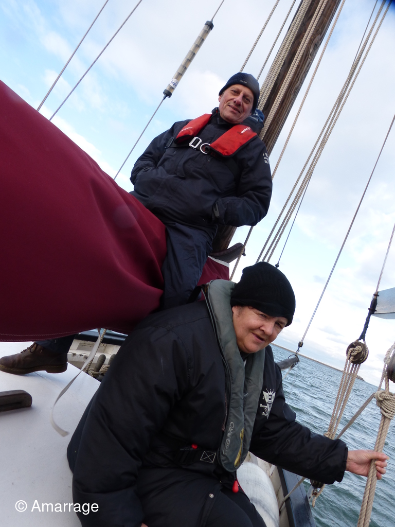 Profitant d'une rare acalmie en ces temps maussades, les gabiers d'Amarrage embarquent à bord d'HIVAOA et de la NEREÏDES pour une sortie, soit à la voile, soit au moteur.