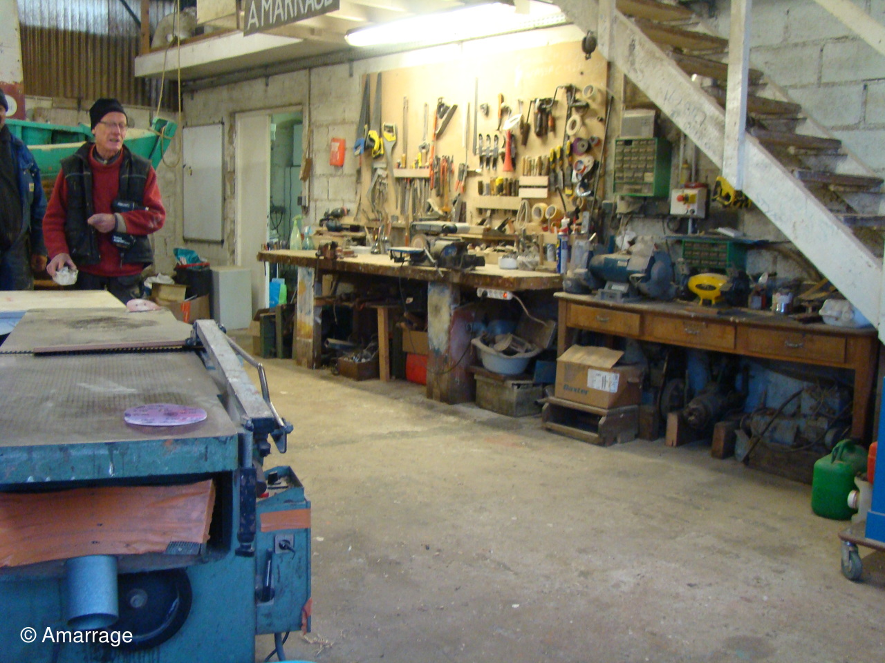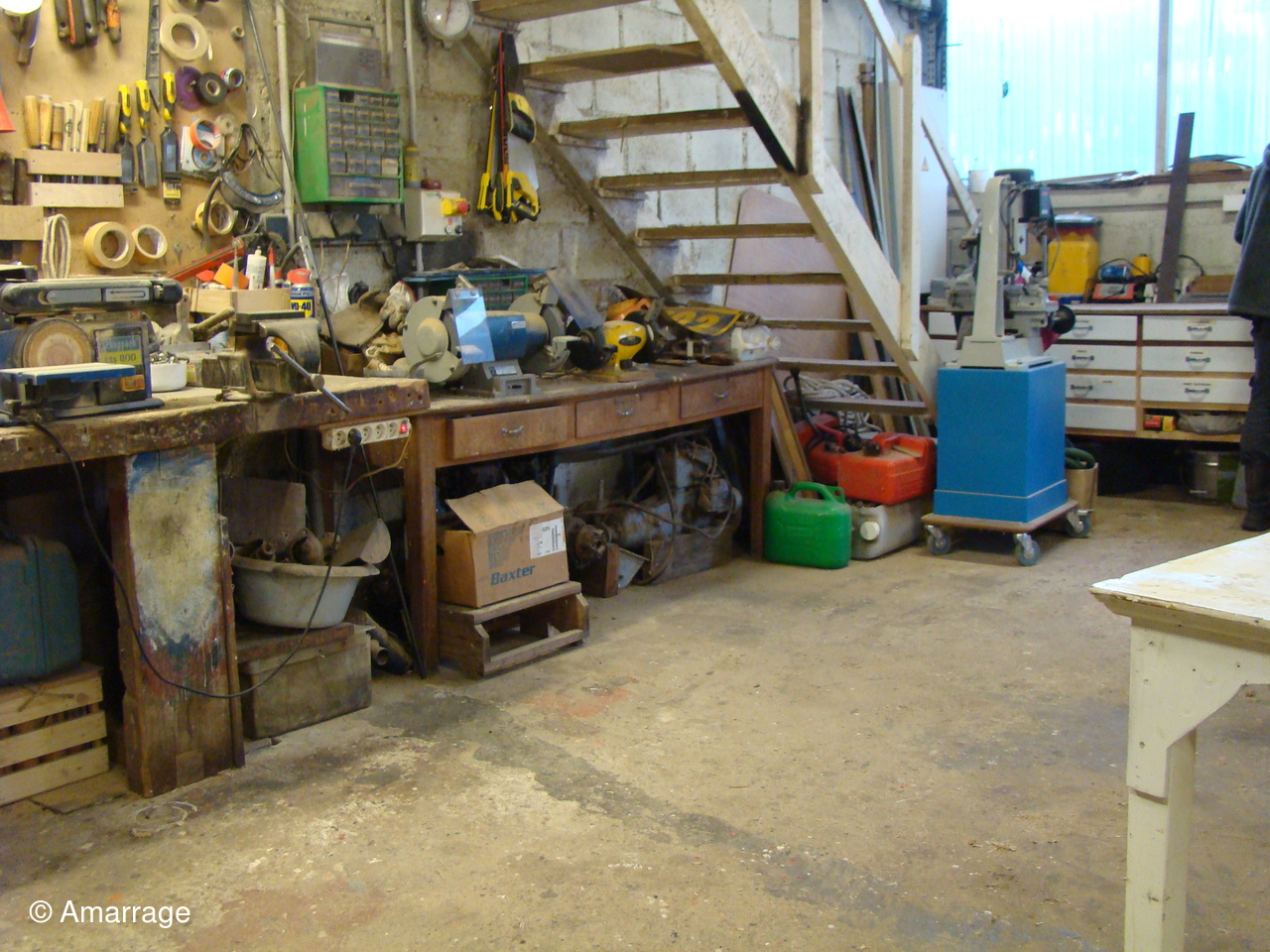 Atelier: nouvel aménagement de l'espace travail. Déplacement établi, nouvel espace rangement avec établi.