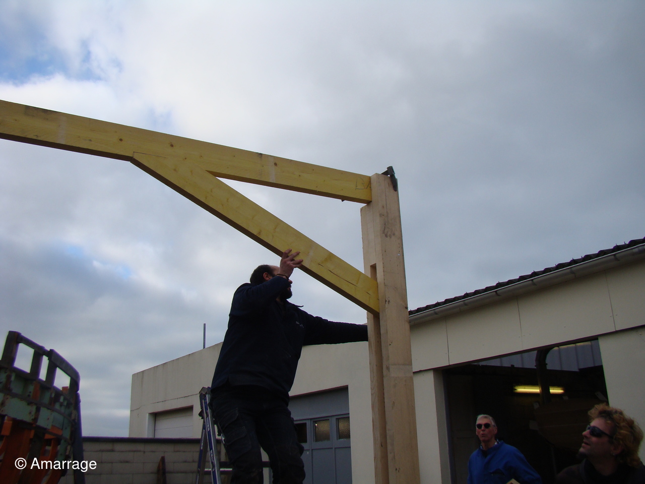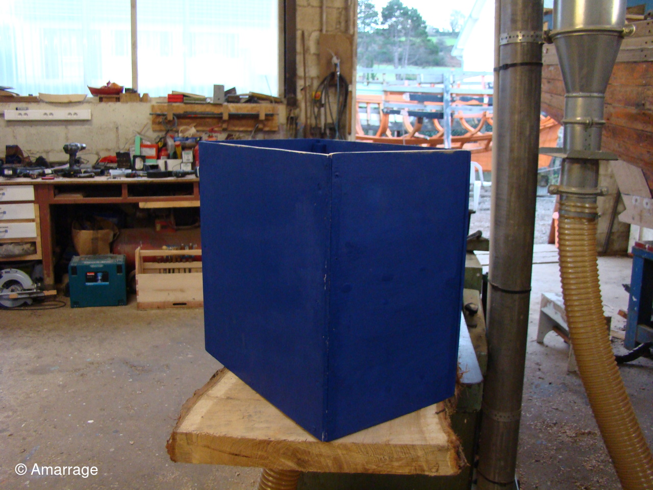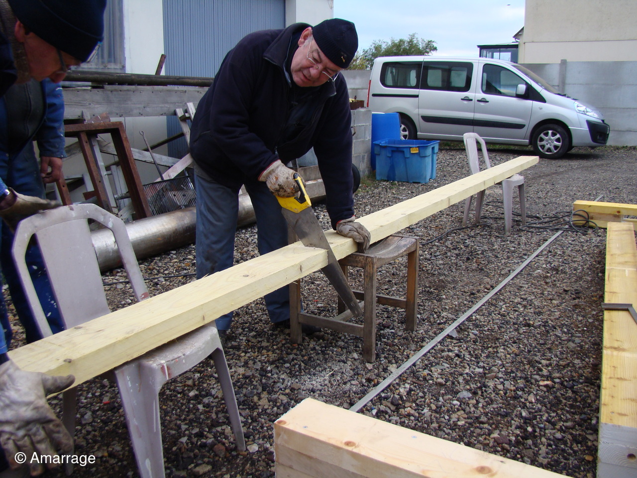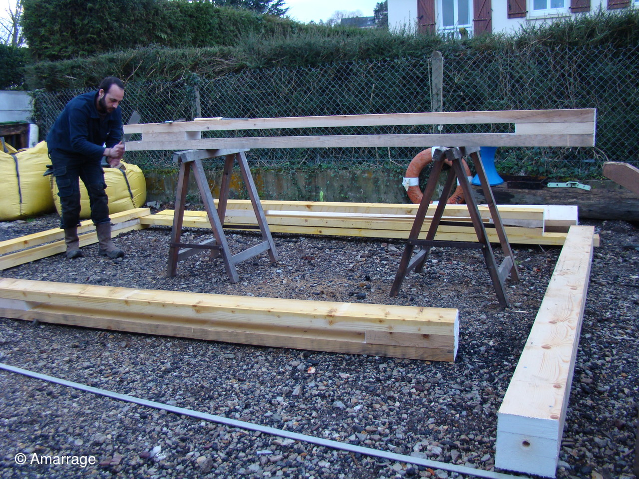 Atelier: dans la cour de l'atelier, montage d'un abri pour bateau.