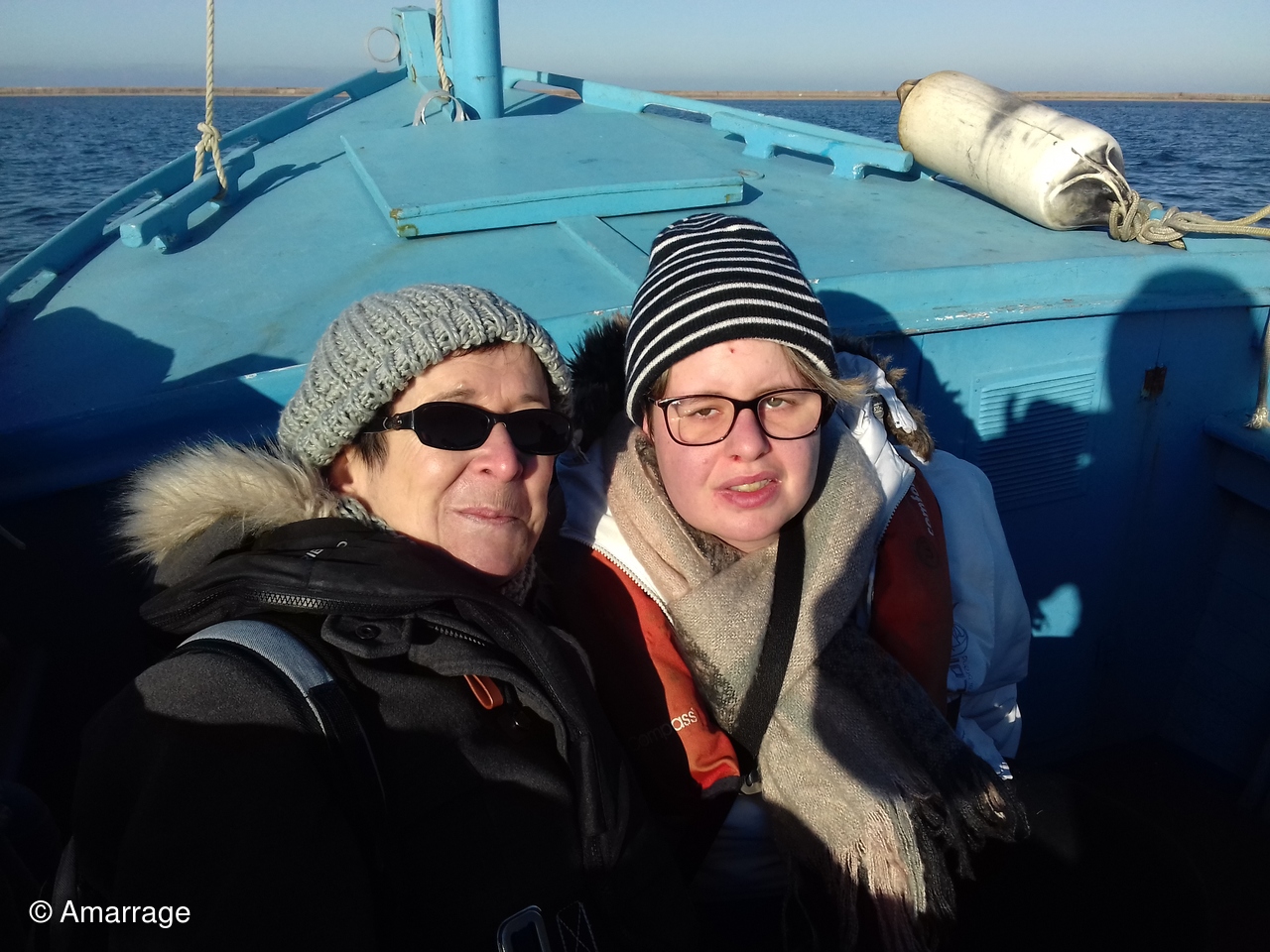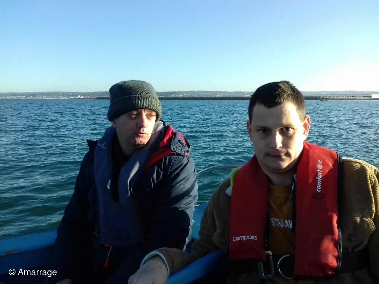 1ère navigation de l'année à bord du "LAD", au moteur, sous un grand soleil. Température un peu frisquette quand même.
