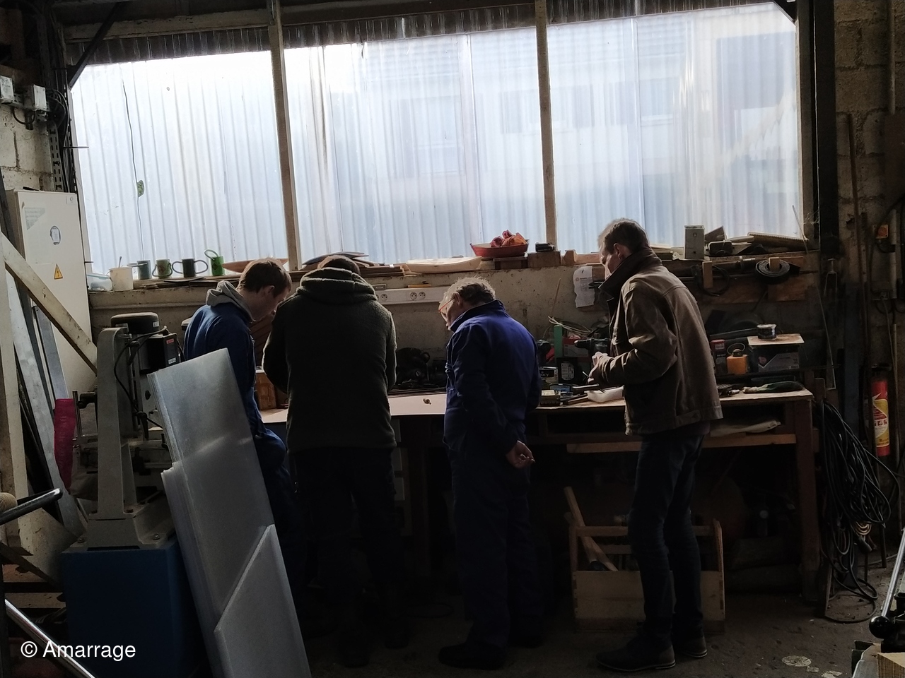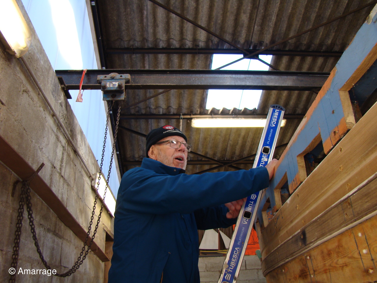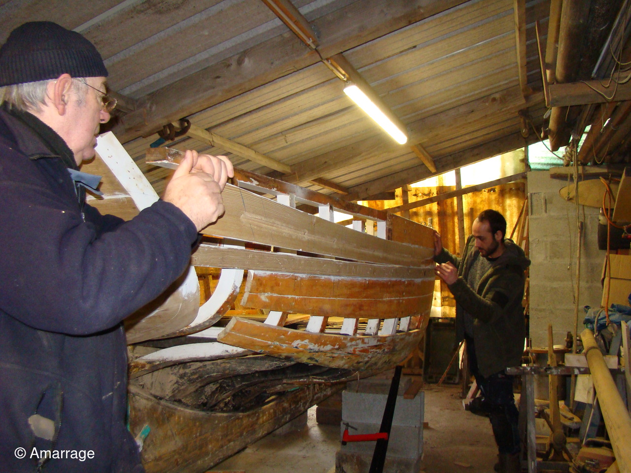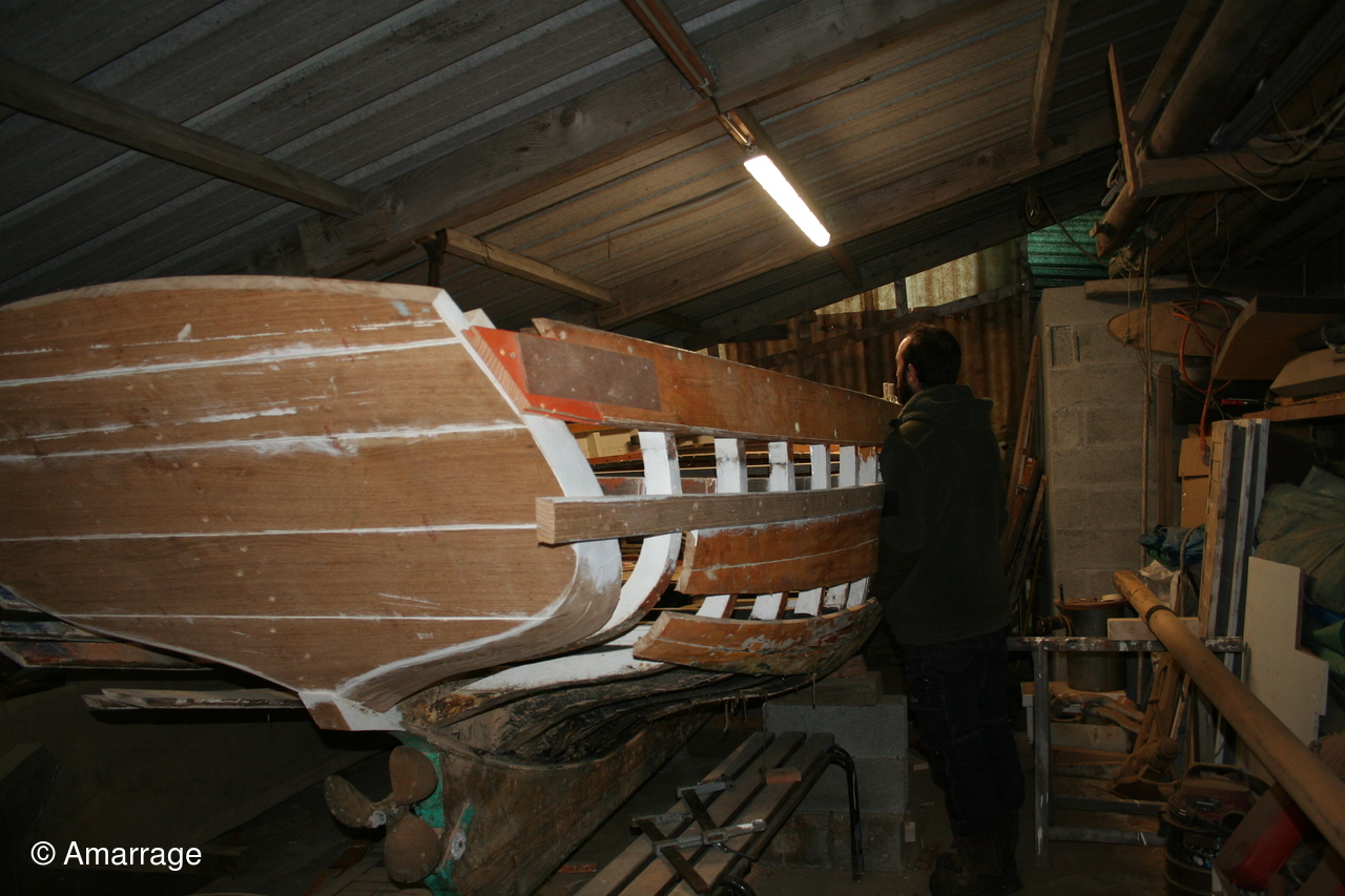 Atelier: l'abri pour bateaux a reçu sa couverture. Il abrite " A DIEU VA"