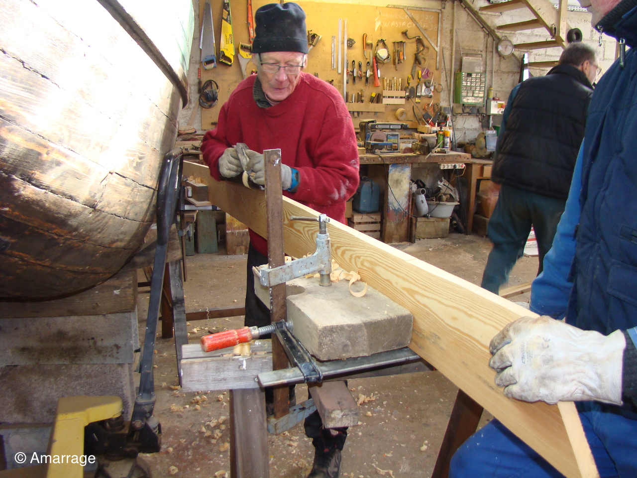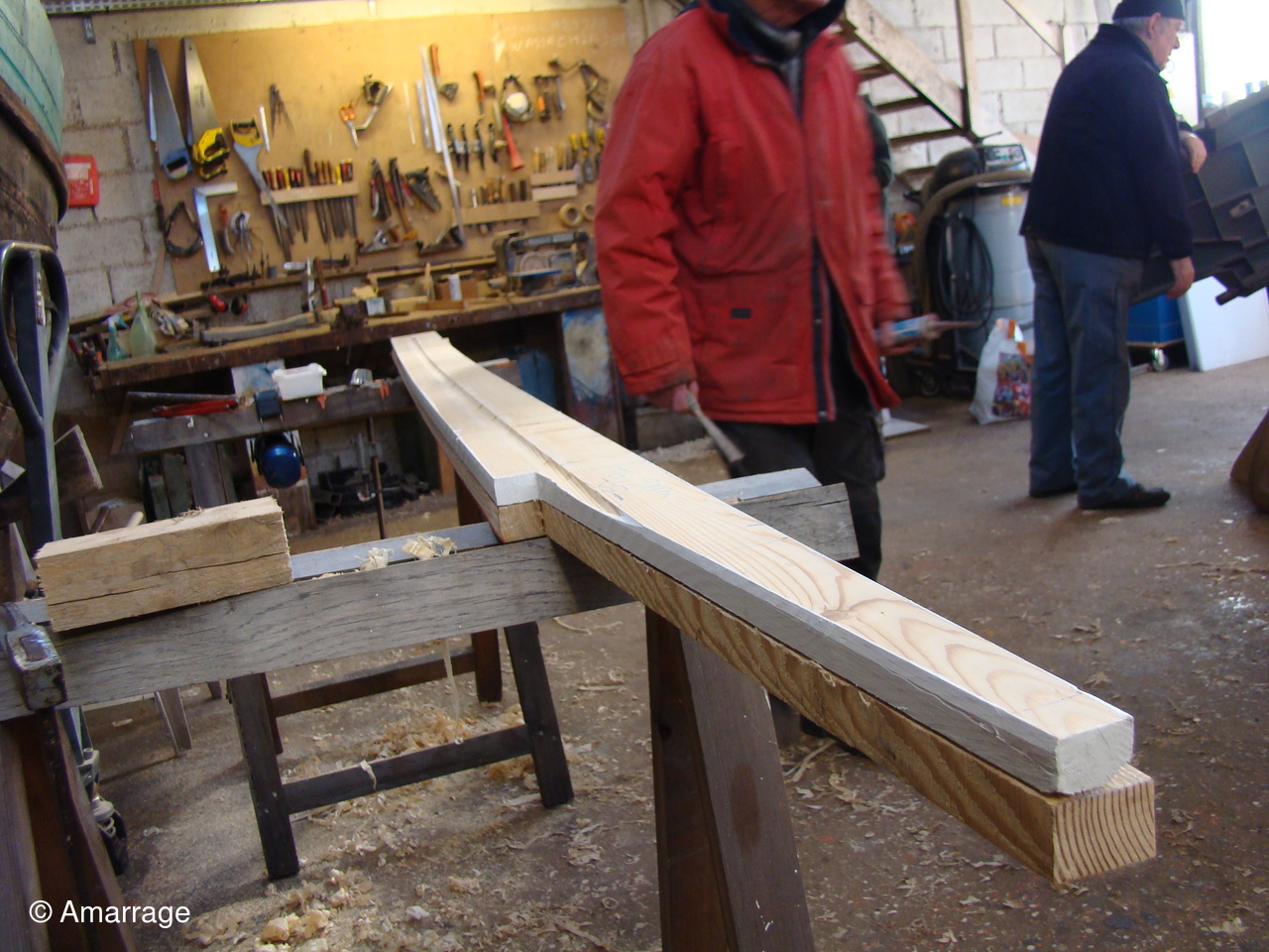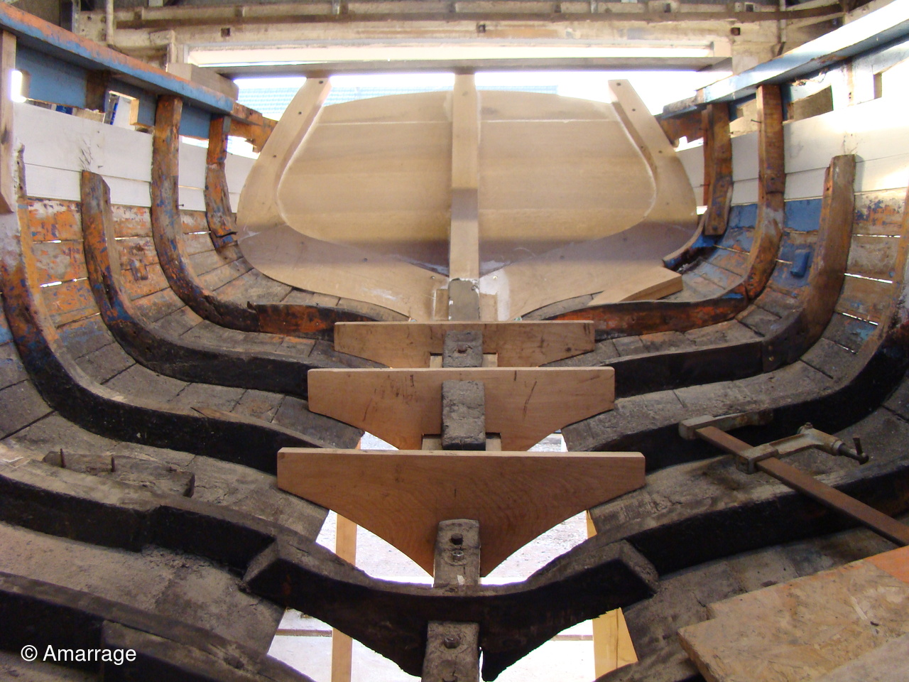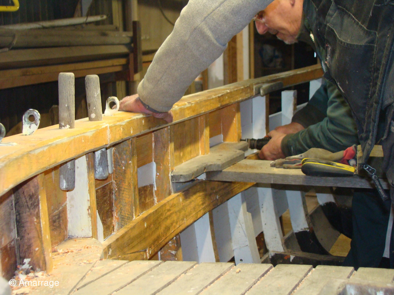 "MARIE JOSEPH" travail sur les membrures à l'arrière. Les varangues sont terminées