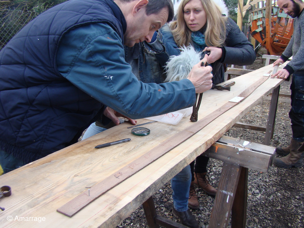 "AWASSA": mise en place des listons- travail sur un bordé de tribord - réalisation du capot sur l'avant.