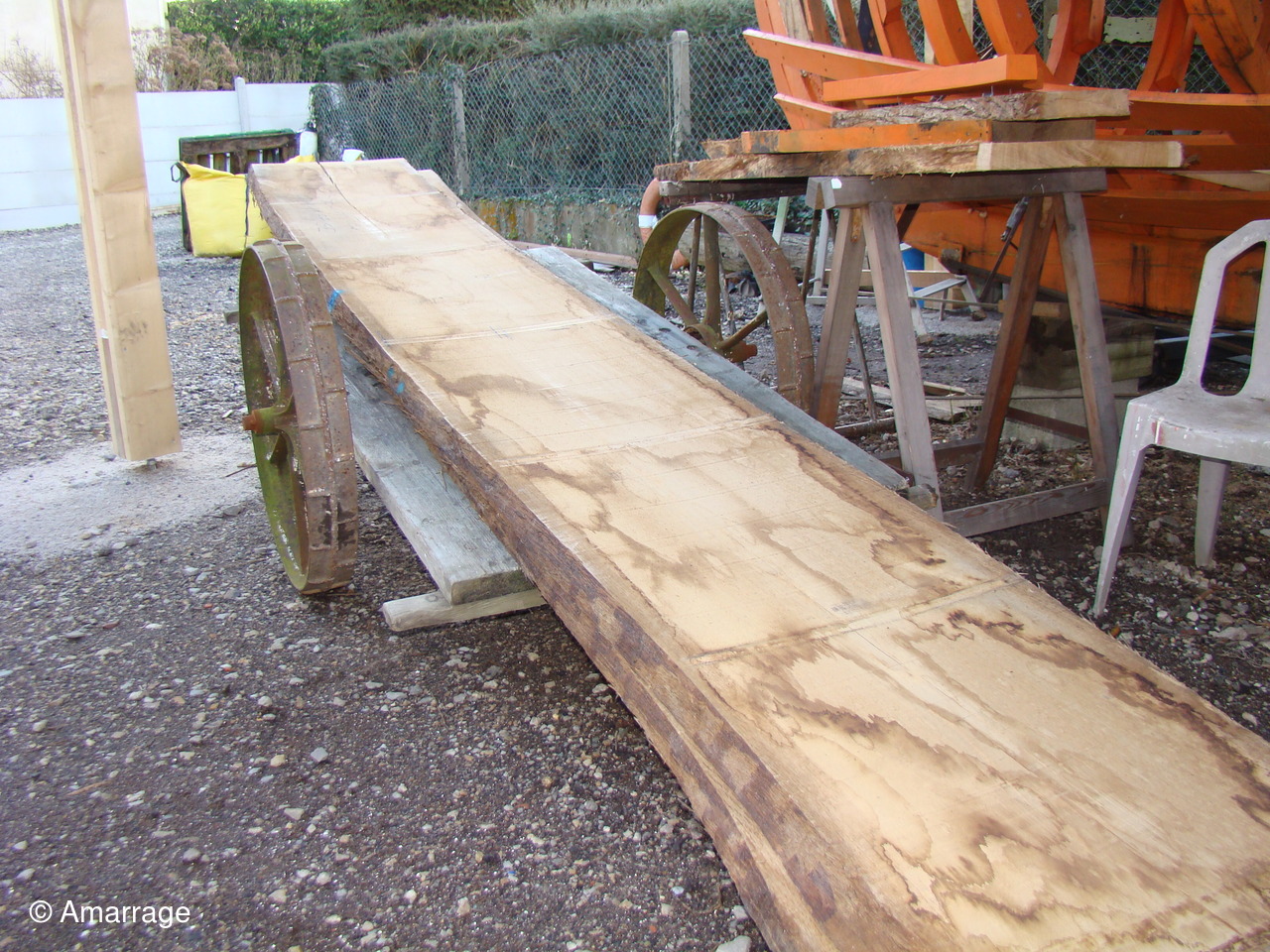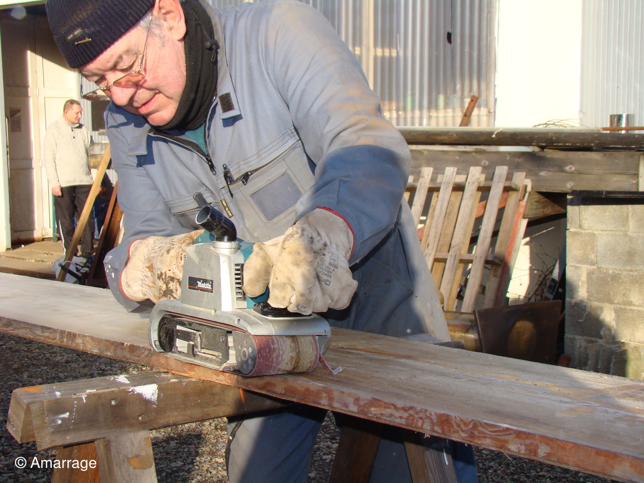 Atelier: arrivage de bois; divers travaux (fabrication, ponçage, nettoyage.)