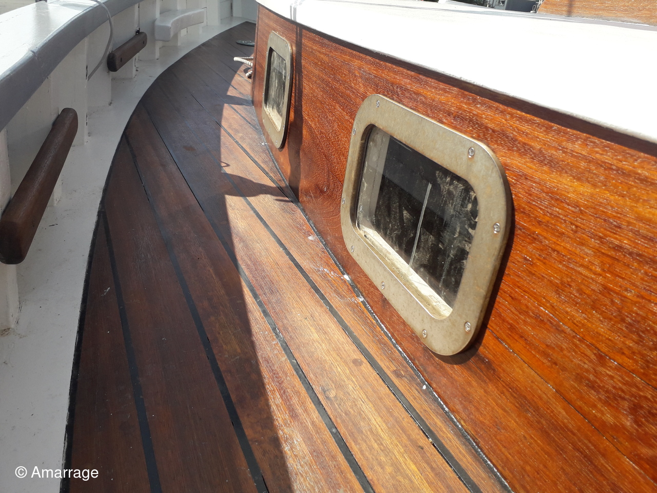 liseret) ; enlèvement des protections, retouches de peinture; nettoyage des crépines. Mise en place du capot et portes du rouf. Reste à réinstaller les hublots. Le bateau à été vidé de tout ce qui l'encombrait.