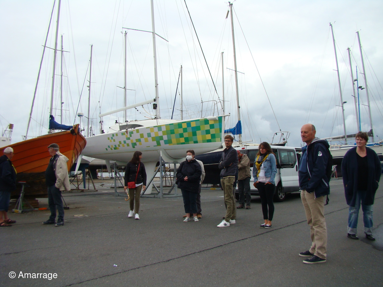 Le grutage a été un peu retardé. La pluie du matin s'était arrêtée. Beaucoup de monde était présent pour cette mise à l'eau qui s'est fort bien passée. La NEREÏDES à rejoint son point d'ammarrage au quai de l'Epi.