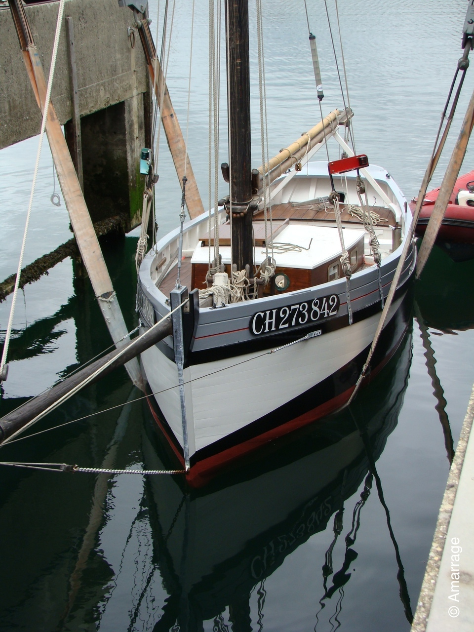 Sur le terre plein de Chantereyne, nous avons trouvé une Vaquelotte du Cotentin qui servait pour la petite pèche, et aussi la "NADEJDA" qui est passée par l'atelier d'Amarrage.