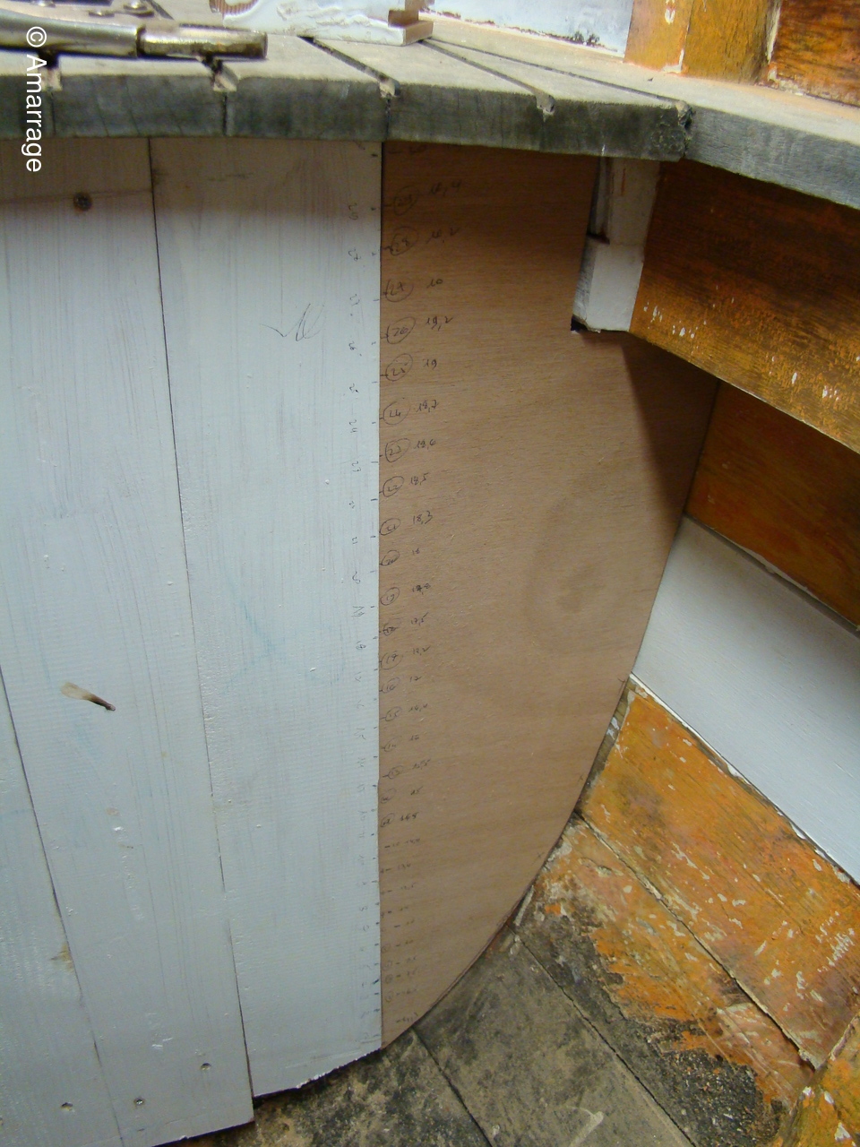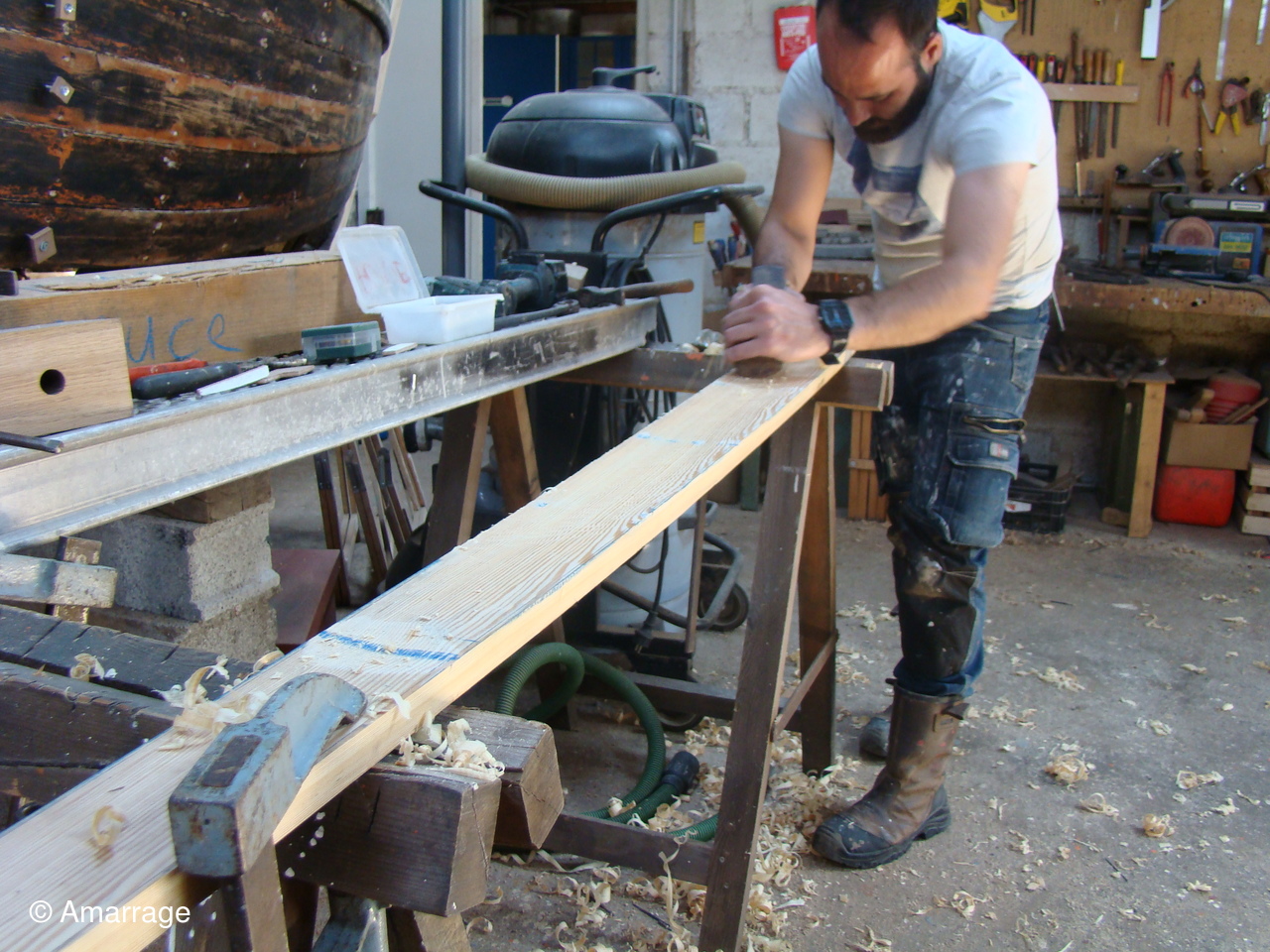 "AWASSA": travail sur un bordé tribord. Fabrication de deux gabarits pour cloison avant.