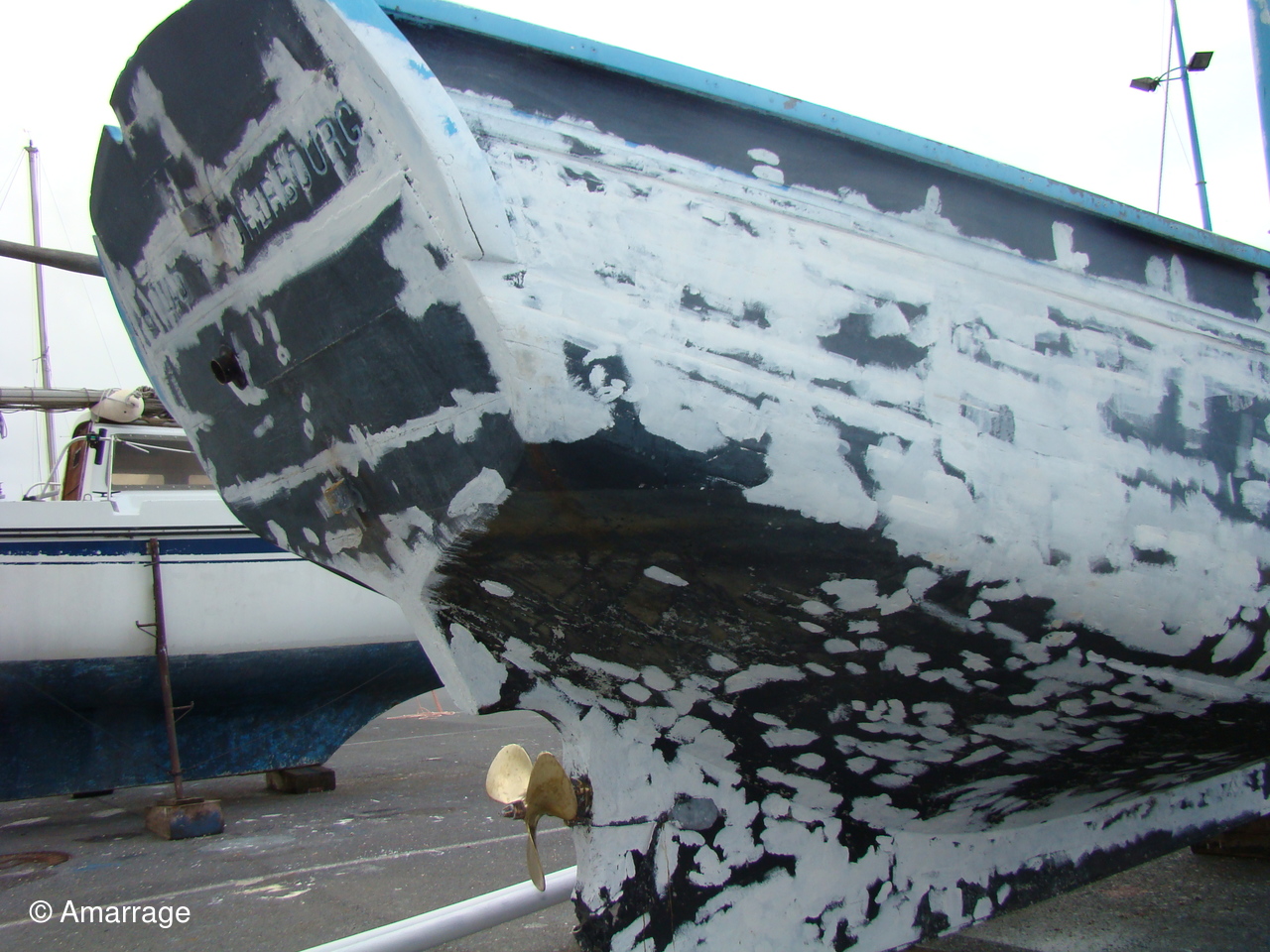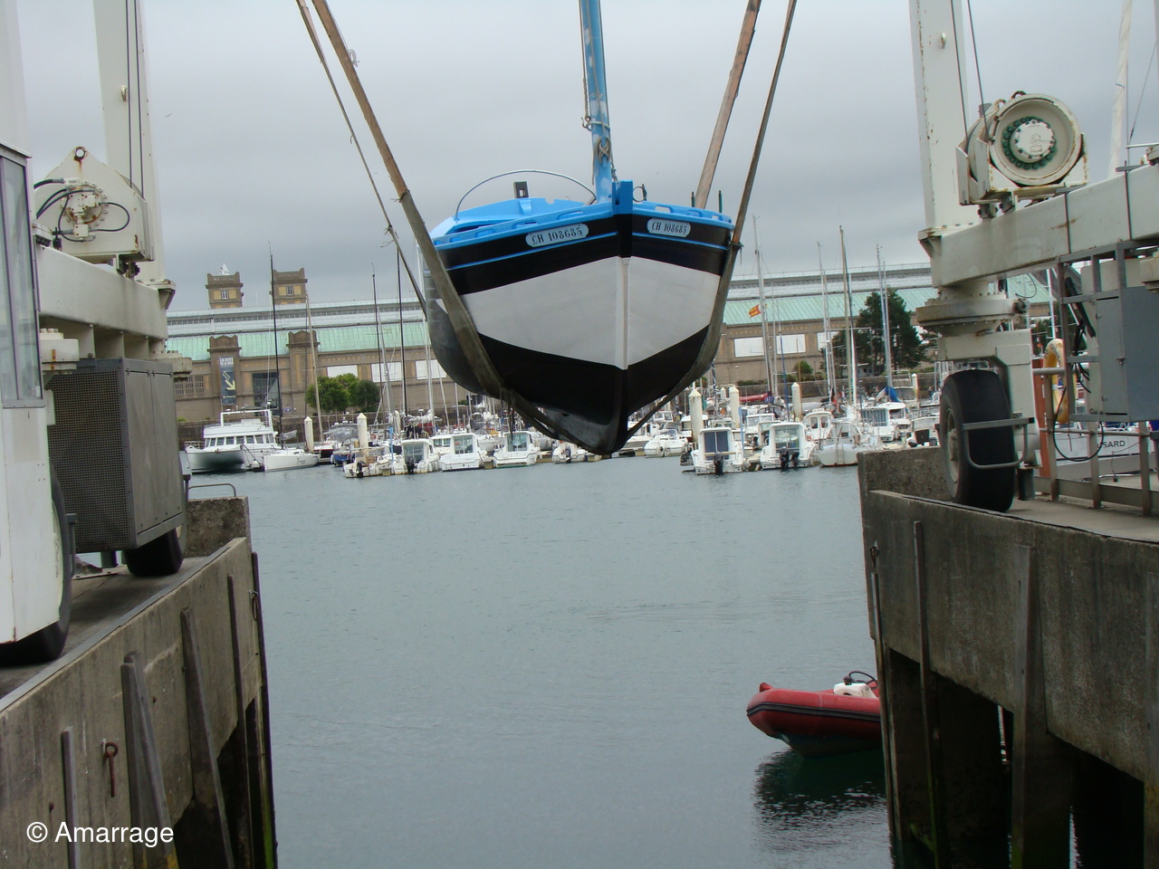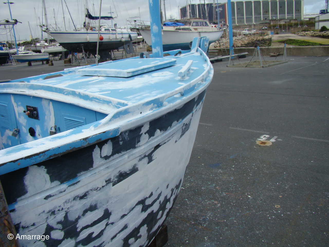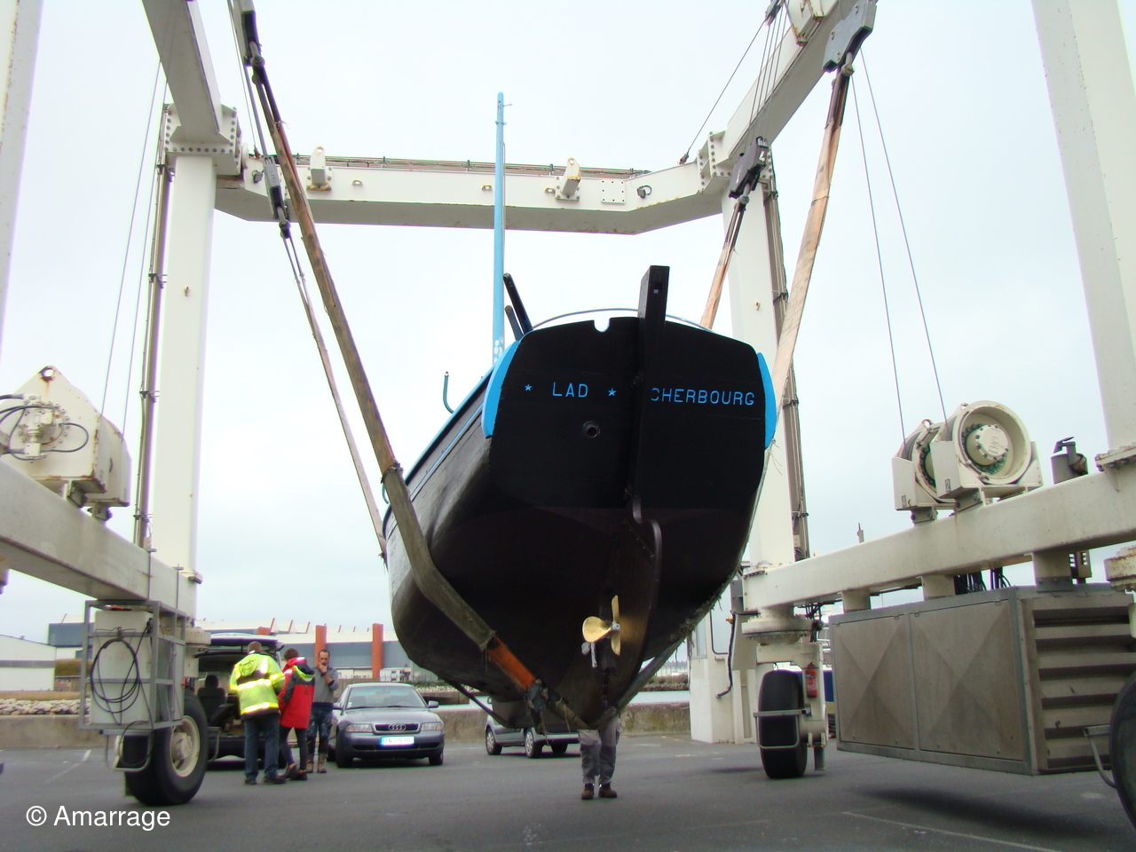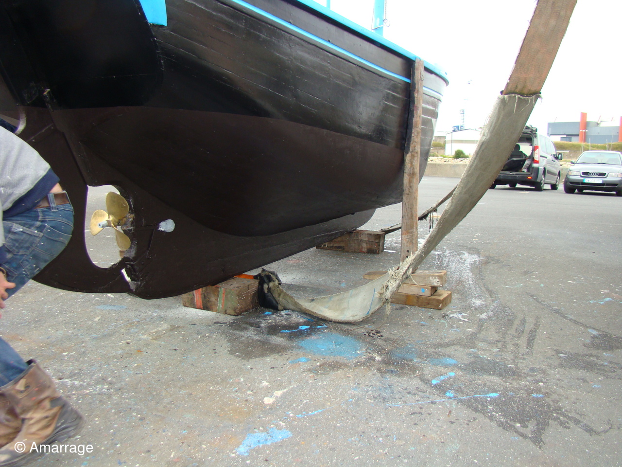 "LAD": mise à l'eau après 15 jours de restauration. Dématage pour peinture. À rejoint son anneau d'amarrage à l'Epi.