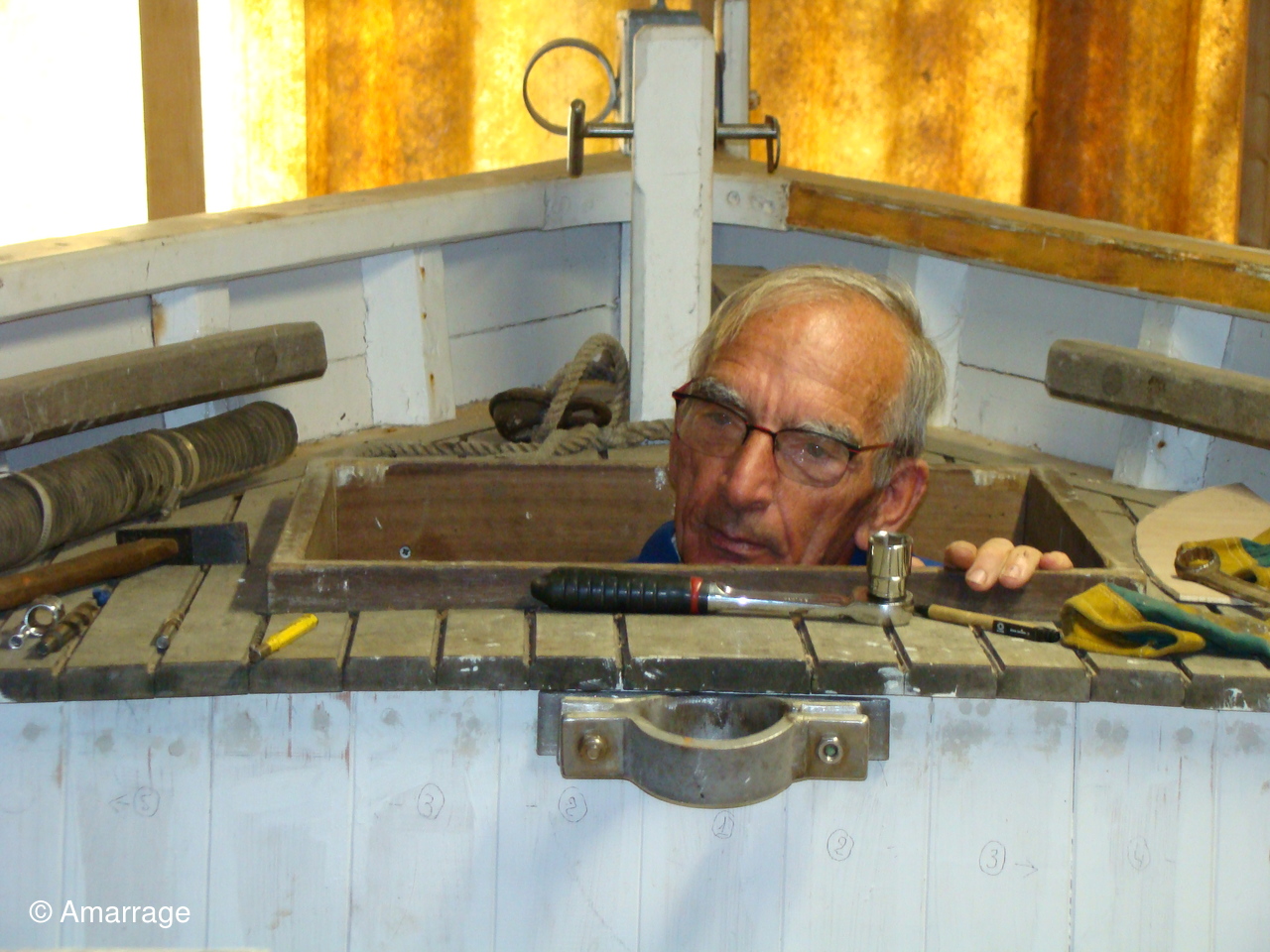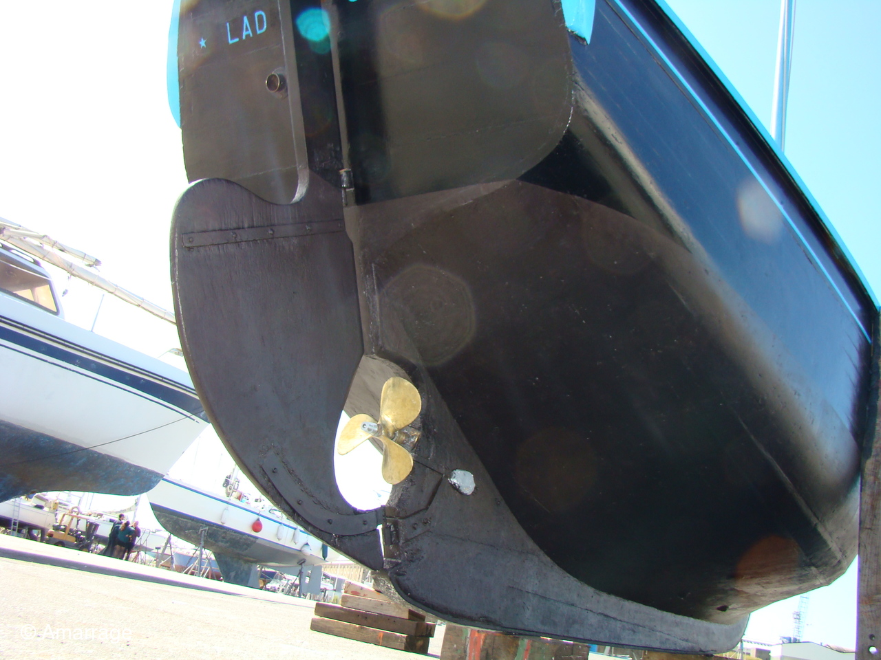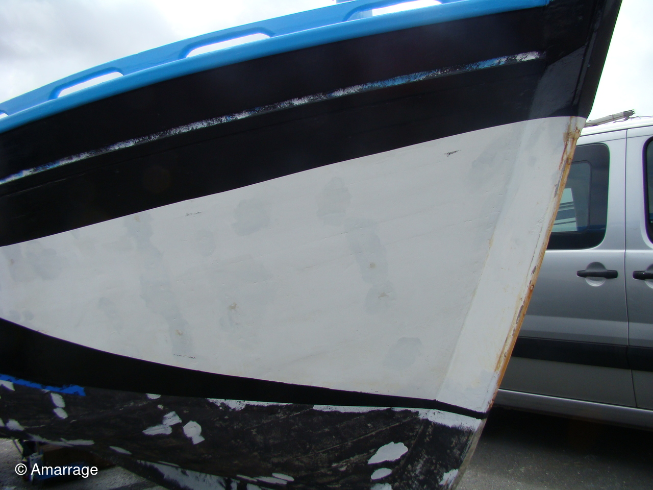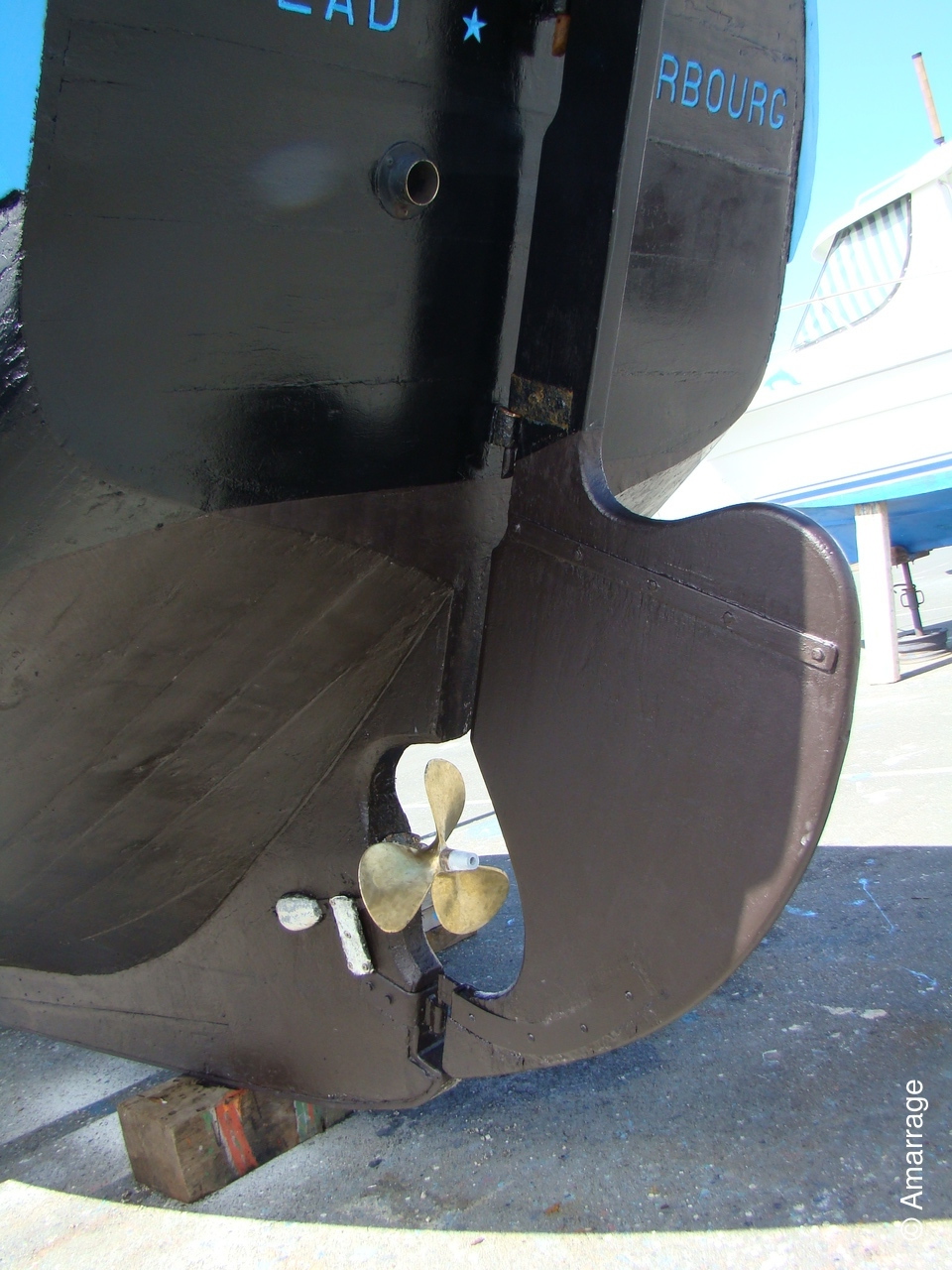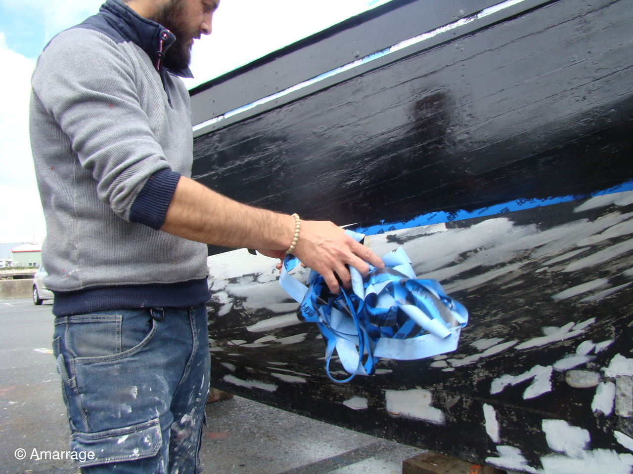 "LAD": mise à l'eau après 15 jours de restauration. Dématage pour peinture. À rejoint son anneau d'amarrage à l'Epi.