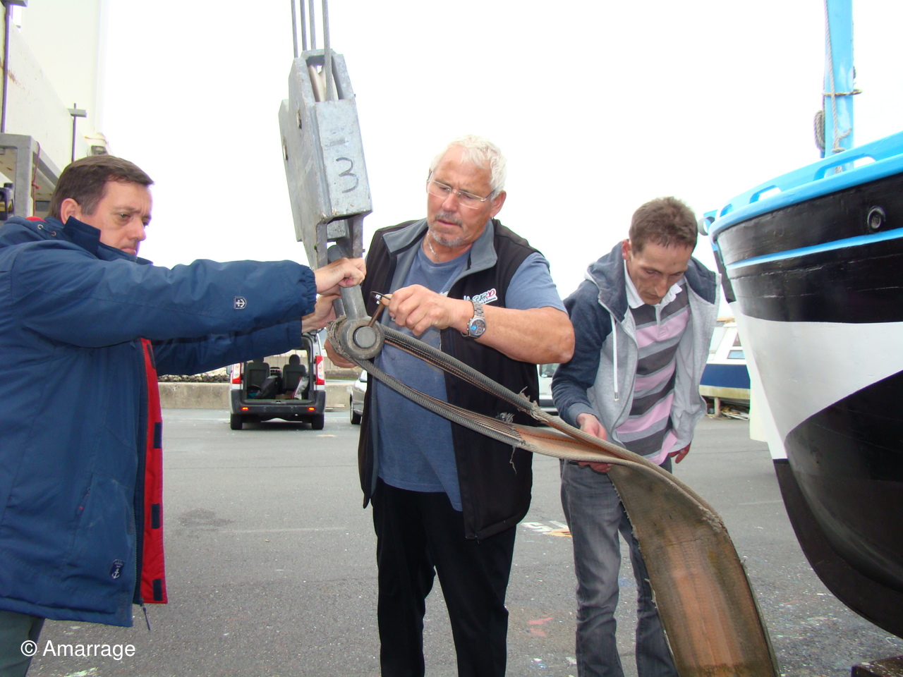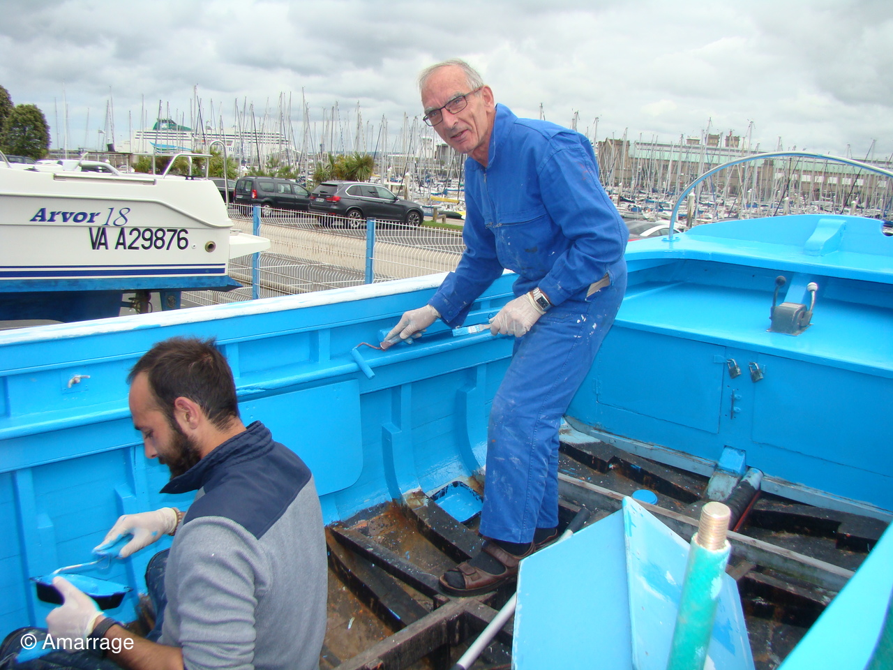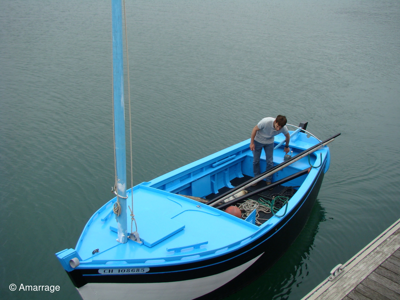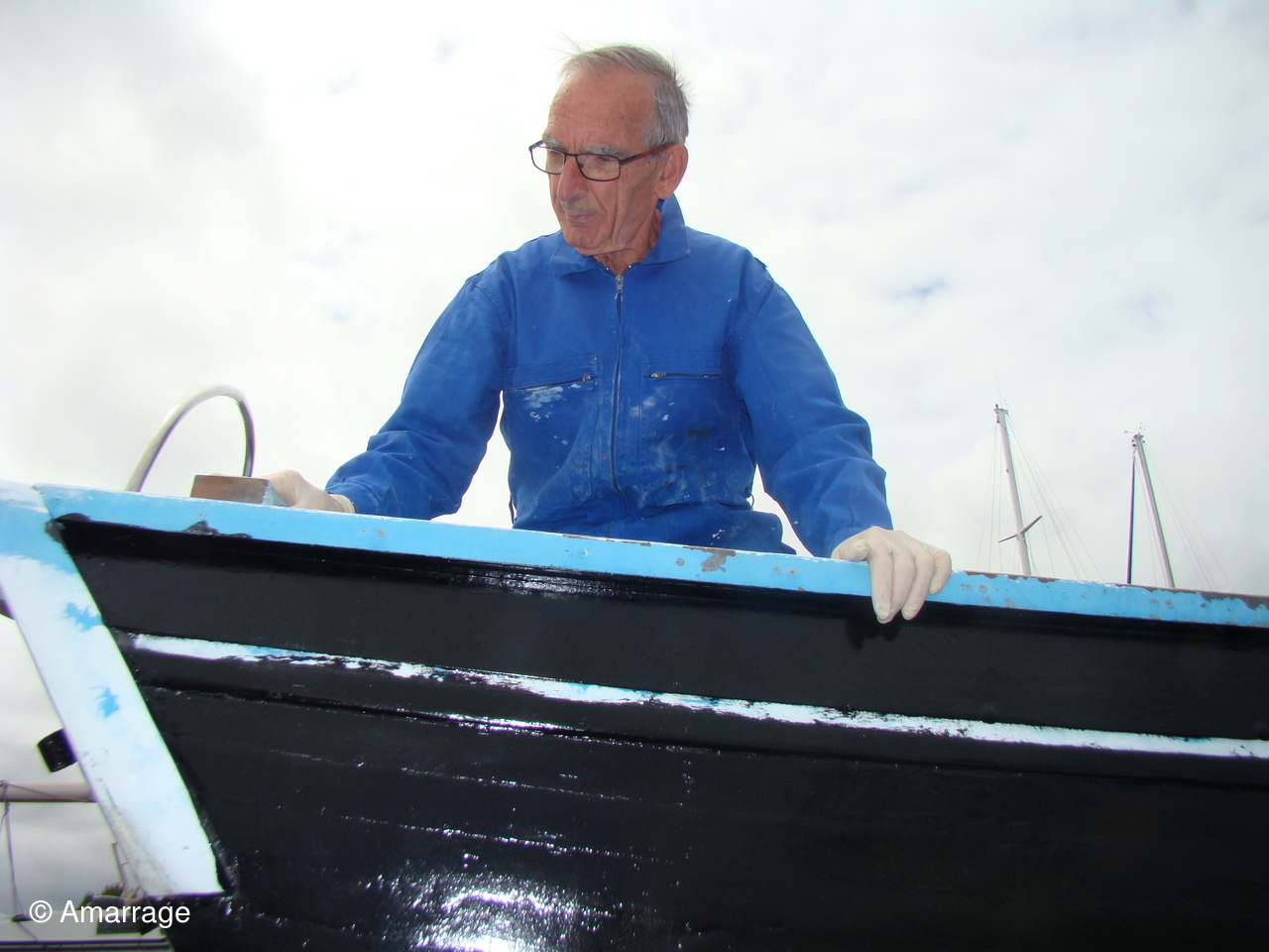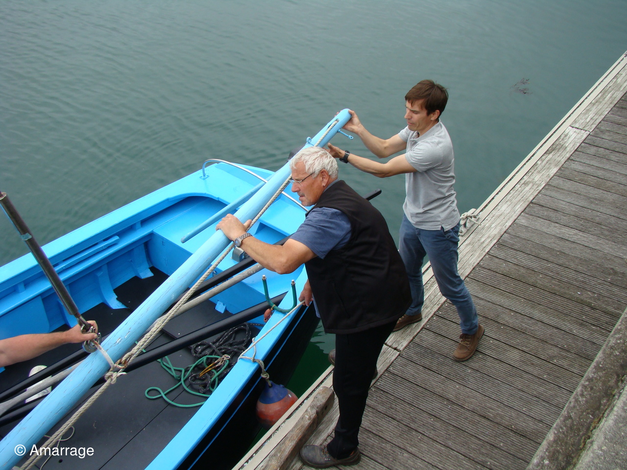 "LAD": mise à l'eau après 15 jours de restauration. Dématage pour peinture. À rejoint son anneau d'amarrage à l'Epi.