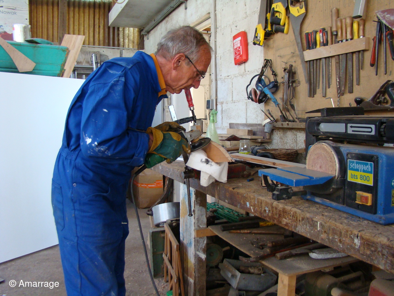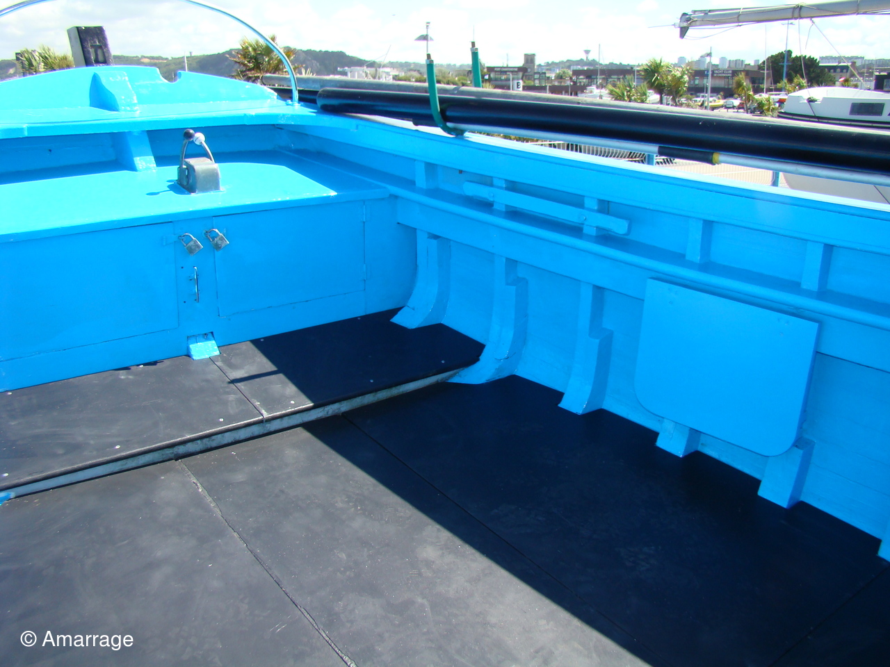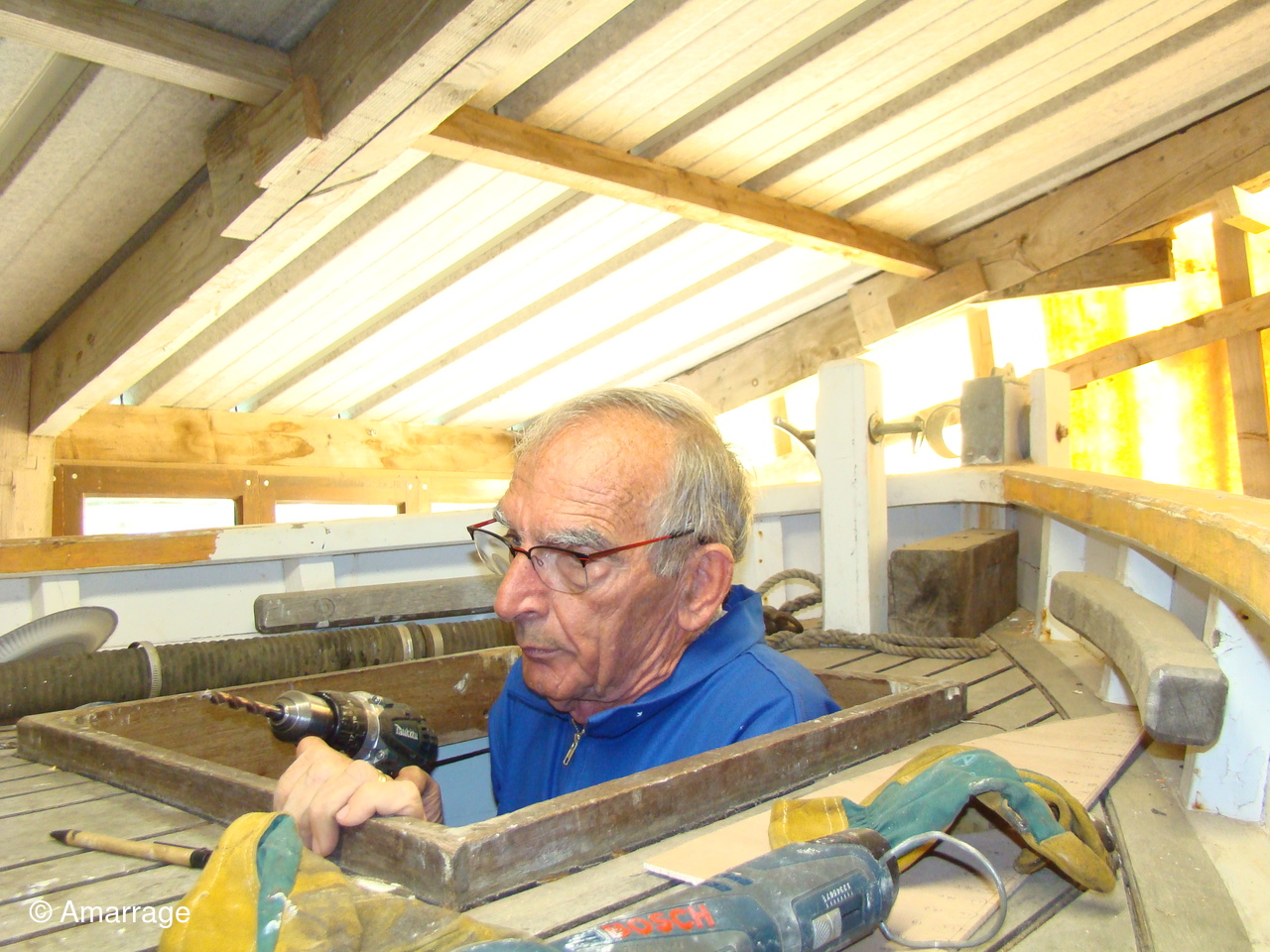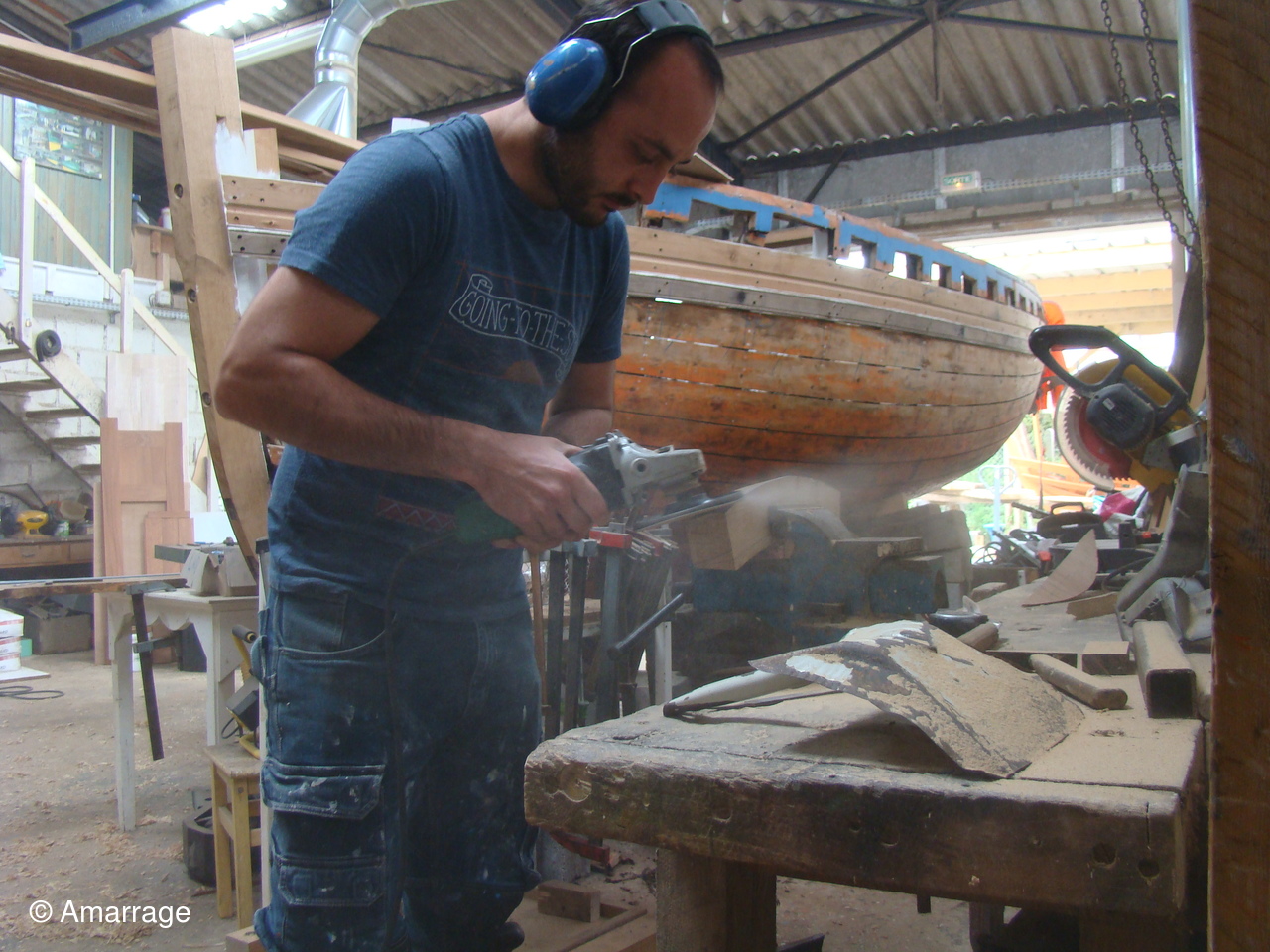 "AWASSA": Pont arrière posé; Ponçage des violons et des taquets d'amarrage, pose des violons; Fixation des renforts de béquilles; Mise en chantier de la planche de couronnement; Bordé Tb (dernier bordé) étuvage, mise en peinture avant sa pose, et l'étape "bordage" sera terminée. La coque sera fermée.