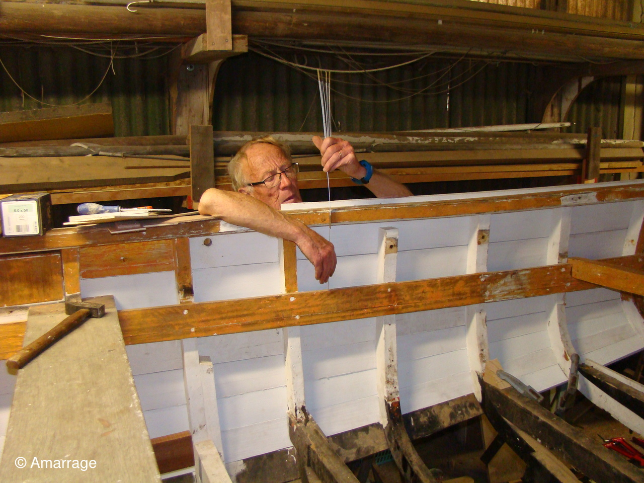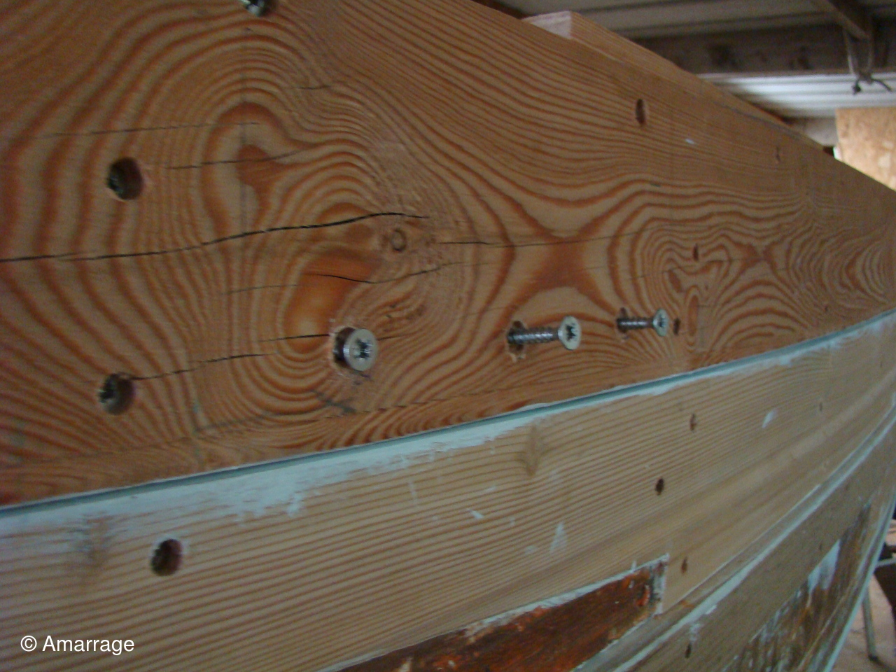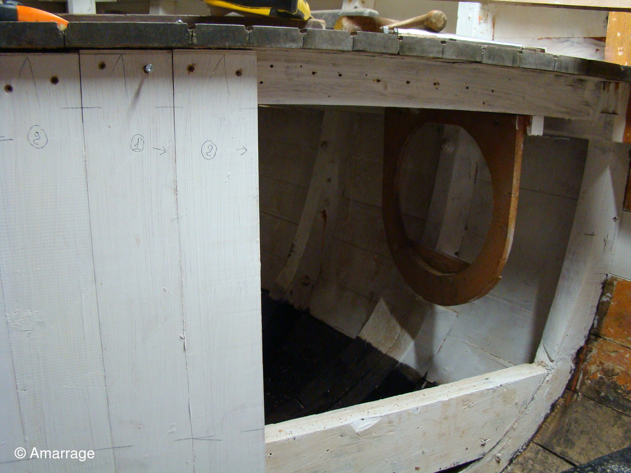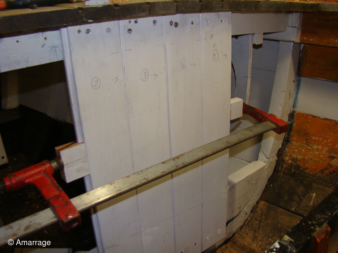 "AWASSA": mise en place d'un dernier bordé. Le côté Bd tous les bordés sont en place.