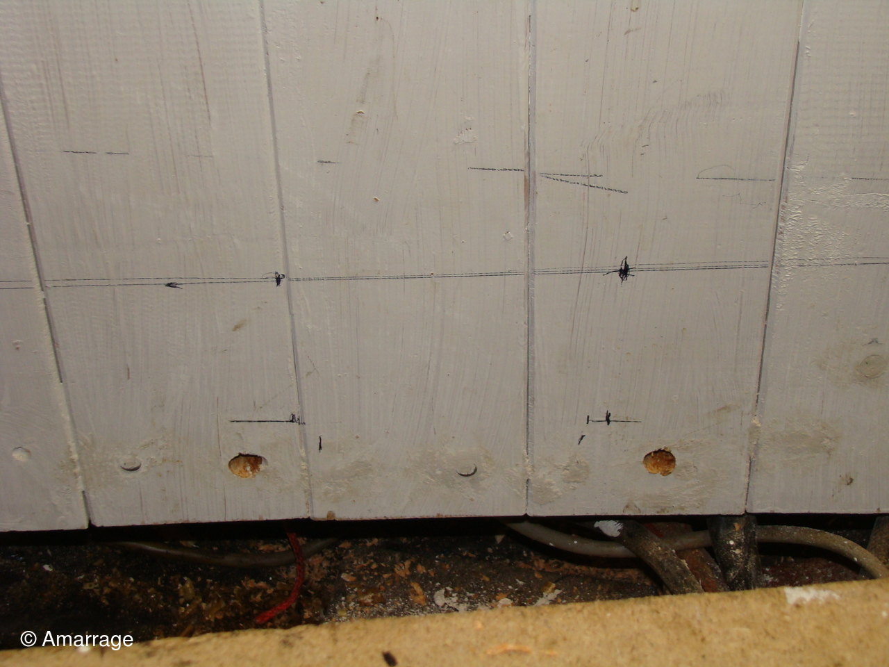 "AWASSA": Pose du galbord à tribord et d'un bordé à Bd; renforcement d'une membrure pour fixasion d'un bordé à Td. Démontage cloison, pour peinture du puit avant. Peinture et remontage définitif(une partie) de la cloison.