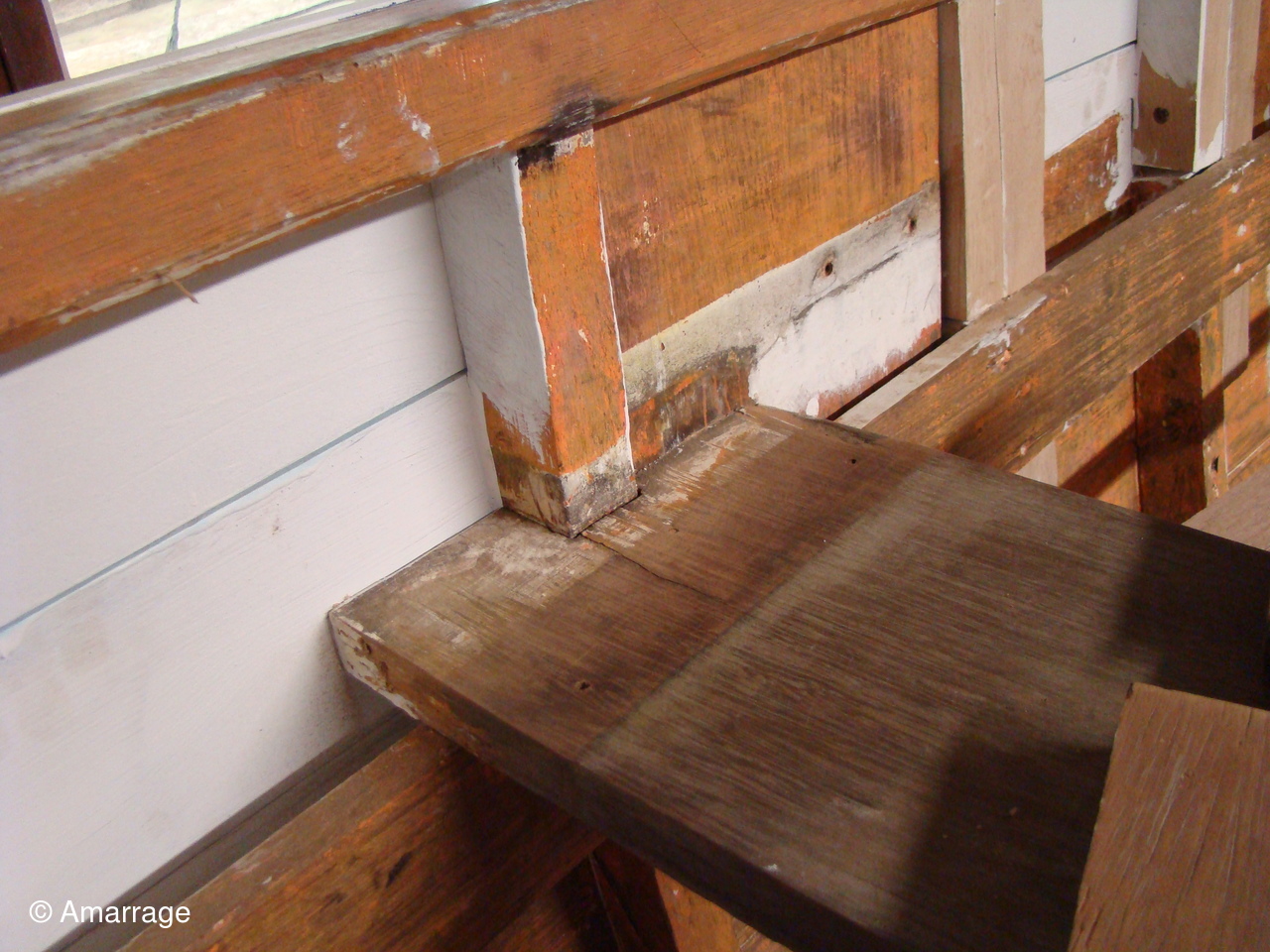 "AWASSA": la cloison est posée. Elle attend que les têtes de vis soient camouflées et sa peinture laquée.
