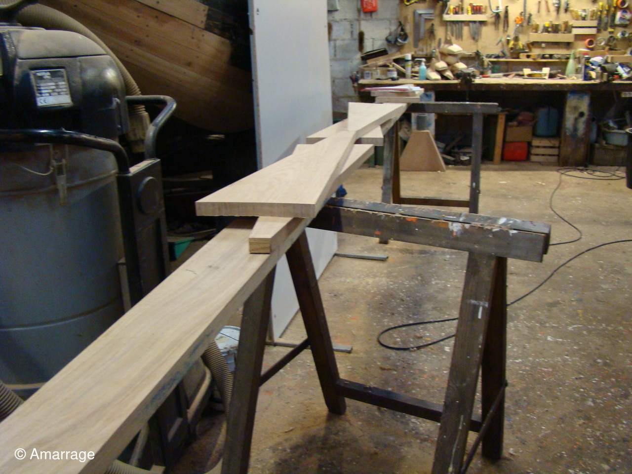 "GUEPARD": Arrivage de bois "Sapelli" pour son bordage - Fixation du puits de dérive - Mise en place des dernières varangues ainsi que des membrures( fixation définitive).